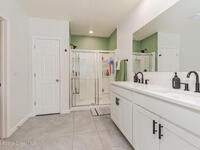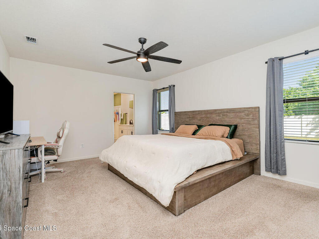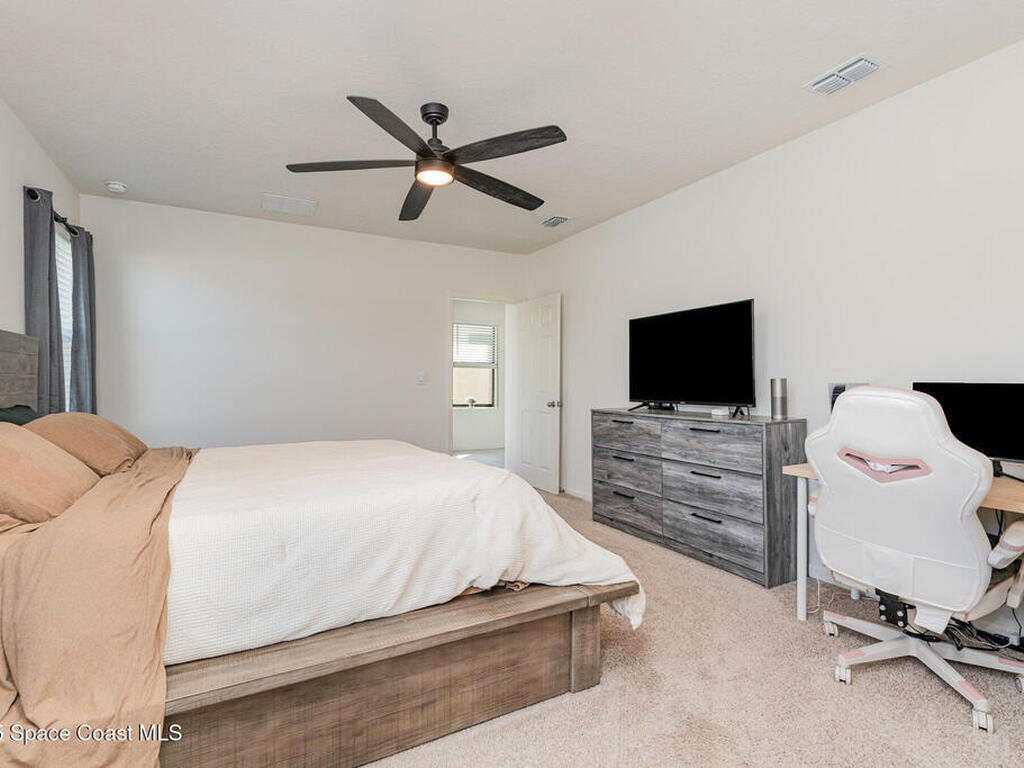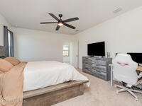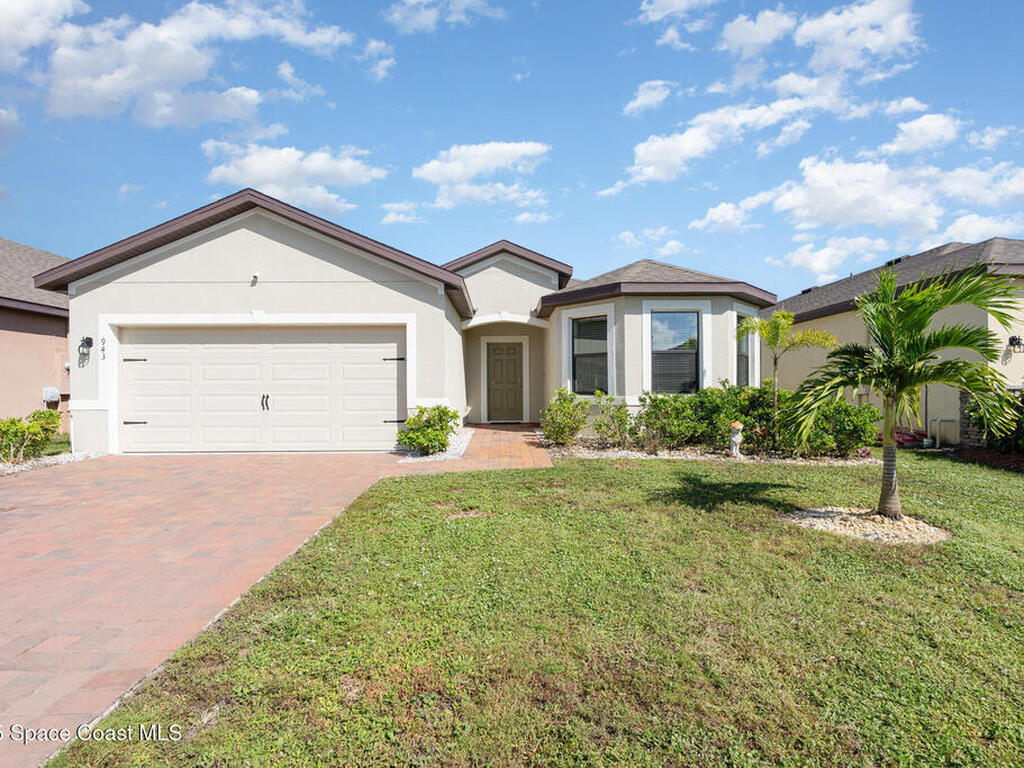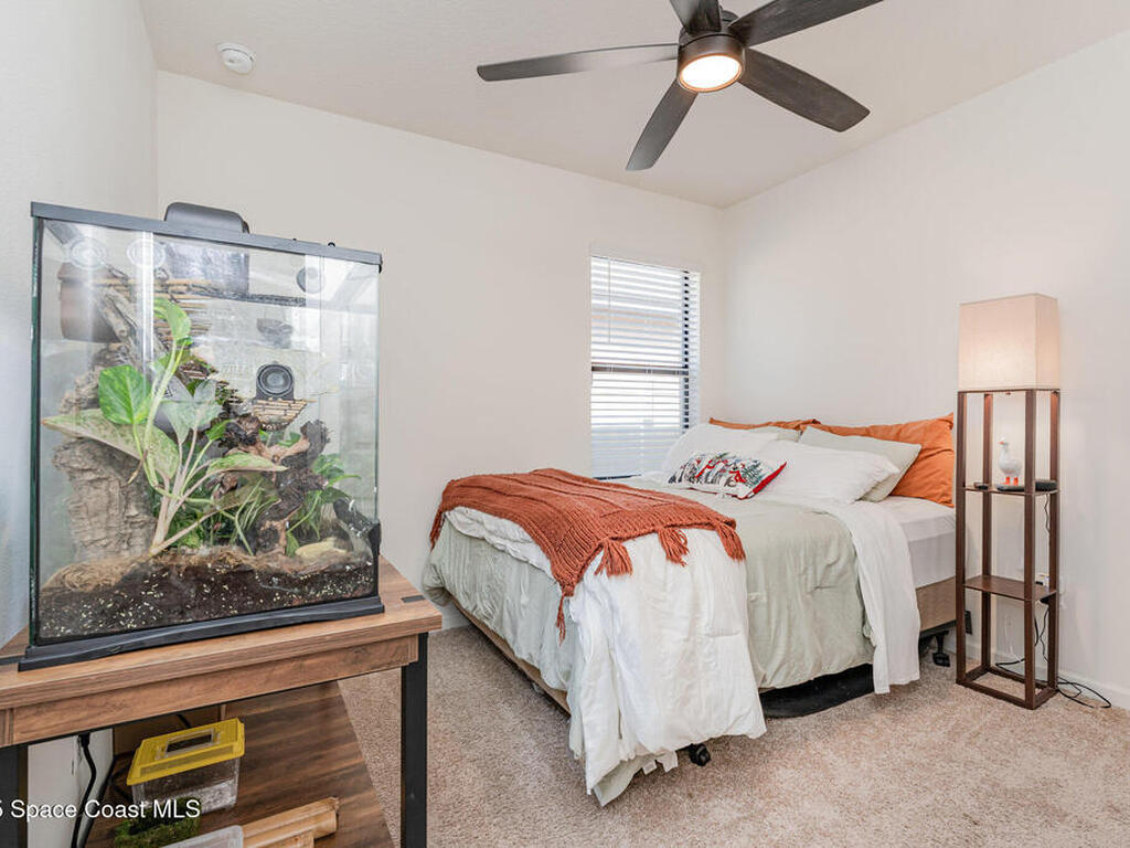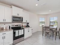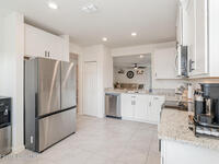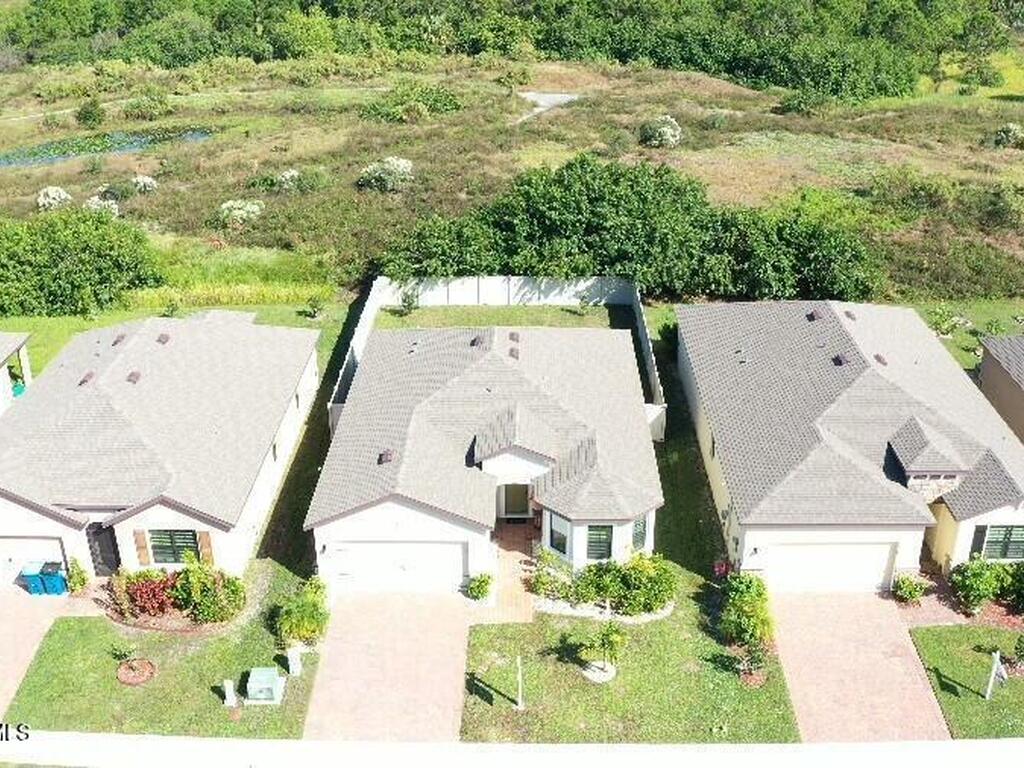 This charming home offers 1738 sqft of living space across three bedrooms and two bathrooms inside a gated community ensuring privacy and security. The property features an open concept layout, perfect for relaxed living and entertaining. The kitchen boasts granite countertops and a cozy breakfast nook, providing ample space for meal preparation and casual dining. The primary bedroom includes a walk-in closet and a bathroom with a double vanity and bidet. The additional two bedrooms are well-proportioned sharing an upgraded bathroom featuring a quartz-topped vanity and a bidet. Throughout the home, smart ceiling fans and light switches add convenience and modern touches. The backyard is fully fenced with vinyl fencing and features a sprinkler system for both the front and back yards. A garage refrigerator is included as well as storm shutters. The home was constructed approximately three years ago, ensuring a relatively new and well-maintained property.