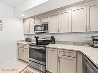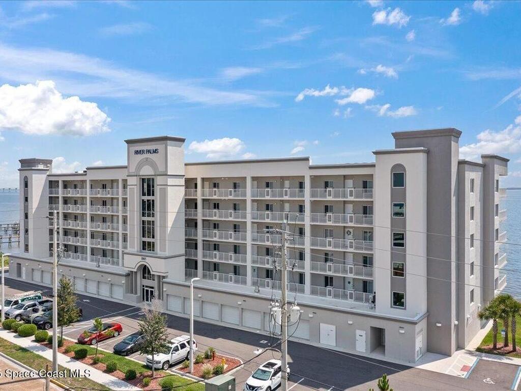 Welcome to River Palms -- a newer riverfront 3-bedroom, 2-bath condo offering the perfect blend of luxury and coastal tranquility. This residence features an upgraded kitchen with solid surface counters, stainless steel appliances, and rich wood shaker cabinetry. Wood-like tile flows seamlessly throughout, complemented by impact windows for peace of mind and energy efficiency. Enjoy both a semi-private garage space and an additional assigned under-building parking spot. From your balcony, take in breathtaking river views, rocket launches, and daily sightings of dolphins and manatees right outside your door -- the ultimate Florida waterfront lifestyle. Furnishings are included, turn key unit. Complete with community salt water pool and clubhouse right on the river. Close to shopping, restaurants and major highways.