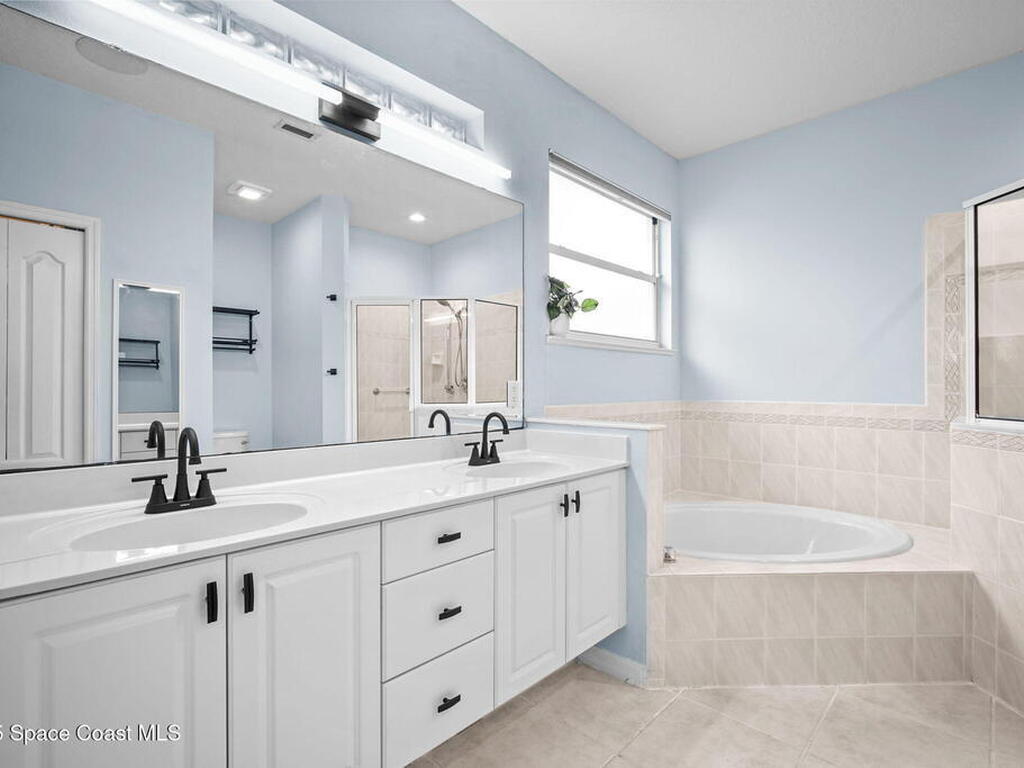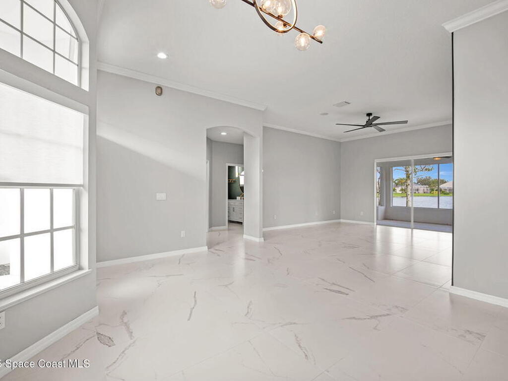 Completely Remodeled Waterfront Home in Viera East Golf Community! Waterfront views from nearly every room. Solid concrete block home with over 1, 800 sq ft of living space. Brand-New Roof (2025). Tile and carpet, motorized shades - remote or app controlled, LED lighting & designer fans all upgraded in 2023. The kitchen 2023 upgrades include soft-close cabinets, all new appliances - featuring a freezer with cube and sphere ice, workstation sink with under-sink filter, dual fuel range. Primary suite features upgraded high-efficiency windows, custom closet, and wall sconces. Wired and installed new interior speaker system and exterior camera wiring completed in 2024. Newer gas on demand hot water heater (2023). Move-in ready with high-end finishes throughout. Viera East Golf Community offers a beautiful golf course, pool, tennis court, and clubhouse with restaurant. Enjoy living in luxury with both this property and community!