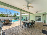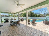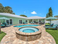 Just two blocks from the beach, this coastal retreat is the definition of smart beachside living. Fully furnished and turn-key, this 4-bed, 4-bath pool home invites guests and owners alike to live and earn in complete comfort. Inside, a bright open floor plan flows seamlessly between the chef's kitchen, dining area, and spacious great room--perfect for entertaining. The kitchen features granite countertops, stainless steel appliances, custom cabinetry, and a breakfast bar as the ideal gathering spot. Each bedroom includes a private ensuite bath, offering space and privacy for guests. Step outside to your private oasis with heated pool and spa, covered lanai, and paver patio for grilling, dining, or relaxing by the fire pit under the stars. Fully equipped, everything conveys--from kitchenware to linens and even a six-passenger golf cart. Whether a primary home, vacation retreat, or high-performing rental, this property delivers lasting coastal value.