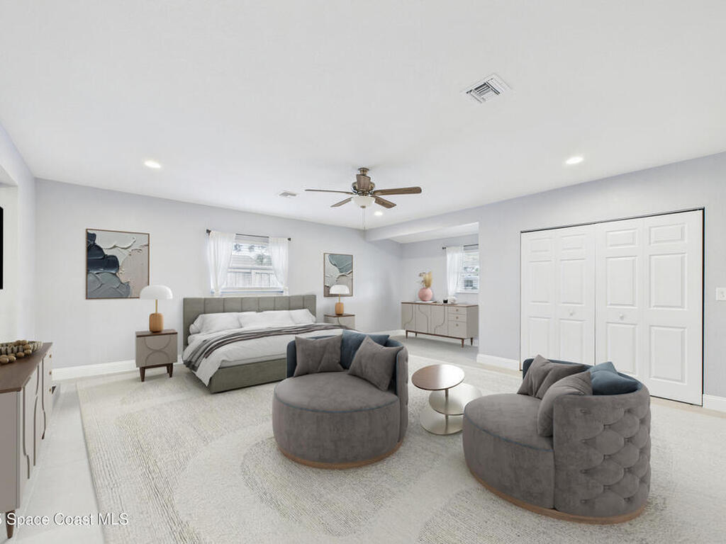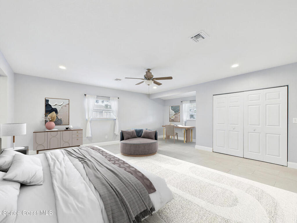 Don't miss this beautifully updated home right in the heart of Merritt Island with not one... but TWO primary suites plus two additional bedrooms and a 3rd bath! You will have plenty of room for whatever you need... multi-generational living, short term stays or lots of visitors. A quick drive over the bridge and you're at the beach OR you can relax by your private pool. In your private backyard, you'll find room for your outdoor kitchen and your toys. No HOA means no restrictions! 3 month minimum lease.