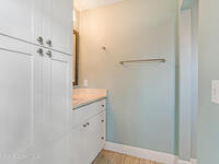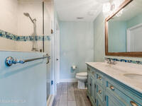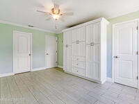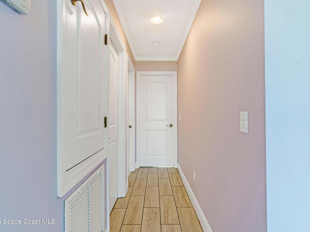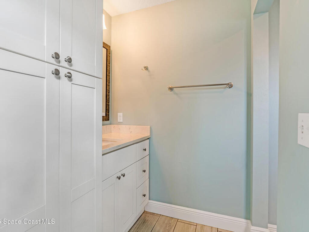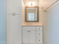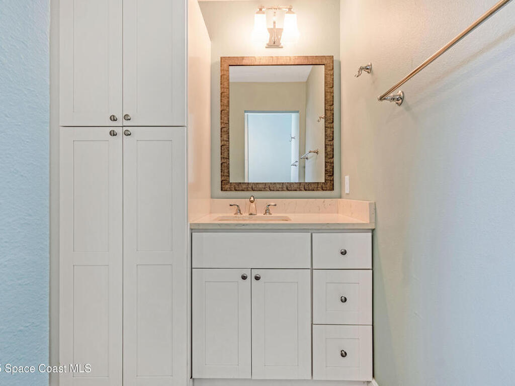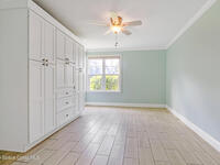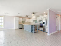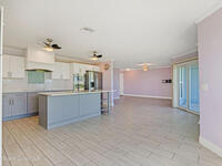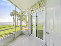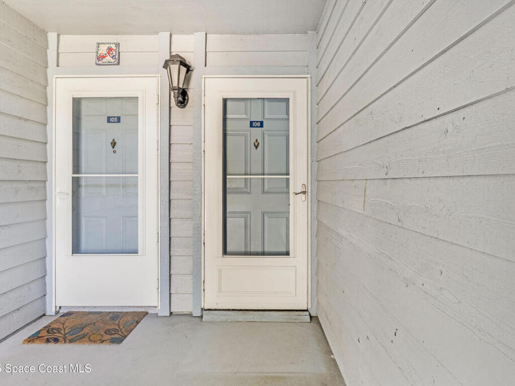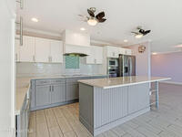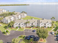 One of a kind riverfront condo! This ground floor oasis has been completely renovated and smartly redesigned with entertainment in mind. Upon entering this home you are greeted with a panoramic view of the Indian River. This is the amazing view from the open concept living/dining areas and HUGE kitchen. This kitchen boasts a large quartz center island and modern wall to wall cabinetry. There's ample space for an 8 person dining table and chairs. Enjoy gourmet meals with your guests and then step outside to your private screeneed porch and watch rocket launches and dolphins! All doors and windows have been replaced and flooring is tile plank throughout. The primary bedroom has stylish built-in cabinetry and a walk-in closet with a closet system and built-in safe. The luxurious primary bathroom has a spacious fully tiled shower and shower seat. The plumbing and electricity have been updated and there are many other features, too numerous to list. This pristine home is a MUST SEE!