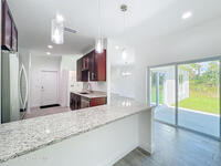 Custom-Built Luxury Home No HOA or CDD Move-In Ready Discover refined living in this beautifully designed custom residence, where craftsmanship meets comfort and efficiency. From its soaring 12-foot ceilings to its premium finishes, every inch of this home reflects thoughtful detail and elevated style. Interior Features Expansive layout with dedicated living, family, and formal dining rooms--ideal for both entertaining and everyday living Sleek porcelain tile flooring throughout for a clean, modern aesthetic and easy maintenance Gourmet kitchen with granite countertops, 42'' upper cabinets, and soft-close solid wood cabinetry in both kitchen and bathrooms Energy-efficient design featuring top-tier stainless steel appliances Oversized backyard offers endless potential for entertaining, gardening, or creating your own private retreat Hurricane impact-rated doors, windows, and 8' garage door 3, 500 psi concrete slab