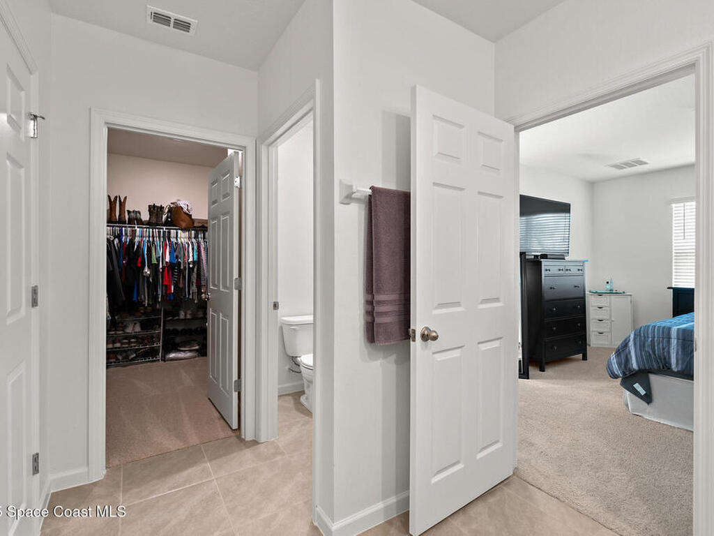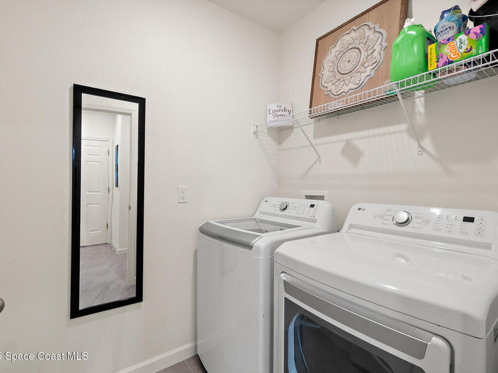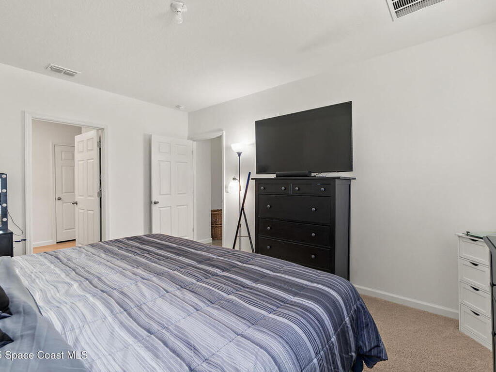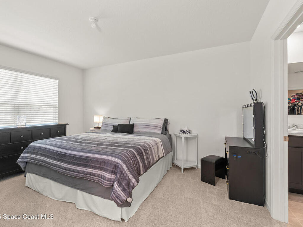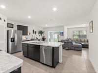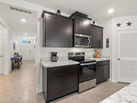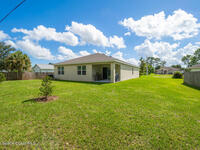 WHY WAIT for new construction when this one-year-old Cali model is already complete and move-in ready! Located on CITY WATER and SEWER--a major advantage over nearby homes on well and septic--this 4 bedroom, 2 bath, 2-car garage home offers modern living with no delays or added construction costs. Smart home has Oolsys IQ panel, Alarm.com app, video door bell & more! See features list! The open floor plan features a large kitchen island, walk-in pantry, and spacious living area filled with natural light. The primary bedroom accommodates king-size furniture with ease and includes an oversized walk-in closet and a large en-suite bathroom with dual sinks and walk-in shower. Owner is installing ceiling fans in all bedrooms and living spaces (excluding bathrooms), providing comfort and efficiency. Close to shopping, dining, and everyday amenities, with quick access to I-95 for commuting, travel, and access to beaches, major employers, and Orlando attractions.