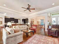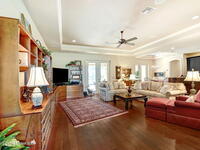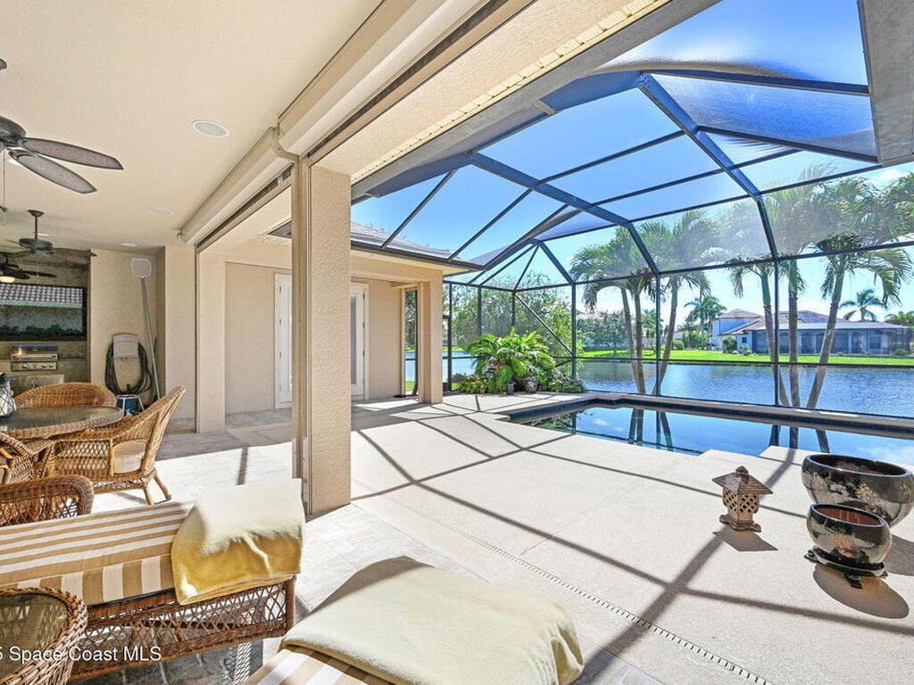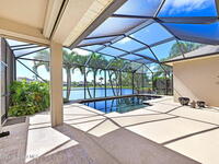 Impeccably cared for, this DiPrima custom-built home seamlessly combines refined LUXURY with everyday COMFORT and TRANQUIL Lake views. With superior craftsmanship, thoughtful design and high-end finishes, you will not be disappointed! The Gourmet Kitchen will inspire any chef with a dual fuel gas range, quartz countertops, two-tone custom cabinets, glass front doors & walk-in pantry. An open floor plan integrates the kitchen, family and dining areas for a harmonious flow of space. Architectural features include 10' tray ceilings, 8' interior doors, archways, transom windows & double French doors to the patio. The outdoor living area centers around a beautiful black-bottomed, solar-heated saltwater pool and cabana suite offering a private retreat with one bedroom & full bath. The large screened patio and well-appointed summer kitchen-with grill, mini refrigerator, & sink provides plenty of space to gather and enjoy. Whole house generator, hurricane protection, extended Garage &more