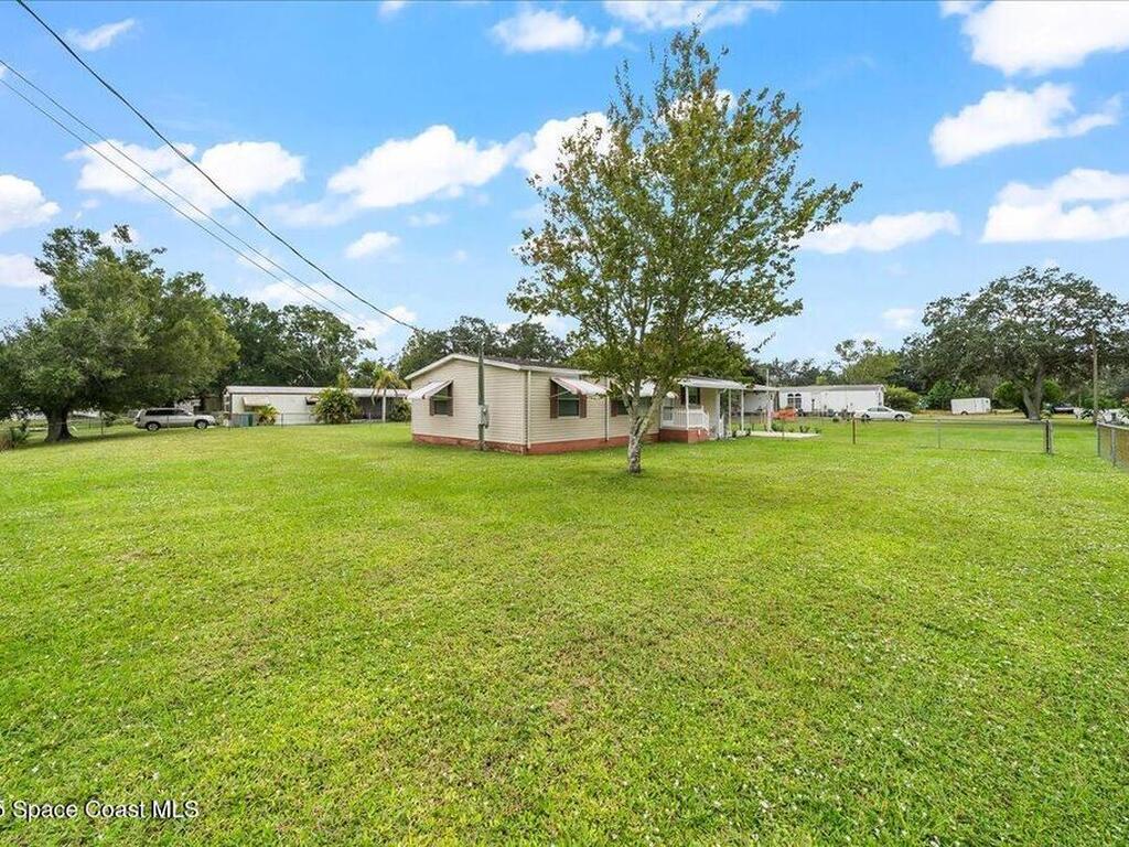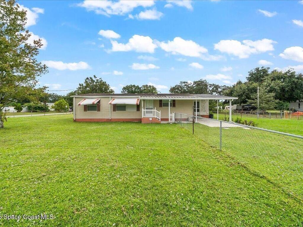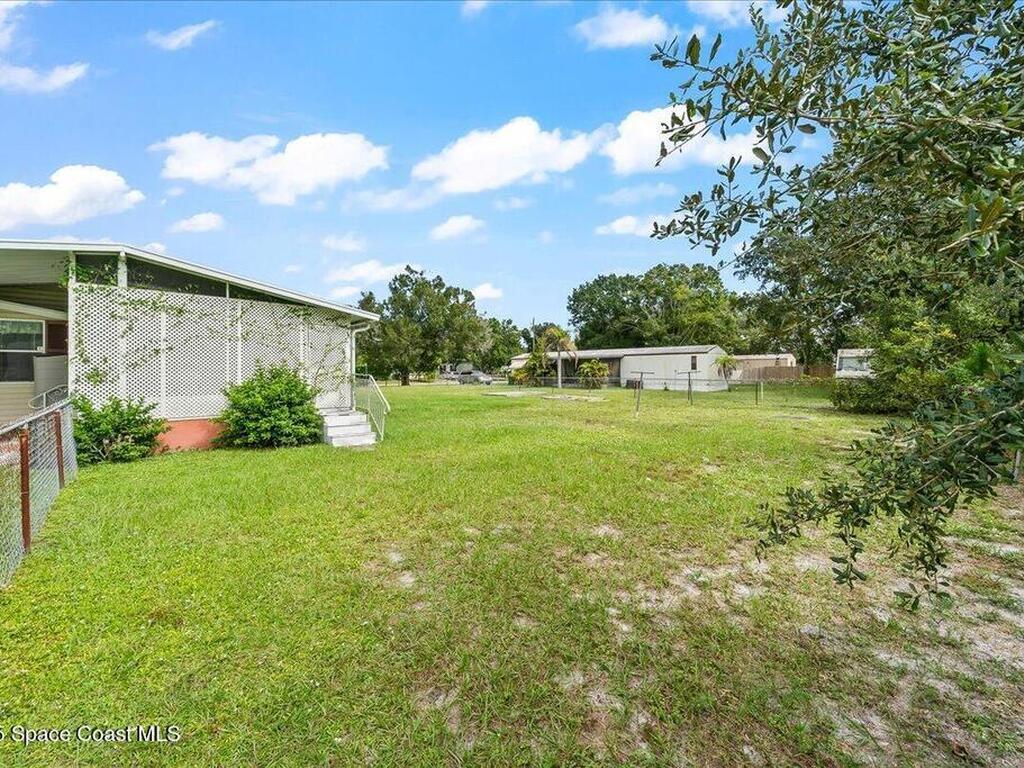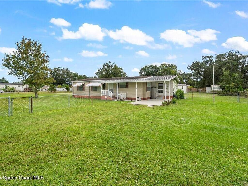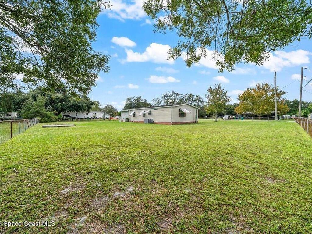 Spacious 3BR/2BA manufactured home on a rare .43-acre oversized lot! Enjoy NO HOA and no land lease; and plenty of room for RVs, boats, and trailers with easy access parking on this large corner lot. The fenced yard offers privacy and space to add a pool, workshop, or garden. Inside, an open floor plan features a bright living area, eat-in kitchen, and comfortable bedrooms. Furnished and move-in ready! Ideal for homeowners, investors, or snowbirds. Conveniently located just 20 minutes to Cocoa Beach, 25 minutes to Kennedy Space Center, and 40 minutes to Orlando International Airport (MCO). Experience Florida living with space, flexibility, and freedom--don't miss this property with endless potential and room for all your toys!