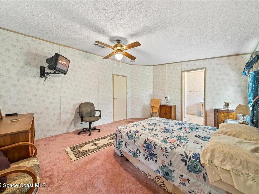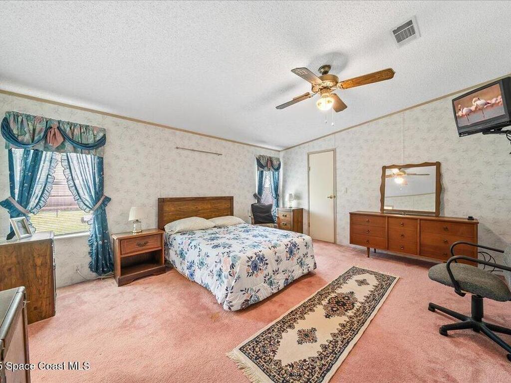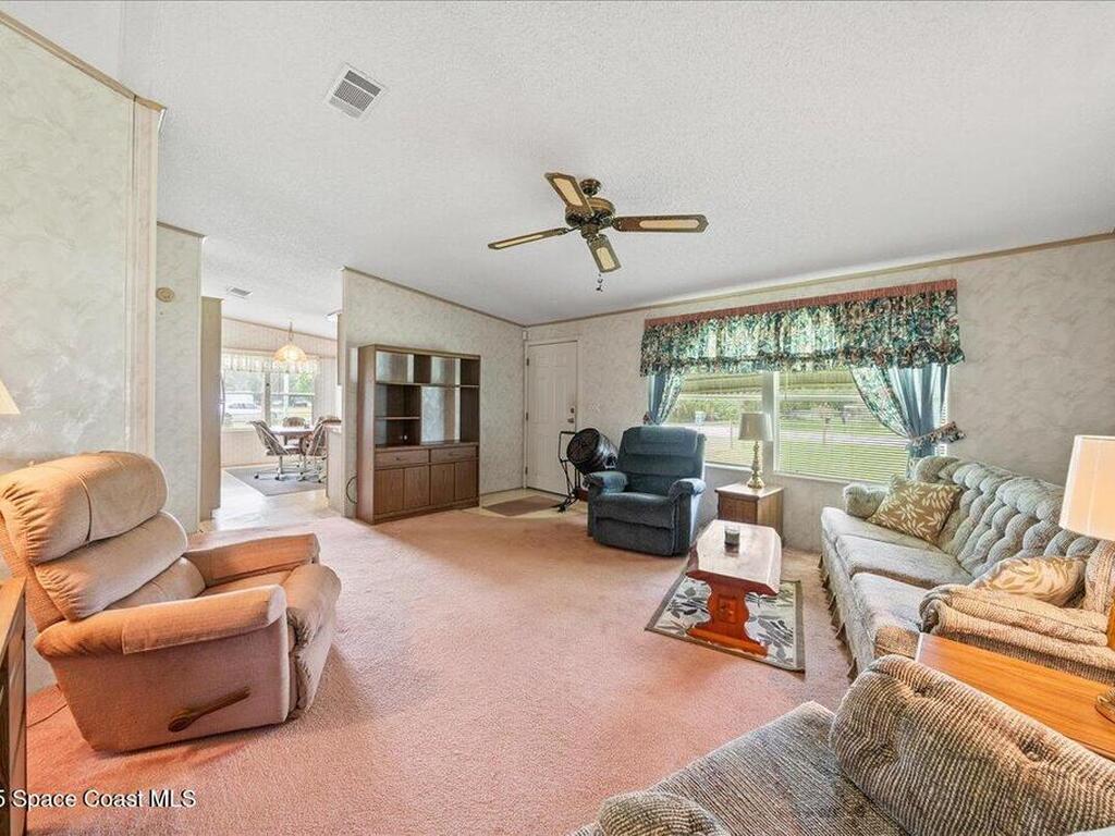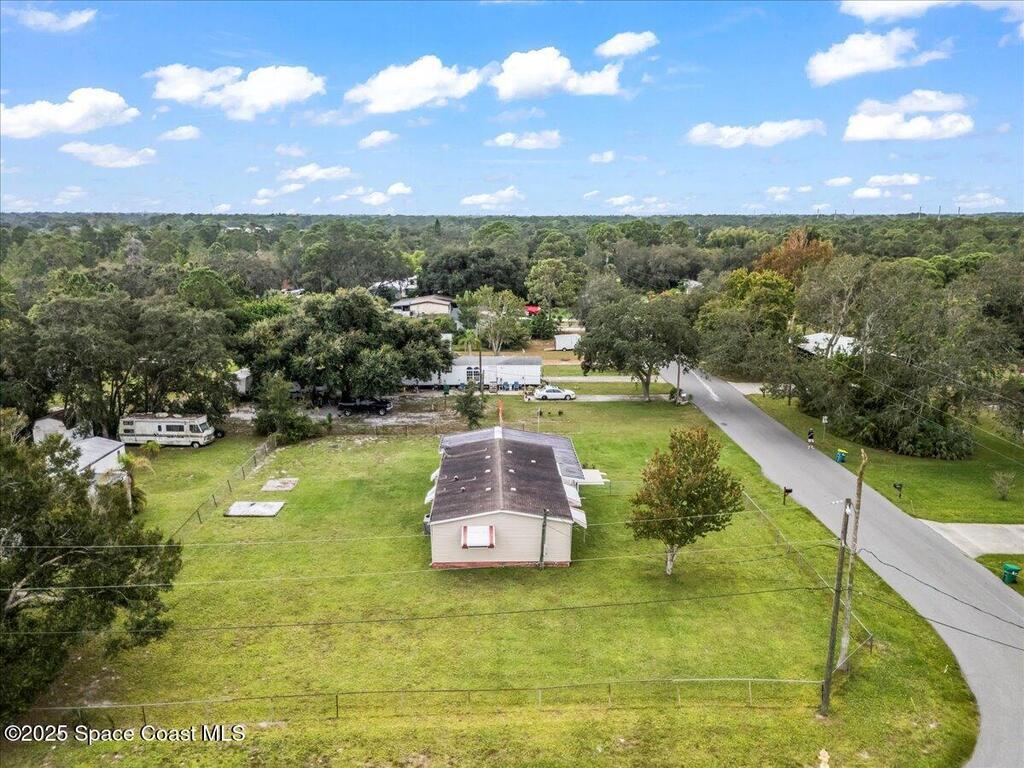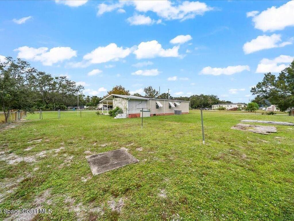 Spacious 3BR/2BA manufactured home on a rare .43-acre oversized lot! Enjoy NO HOA and no land lease; and plenty of room for RVs, boats, and trailers with easy access parking on this large corner lot. The fenced yard offers privacy and space to add a pool, workshop, or garden. Inside, an open floor plan features a bright living area, eat-in kitchen, and comfortable bedrooms. Furnished and move-in ready! Ideal for homeowners, investors, or snowbirds. Conveniently located just 20 minutes to Cocoa Beach, 25 minutes to Kennedy Space Center, and 40 minutes to Orlando International Airport (MCO). Experience Florida living with space, flexibility, and freedom--don't miss this property with endless potential and room for all your toys!