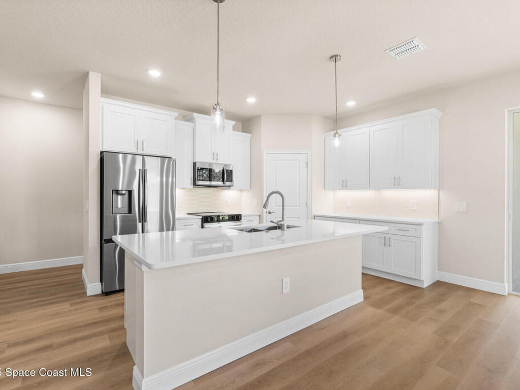 Ask us about our incentives, builder paid closing costs, & no down payment options when financing through the builder's preferred lender. This stunning new construction home exemplifies exceptional craftsmanship with soaring ceilings, a spacious open-concept great room, and a chef-inspired kitchen featuring all-wood shaker cabinets with crown molding, dovetail soft-close drawers and doors, quartz countertops, and a premium Samsung stainless-steel appliance package. Natural light fills the home through large windows and sliders leading to the covered lanai, complemented by luxury vinyl flooring throughout, tile in wet areas (no carpet!), and bathrooms with quartz-top vanities and fully tiled showers--no inserts. If you're searching for superior quality, thoughtful design, and unbeatable value, this is the home for you!