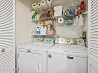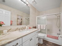 Lovely updated condo in La Cita with fabulous views of golf fairways, lake views & easy elevator access (or get your daily exercise to the second floor w/stair wells at each end of the bldg) Remodeled kitchen has white cabinets & some w/glass fronts to display your treasures. The new electric range has a convection oven & air fryer. There is a kitchen pantry & a closet houses the WASHER & DRYER PURCHASED in 2020. NEW HVAC in 2020, WATER HEATER 2020 & NEW ROOF SHINGLES ON THE ENTIRE BUILDING in 2025. The hall bath has been updated w/ white cabinetry, modern pulls & quartz counter-tops & higher new commode. The primary bdrm has a walk-in closet, newer white double vanities, sinks & quartz counters. Sliders from the generous size great rm & primary bdrm lead to a big screened balcony & closet that have ROLL DOWN HURRICANE SHUTTERS. What a great place to view the golfers & many aquatic birds that roam the property. Very quiet complex on a dead end street with friendly neighbors!