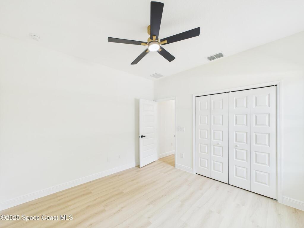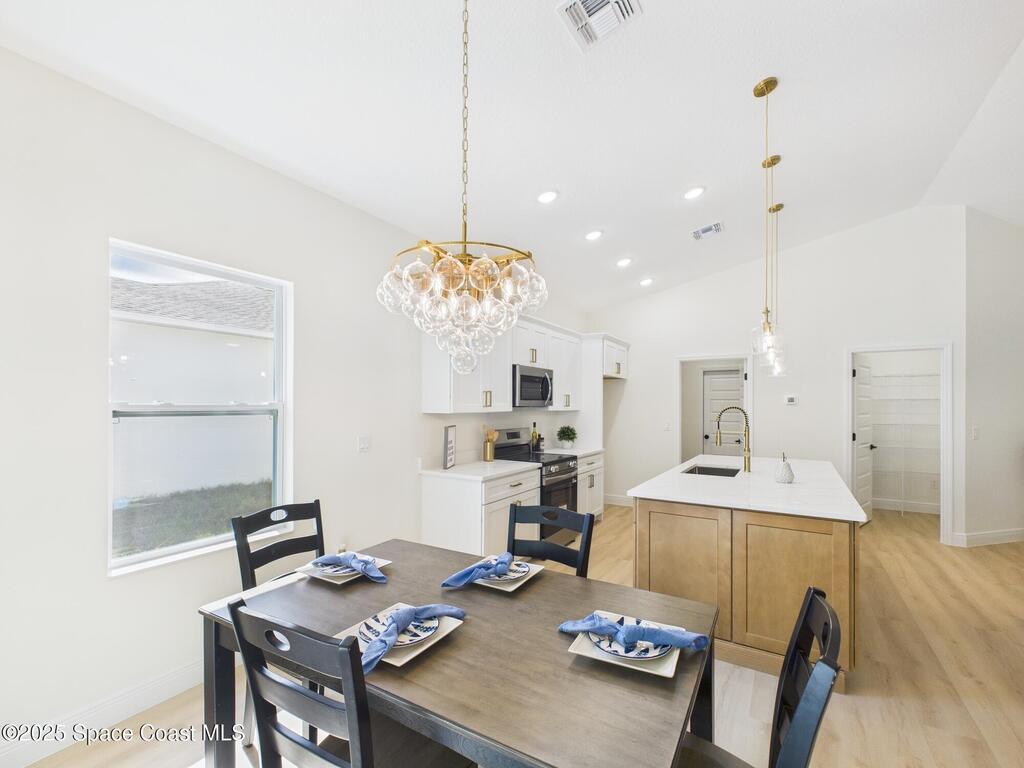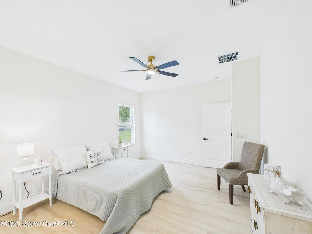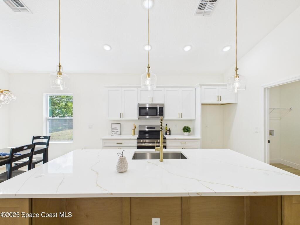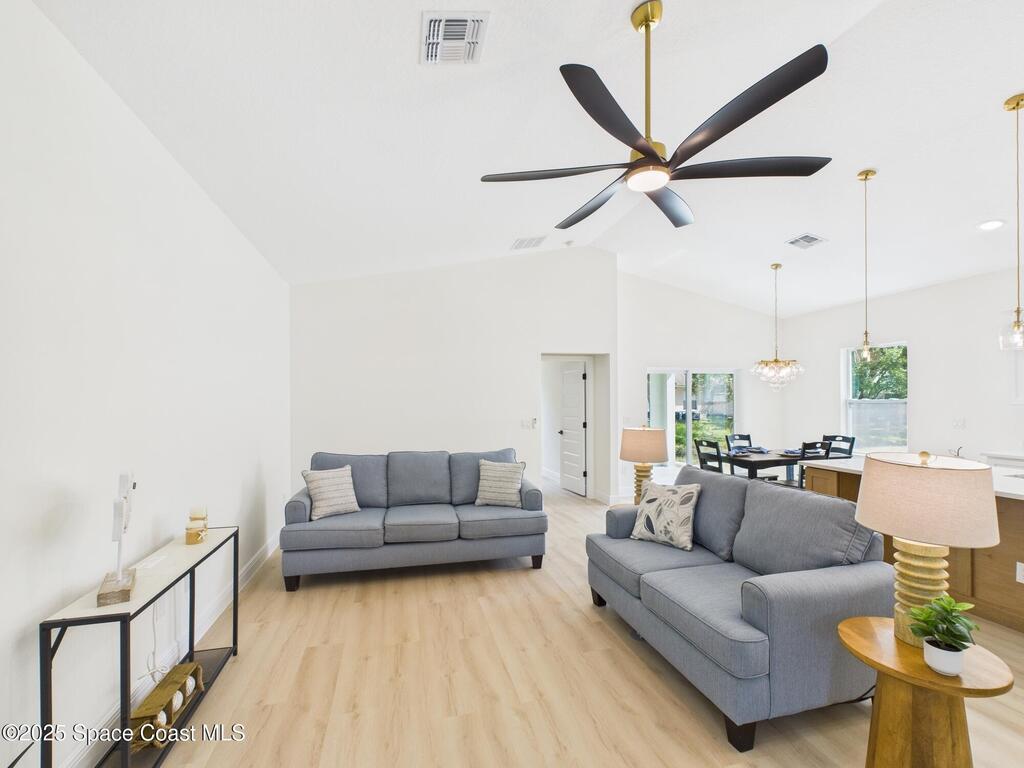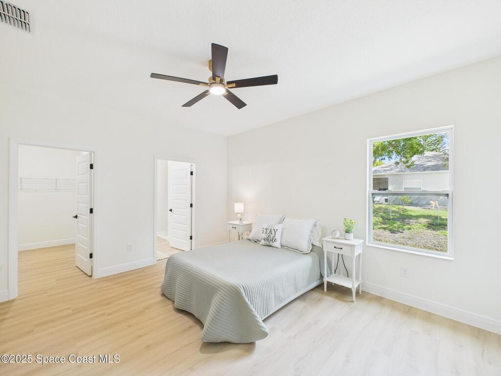 Come see this amazing newly built 3/2 home and experience quality builder upgrades. On a corner lot, with county water, the upgrades in this home make it move-in ready. Luxury vinyl plank flooring throughout, soft close shaker cabinetry in both baths and kitchen, topped with luxury quartz counters, IMPACT resistant glass doors and windows, modern fans, lighting fixtures and garage door opener are already installed! With easy access to CR 512, you are minutes away from the Indian River Lagoon and our fabulous Beaches! Make your appointment today.