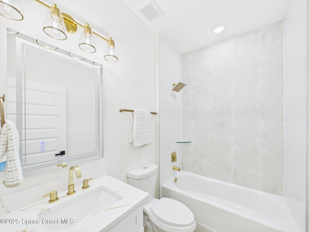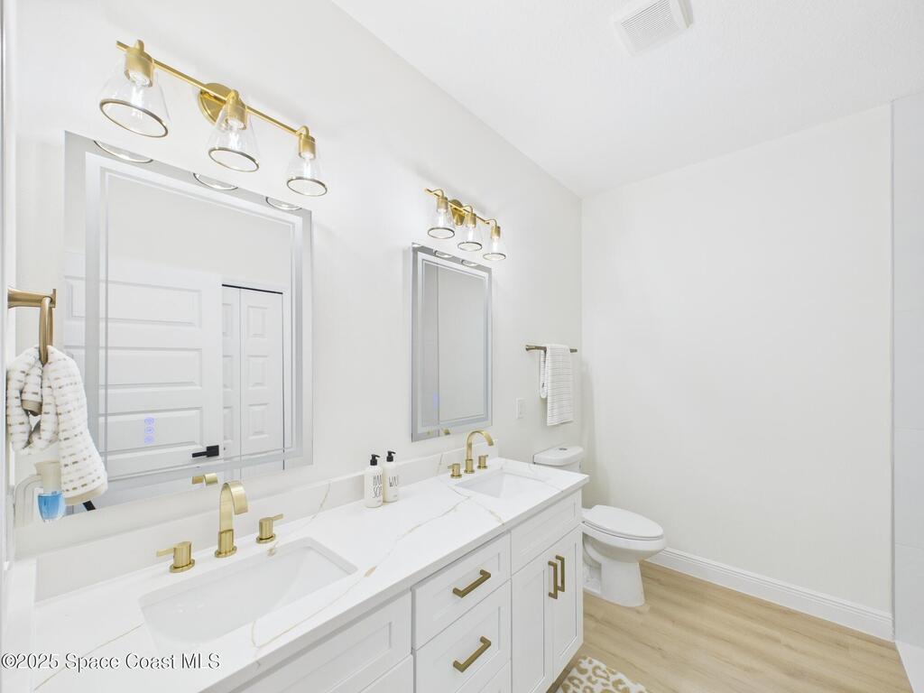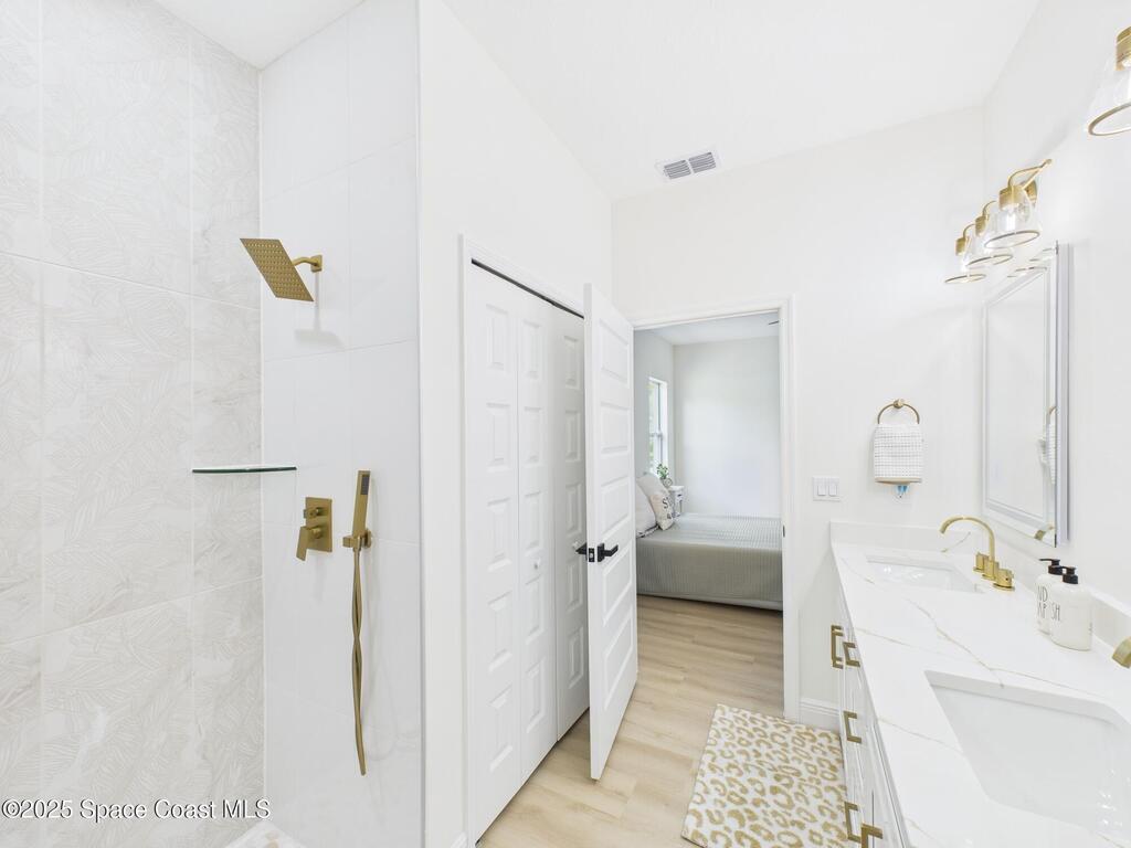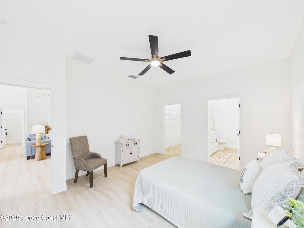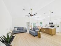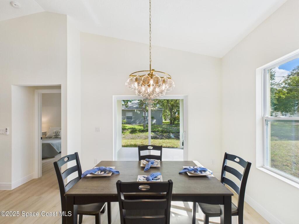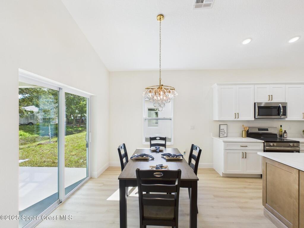 Come see this amazing newly built 3/2 home and experience quality builder upgrades. On a corner lot, with county water, the upgrades in this home make it move-in ready. Luxury vinyl plank flooring throughout, soft close shaker cabinetry in both baths and kitchen, topped with luxury quartz counters, IMPACT resistant glass doors and windows, modern fans, lighting fixtures and garage door opener are already installed! With easy access to CR 512, you are minutes away from the Indian River Lagoon and our fabulous Beaches! Make your appointment today.