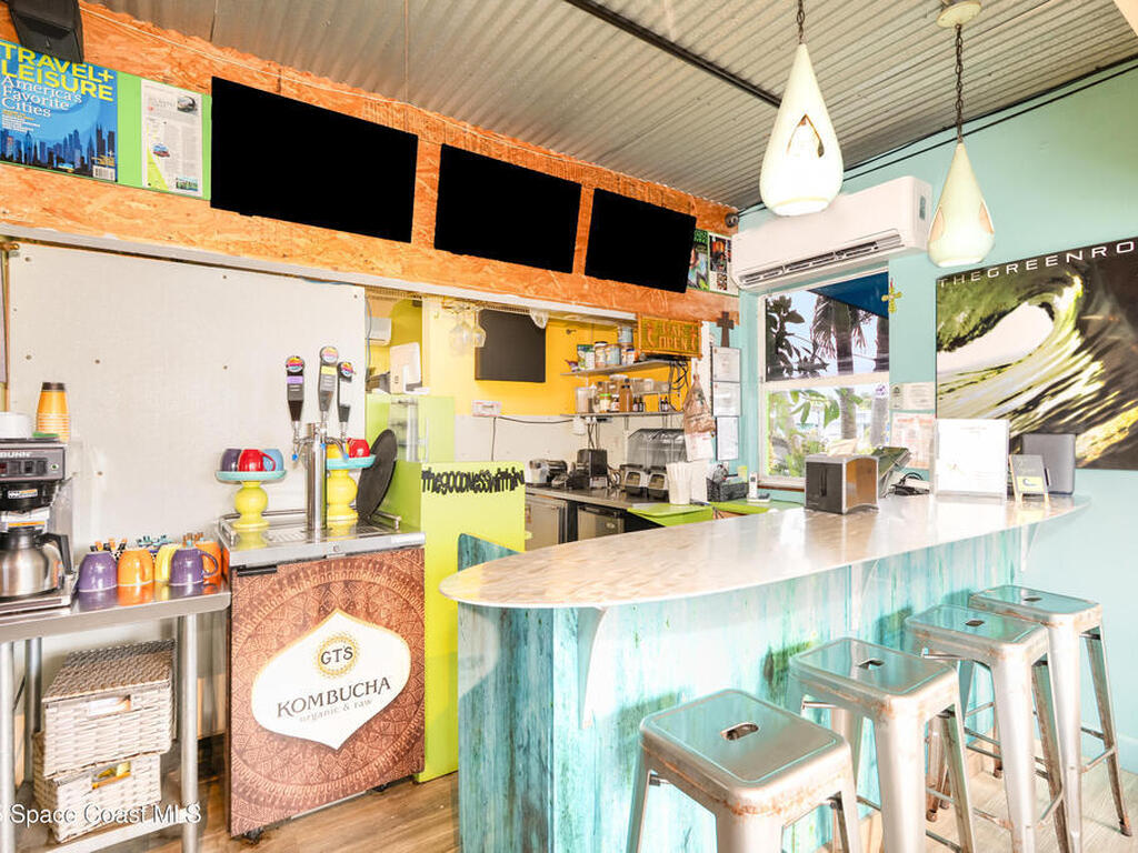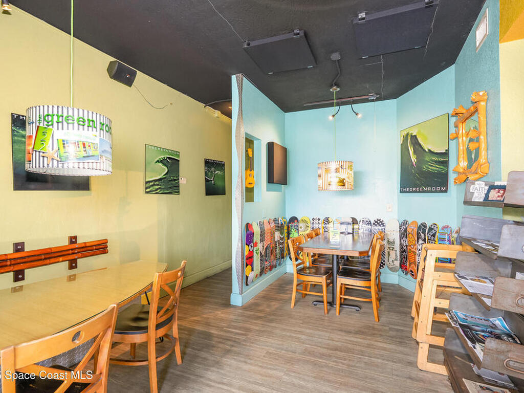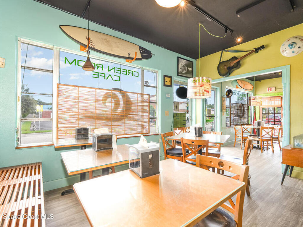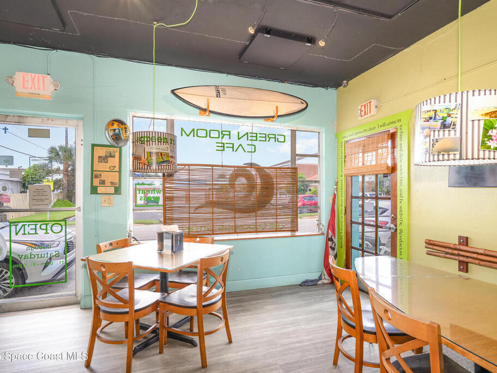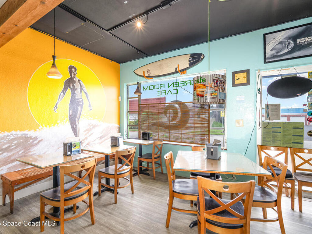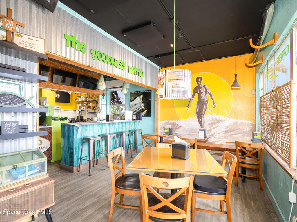Positioned in the downtown Cocoa Beach redevelopment center in one of Florida's most desirable coastal business corridors, this iconic location offers exceptional visibility, convenience, & plenty of parking. The 1, 133 SF interior is filled with natural light & currently operates as a restaurant; all furniture & equipment convey. A shady outdoor seating area with a convenient pass-through window adds appeal for cafe or casual dining concepts. Ideal for continued use as a restaurant or conversion to other mixed-use commercial options. Located just blocks from the Ocean in the booming Space Coast market, this is an excellent opportunity to jump in on the explosive growth happening in Brevard County. This well maintained commercial condo features a 2019 Roof. Units A & B are also for sale (inquire for details). Business is not for sale.