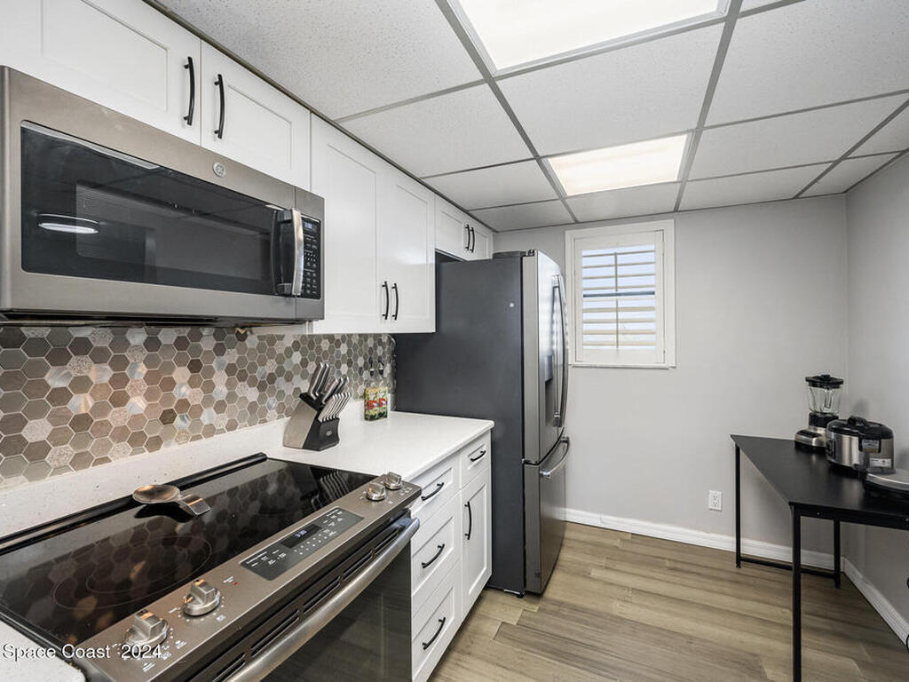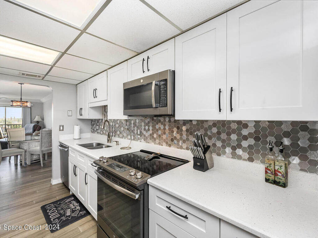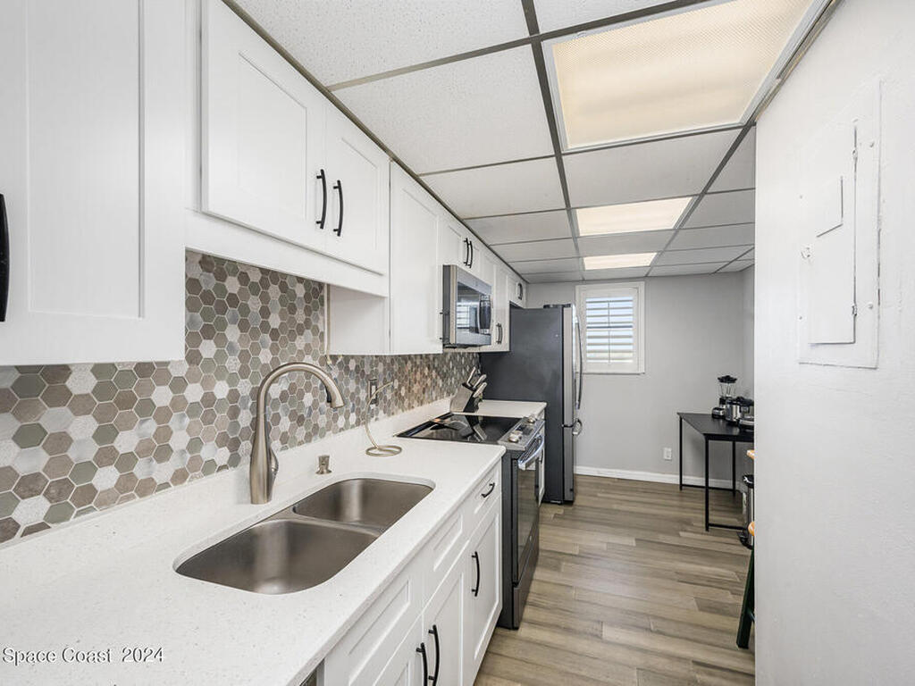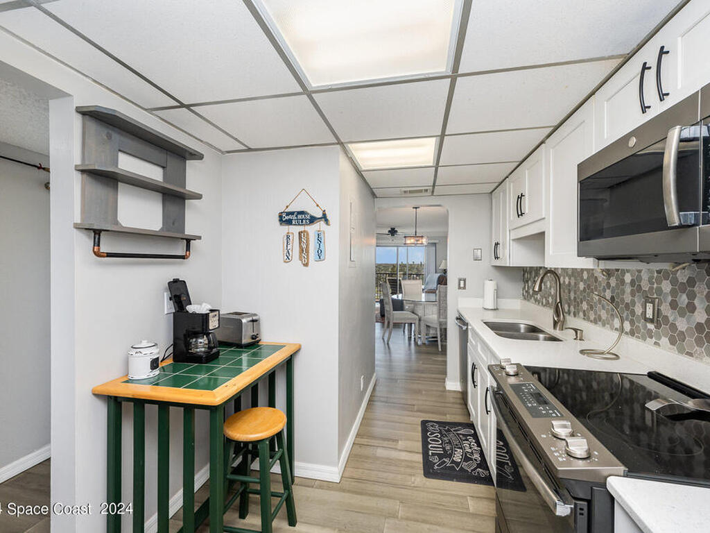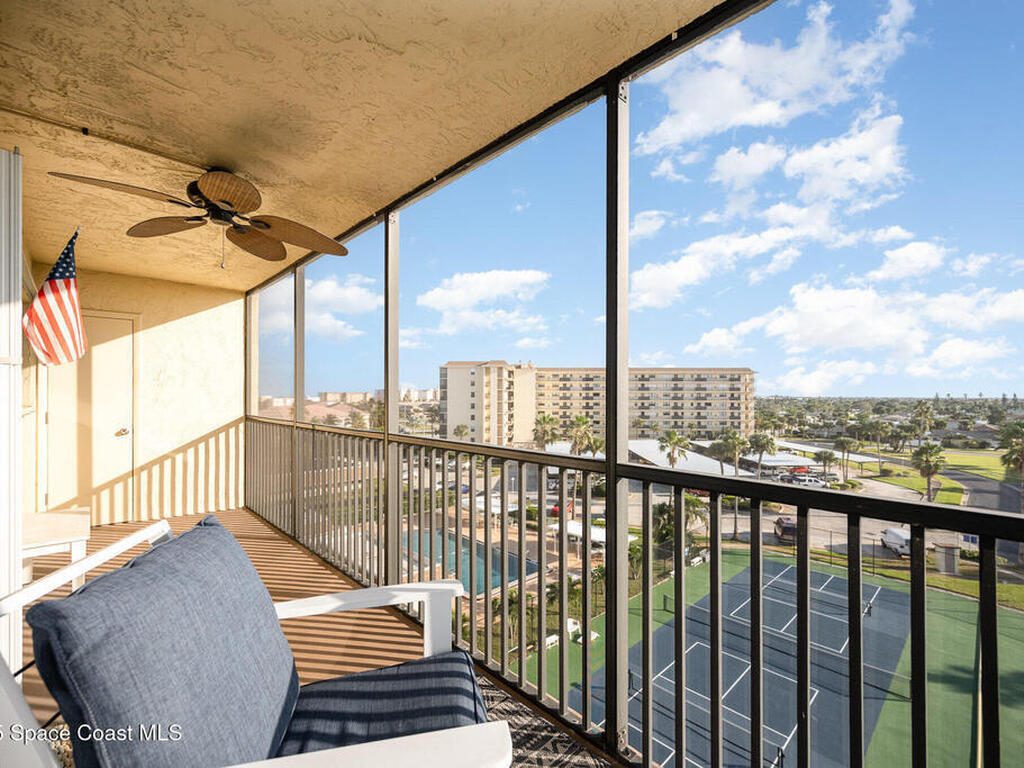 Welcome to this beachside 2 bed, 1.5 bath, 6th floor unit only a block from the ocean! This rare find comes with stunning upgrades with quartz kitchen and beautiful backsplash, laminate flooring throughout, open living area perfect for entertaining, breathtaking views from the balcony, and split bedrooms for privacy! New AC and washer/dryer. Amazing amenities including pool, shuffleboard, tennis, pickle ball, and use of the Clubhouse this home has it all! HOA includes water, sewer, trash, internet, so you can enjoy all that Florida has to offer!