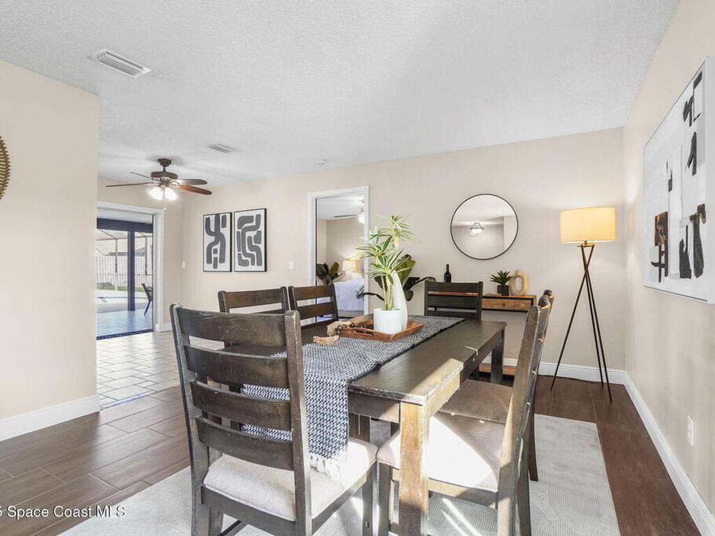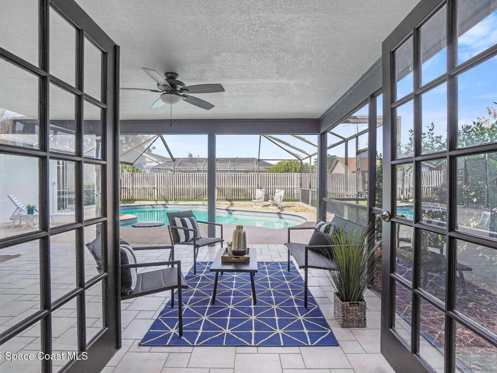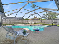 Welcome to this stylish Melbourne pool home with an outdoor Oasis! Beautifully maintained 4-bed, 2-bath home featuring a bright split floor plan and thoughtful upgrades throughout. Enjoy a sparkling screened pool with covered patio, perfect for relaxing or entertaining. A 9x40 concrete slab offers ideal RV or boat parking, while a 10x20 shed adds extra storage for tools or hobbies. The 80-ft well supplies irrigation and pool refills, and the Generac generator provides peace of mind for most items in the home year-round. Inside, find a spacious laundry room with built-ins, open living areas, and a p