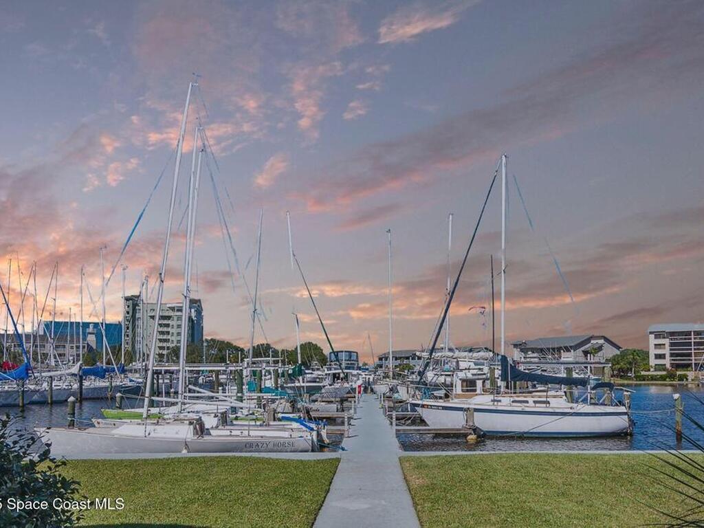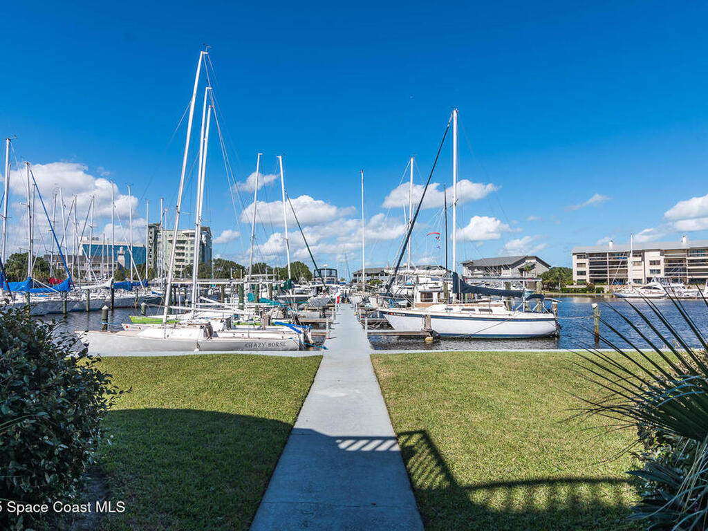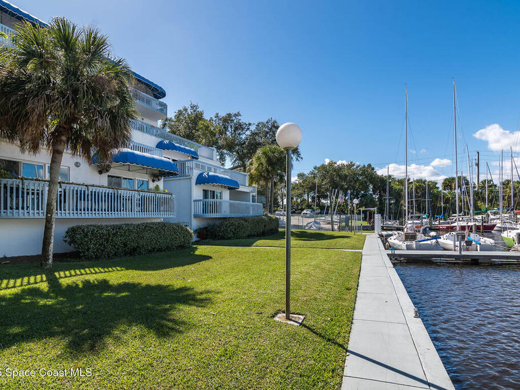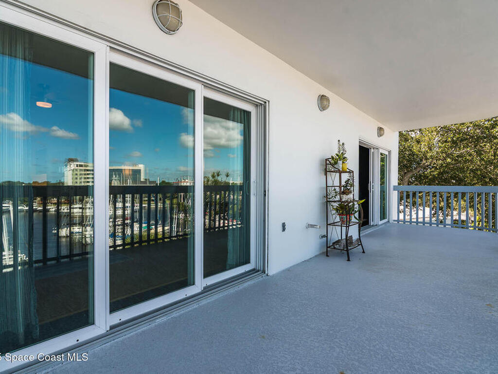Tastefully renovated like a magazine editorial, this condo tells a story of coastal refinement & everyday ease. From sunrise reflections over Melbourne Harbor to moonlit views of the Indian River, every element inspires serenity & sophisticated living. Thoughtfully designed for comfort, it offers elevator access and ADA-compliant features, including a roll-in shower in the main bath. The owner's suite features convenient in-suite laundry with abundant storage cabinets. The kitchen shines w/ SS Bosch appliances, pull-out drawers, lazy Susan & sleek backsplash. Entertain at the wet bar beside the dining area or unwind in the great room by the stone fireplace. Sliders open to an oversized balcony where gentle breezes meet panoramic water views. Two deeded deep-water boat slips included! Use one & rent the other while enjoying an assigned parking, a private 1-car garage & separate storage. Steps from Melbourne Yacht Club, Historic Downtown's dining, shops, nightlife & 5 min to the beach!