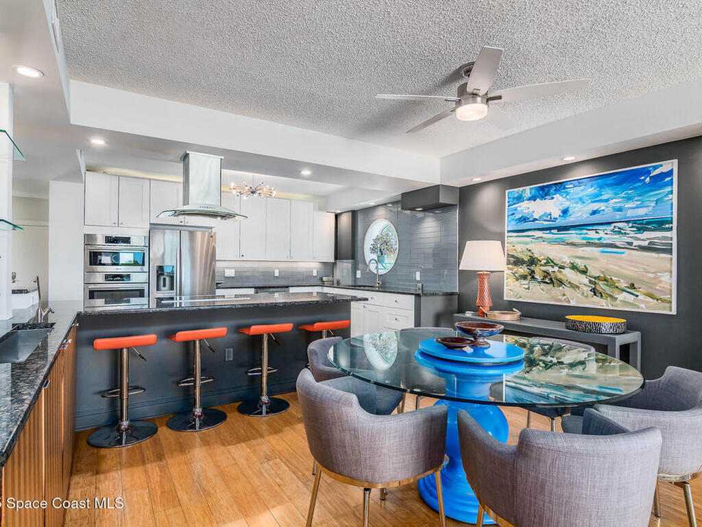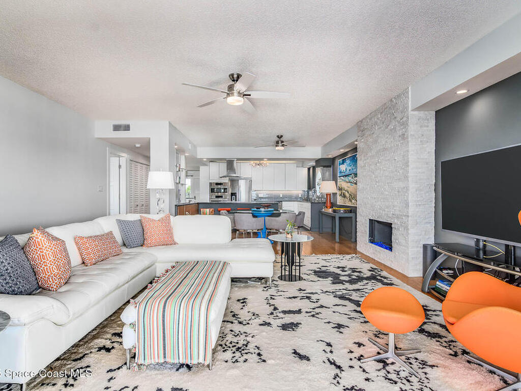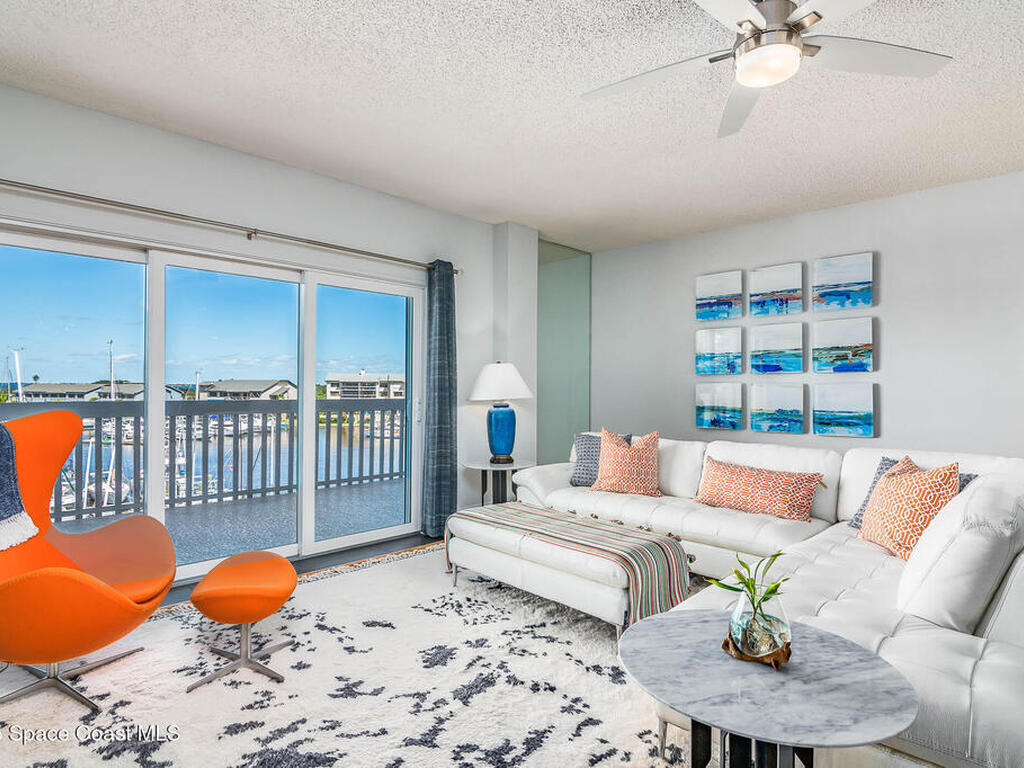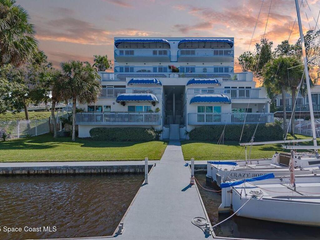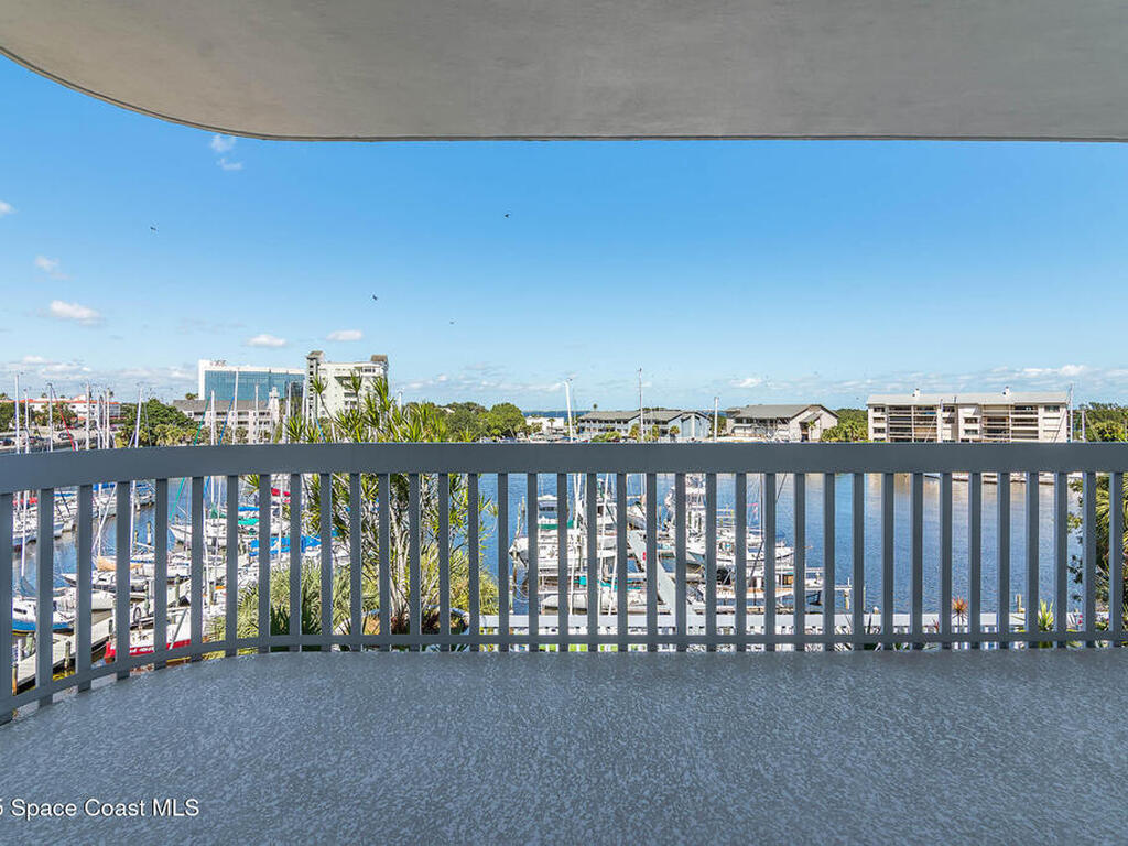 Tastefully renovated like a magazine editorial, this condo tells a story of coastal refinement & everyday ease. From sunrise reflections over Melbourne Harbor to moonlit views of the Indian River, every element inspires serenity & sophisticated living. Thoughtfully designed for comfort, it offers elevator access and ADA-compliant features, including a roll-in shower in the main bath. The owner's suite features convenient in-suite laundry with abundant storage cabinets. The kitchen shines w/ SS Bosch appliances, pull-out drawers, lazy Susan & sleek backsplash. Entertain at the wet bar beside the dining area or unwind in the great room by the stone fireplace. Sliders open to an oversized balcony where gentle breezes meet panoramic water views. Two deeded deep-water boat slips included! Use one & rent the other while enjoying an assigned parking, a private 1-car garage & separate storage. Steps from Melbourne Yacht Club, Historic Downtown's dining, shops, nightlife & 5 min to the beach!