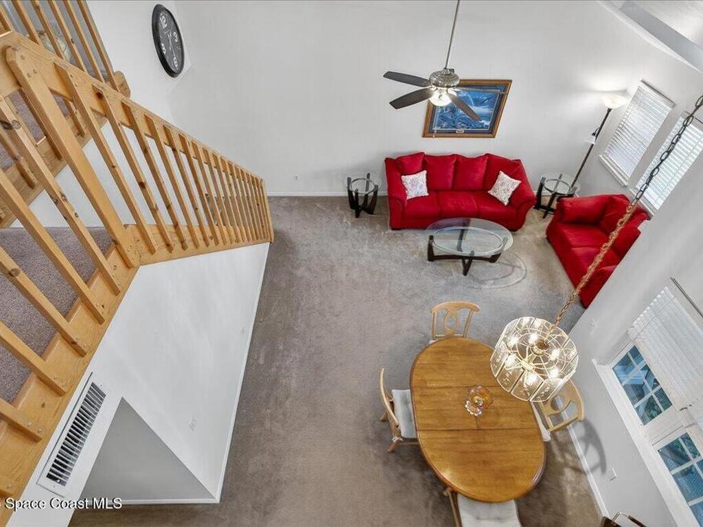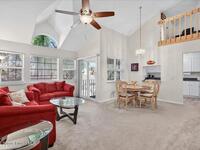 Soaring ceilings in this nicely maintained condo with loft / family room! 2BR/3BA, including full bath in loft! Spacious living / dining rooms with access to screened porch, kitchen. Handy kitchen with space for small table or credenza. Walk-in closets in both bedrooms. Full-sized laundry in unit. Impact windows! Roof - 2018. AC - 2020 . Building re-pipe - 2022. Furnishings available! Attractive community near shopping, restaurants & golf, yet only 8 miles to the beach! Olympic-sized heated pool, fitness center, tennis/pickleball & racquetball courts, library, more!