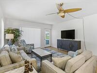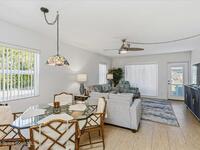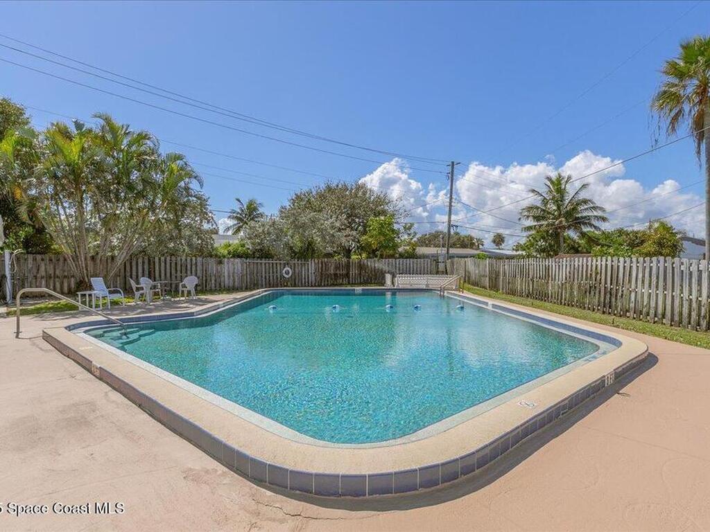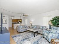 Adorable corner unit beachside condo just steps from the ocean! Fully furnished and move-in ready--perfect for a winter getaway or full-time residence. Remodeled kitchen with granite countertops and newer stainless steel appliances. Updated bath. New living room and bedroom furniture. Tile and laminate flooring throughout. Newer A/C and water heater. Enjoy cool evenings on the private outdoor patio. Assigned carport and storage unit located directly next to the condo. Laundry facility located next to unit. Community pool. Prime location close to shopping, dining, and entertainment.