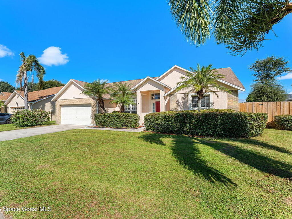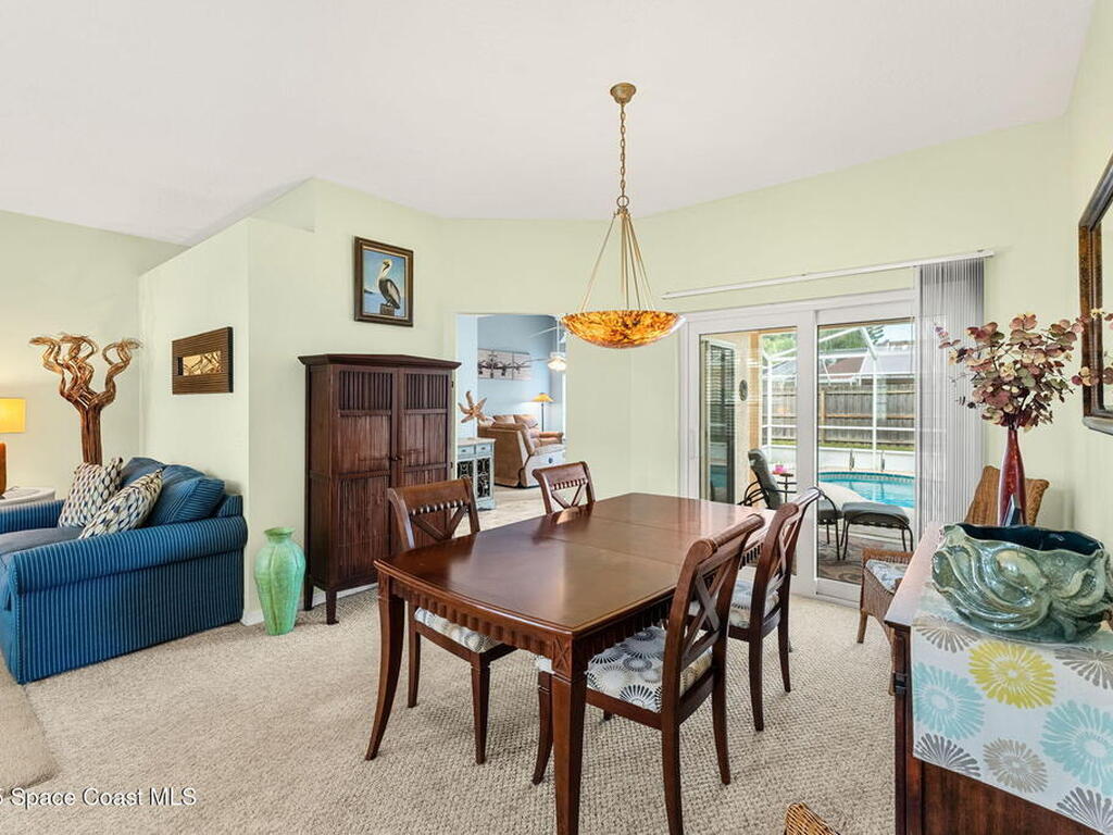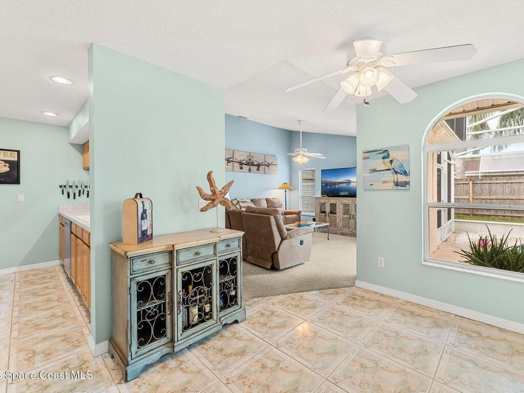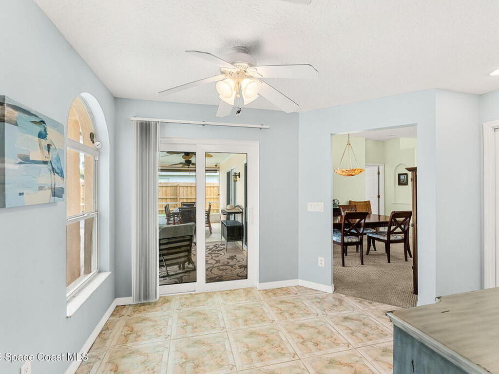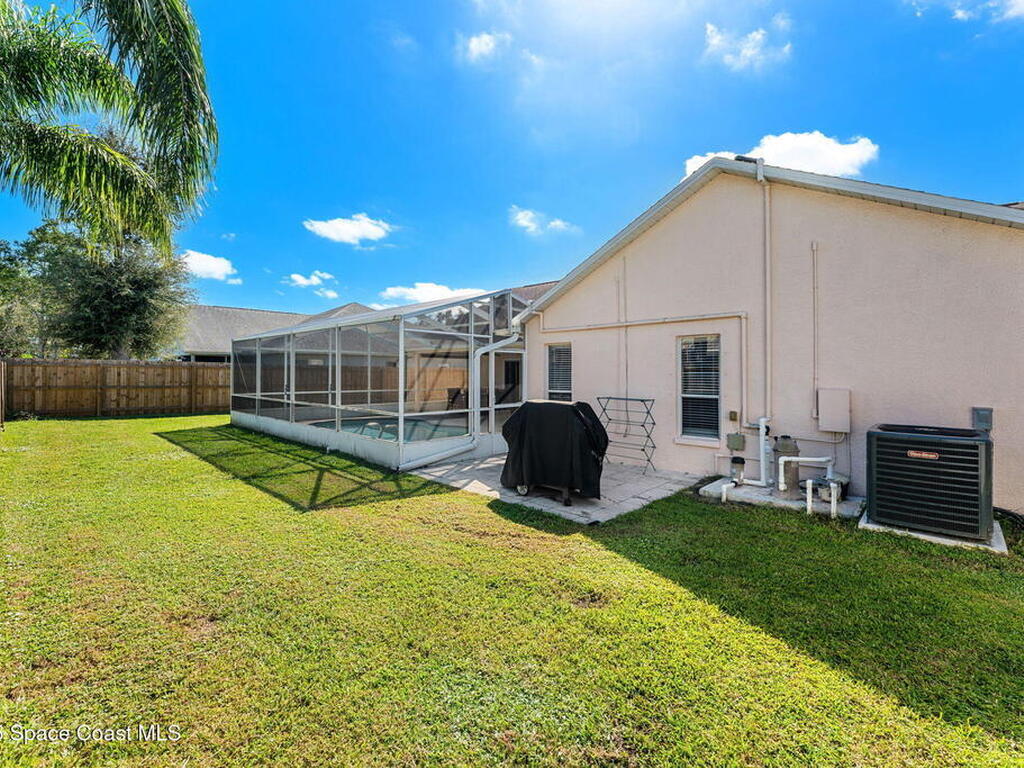 Full of natural light and easy Florida charm, this Rockledge pool home was designed for comfortable living. A thoughtful split floor plan balances connection and privacy, while vaulted ceilings and soft tones create an airy, welcoming feel. The kitchen opens to a cheerful breakfast nook and dining area overlooking the pool, ideal for both quiet mornings and easy entertaining. The primary suite offers direct lanai access, walk in closet, and a spacious bath with soaking tub and walk-in shower. Two guest bedrooms and a full bath provide flexibility for family or visitors. Outside, a screened patio, sparkling pool, and large fenced backyard invite everyday relaxation. With a roof replaced in 2019, community natural gas, and space that truly lives well, this home blends comfort with a touch of coastal personality.