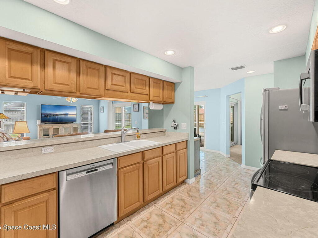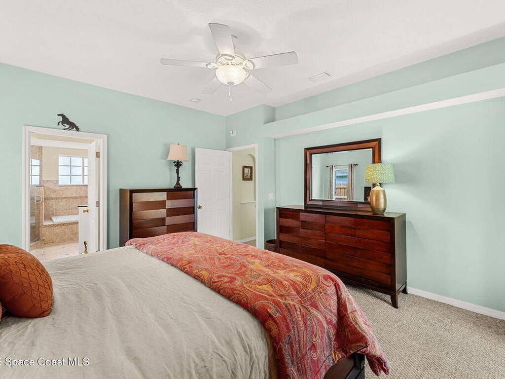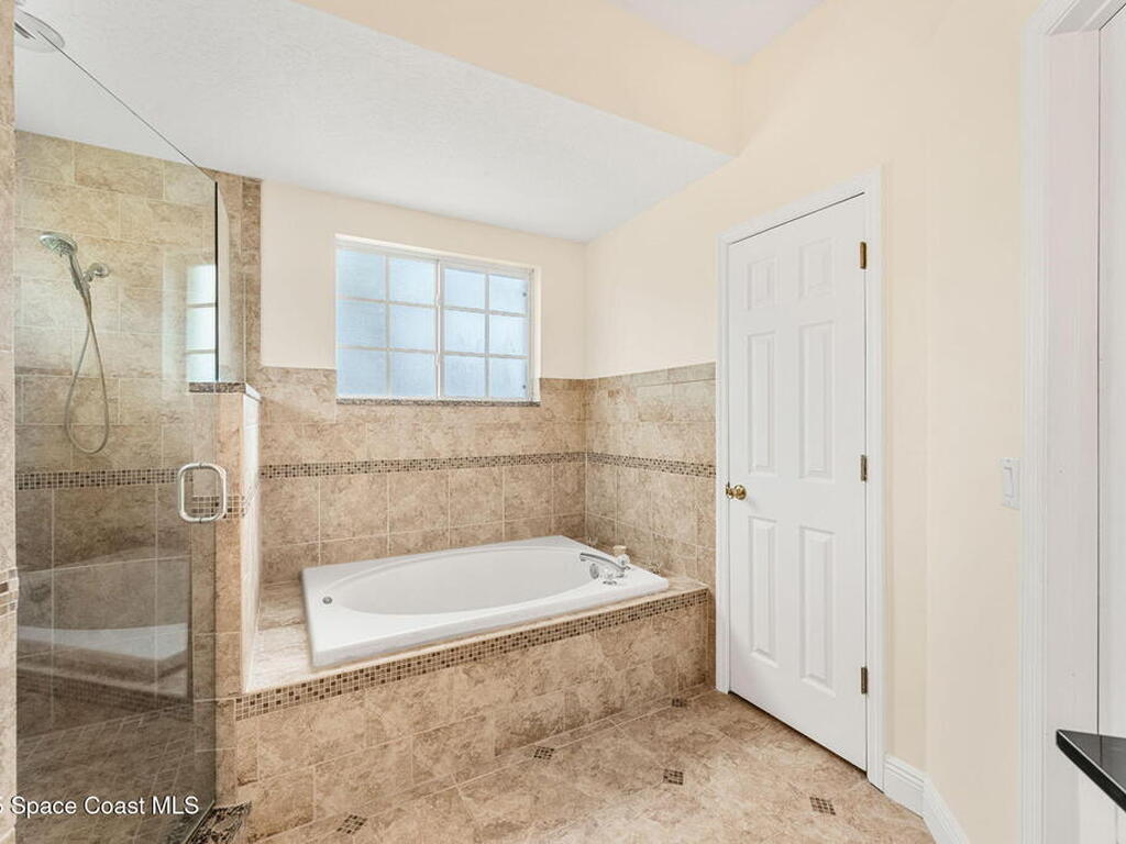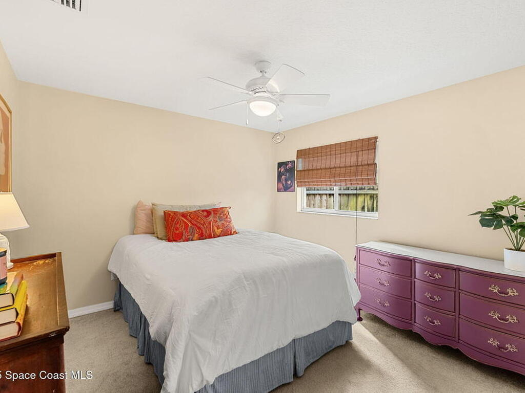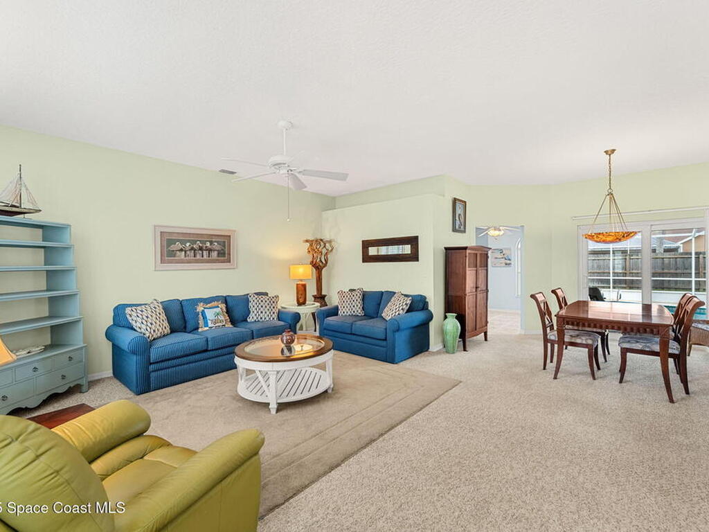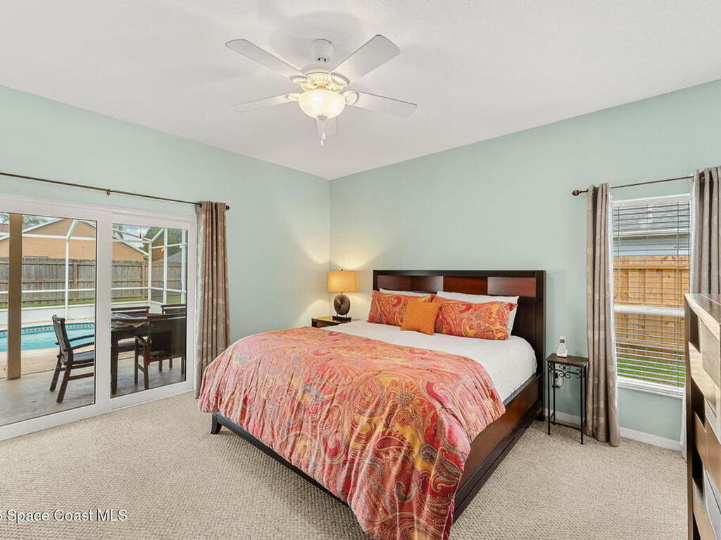 Full of natural light and easy Florida charm, this Rockledge pool home was designed for comfortable living. A thoughtful split floor plan balances connection and privacy, while vaulted ceilings and soft tones create an airy, welcoming feel. The kitchen opens to a cheerful breakfast nook and dining area overlooking the pool, ideal for both quiet mornings and easy entertaining. The primary suite offers direct lanai access, walk in closet, and a spacious bath with soaking tub and walk-in shower. Two guest bedrooms and a full bath provide flexibility for family or visitors. Outside, a screened patio, sparkling pool, and large fenced backyard invite everyday relaxation. With a roof replaced in 2019, community natural gas, and space that truly lives well, this home blends comfort with a touch of coastal personality.