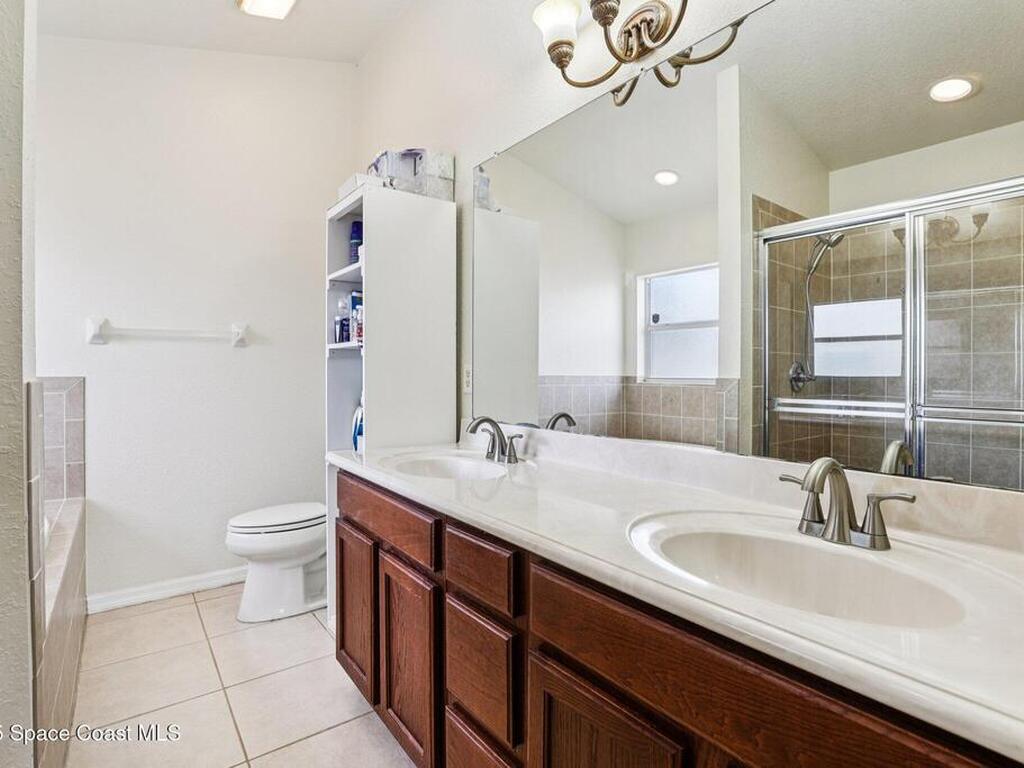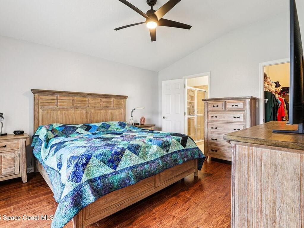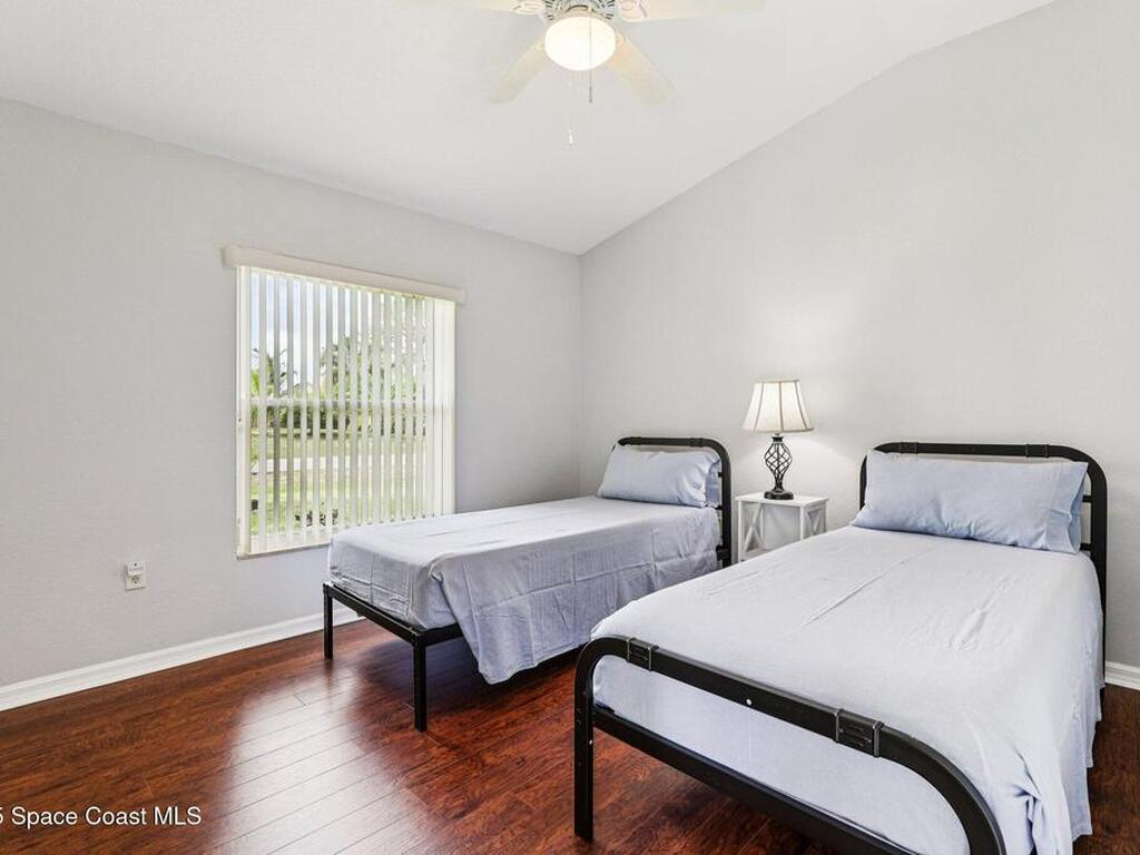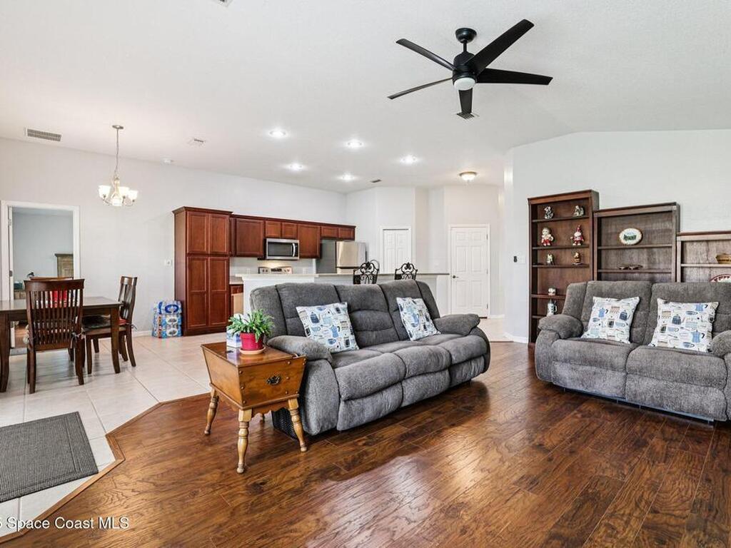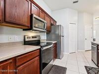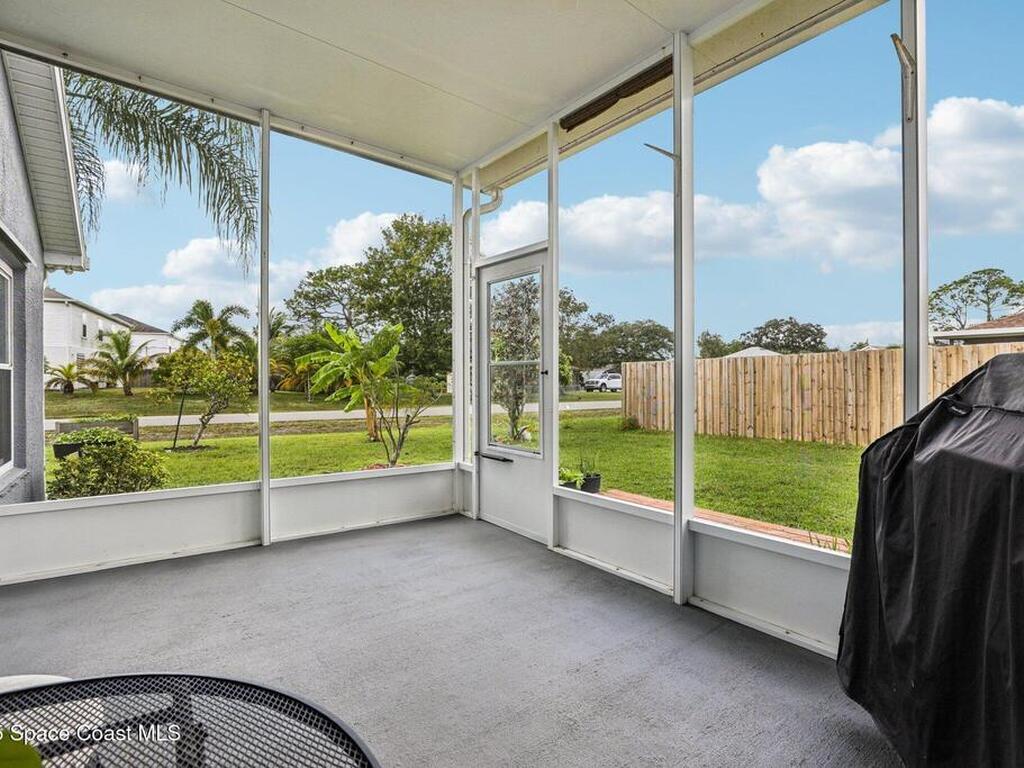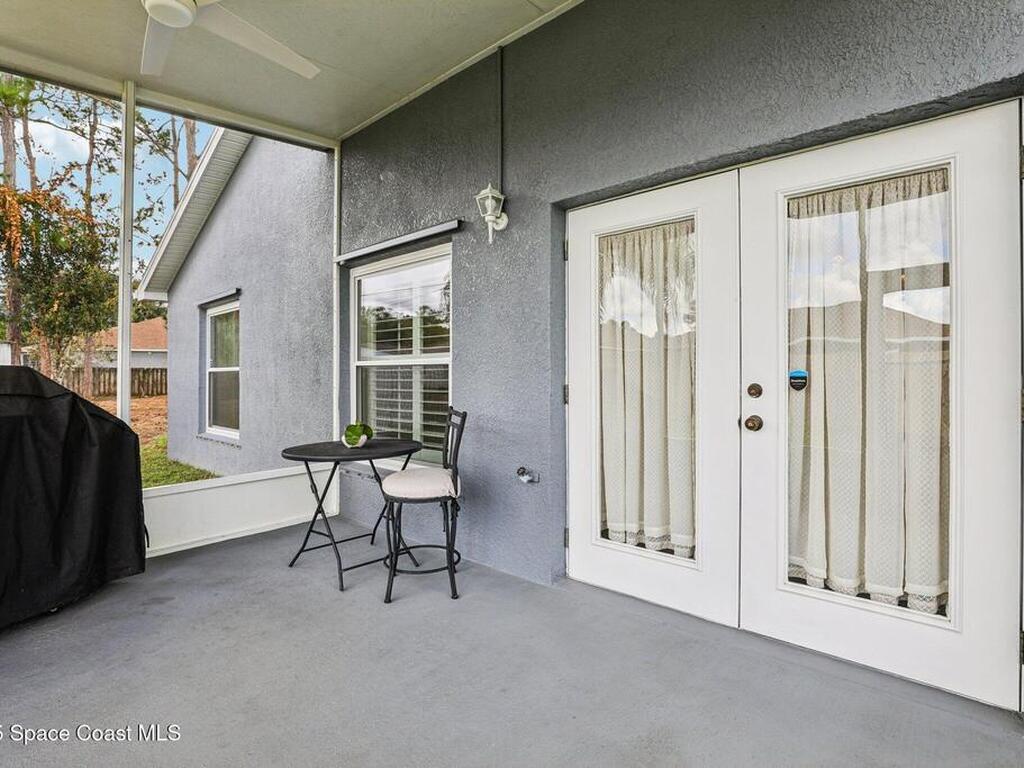 Beautifully updated home on a corner lot with city water and city sewer! This stunning 3-bedroom, 2-bath home offers 1, 541 square feet of living space on a spacious 0.24-acre lot in Palm Bay. Numerous upgrades have been completed since 2023, including a NEW roof, NEW water heater, NEW appliances (washer and dryer included), exterior home painted, NEW gutters added, exterior security lighting replaced and updated smoke and CO2 detectors. The home also features Simply Safe security system with window sensors and AT&T fiber wiring for high-speed internet. Inside, you'll find an inviting open floor plan with 10' vaulted ceilings and the kitchen overlooks the dining and great room--perfect for entertaining. The oversized kitchen boasts beautiful oak cabinetry with roll-out drawers, an extra pantry, ceramic cooktop stove, built-in microwave, and refrigerator with water dispenser.