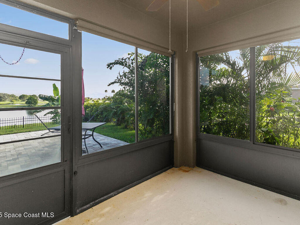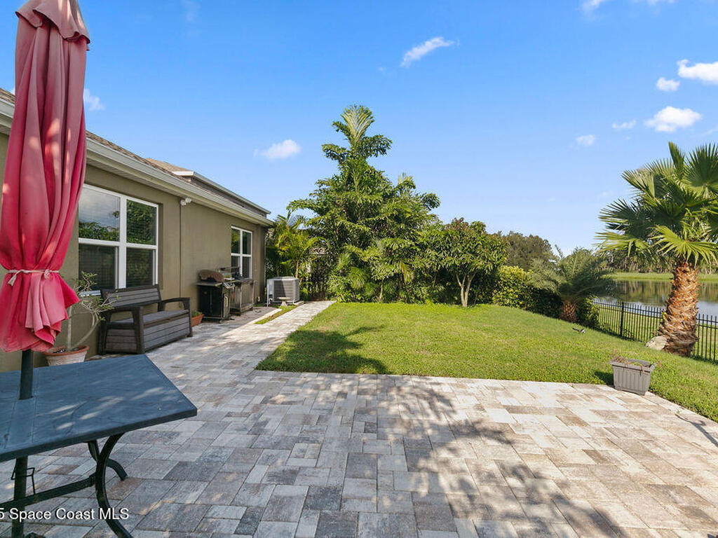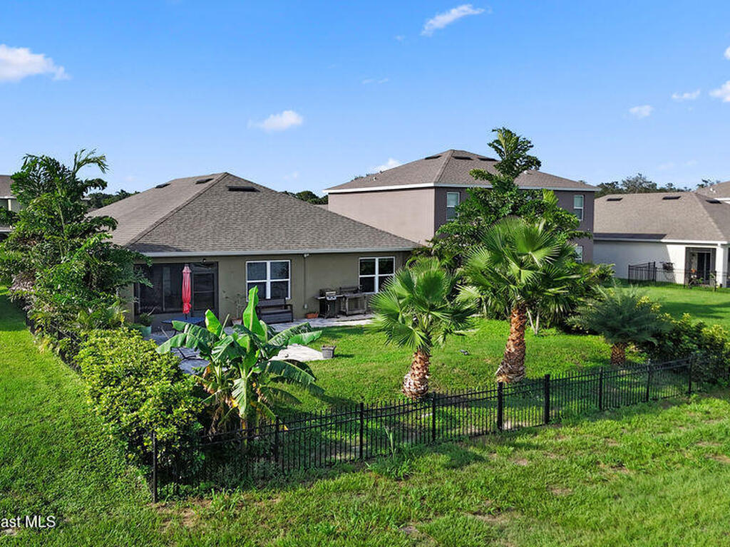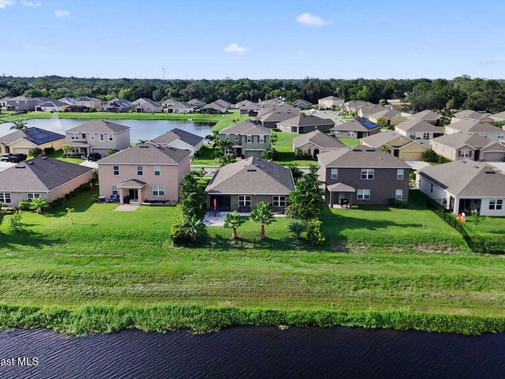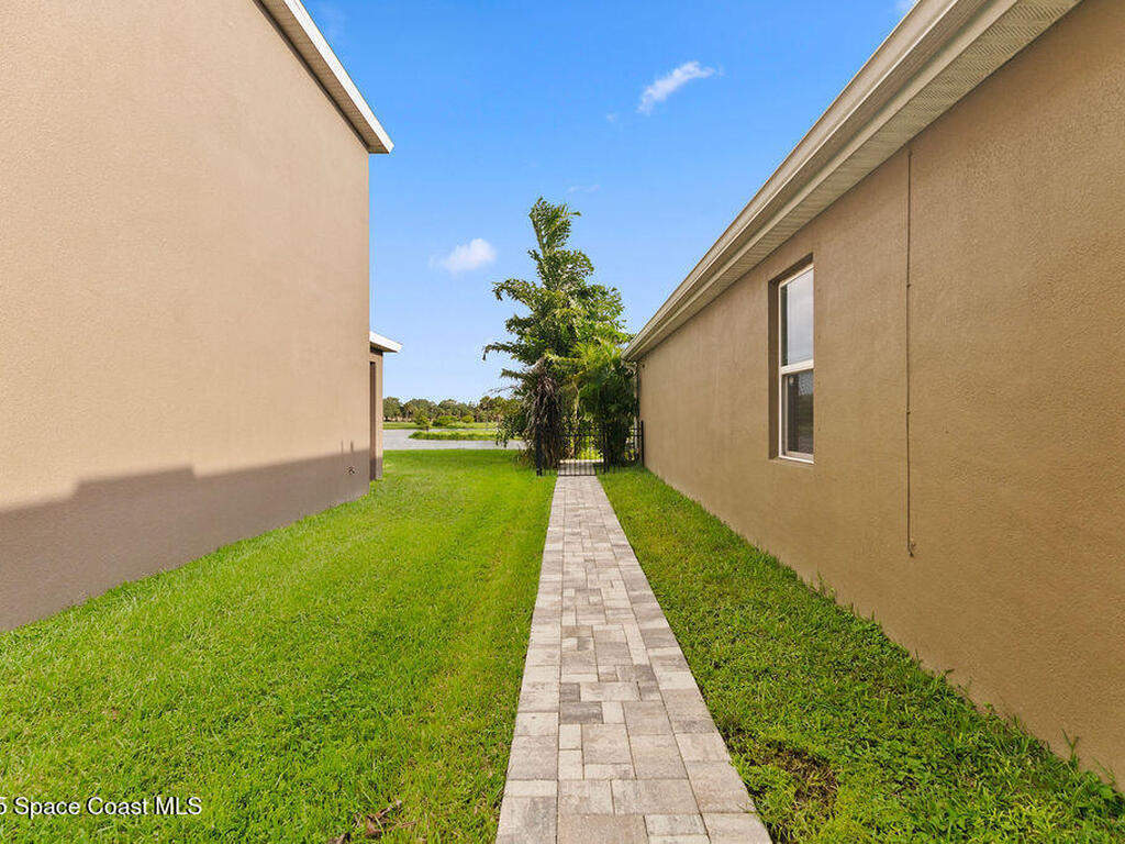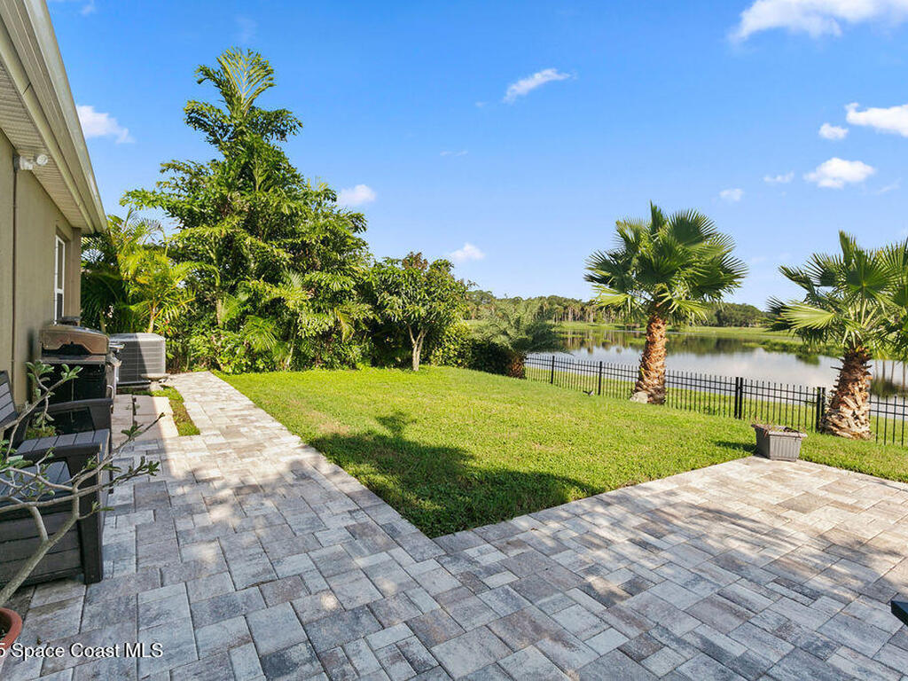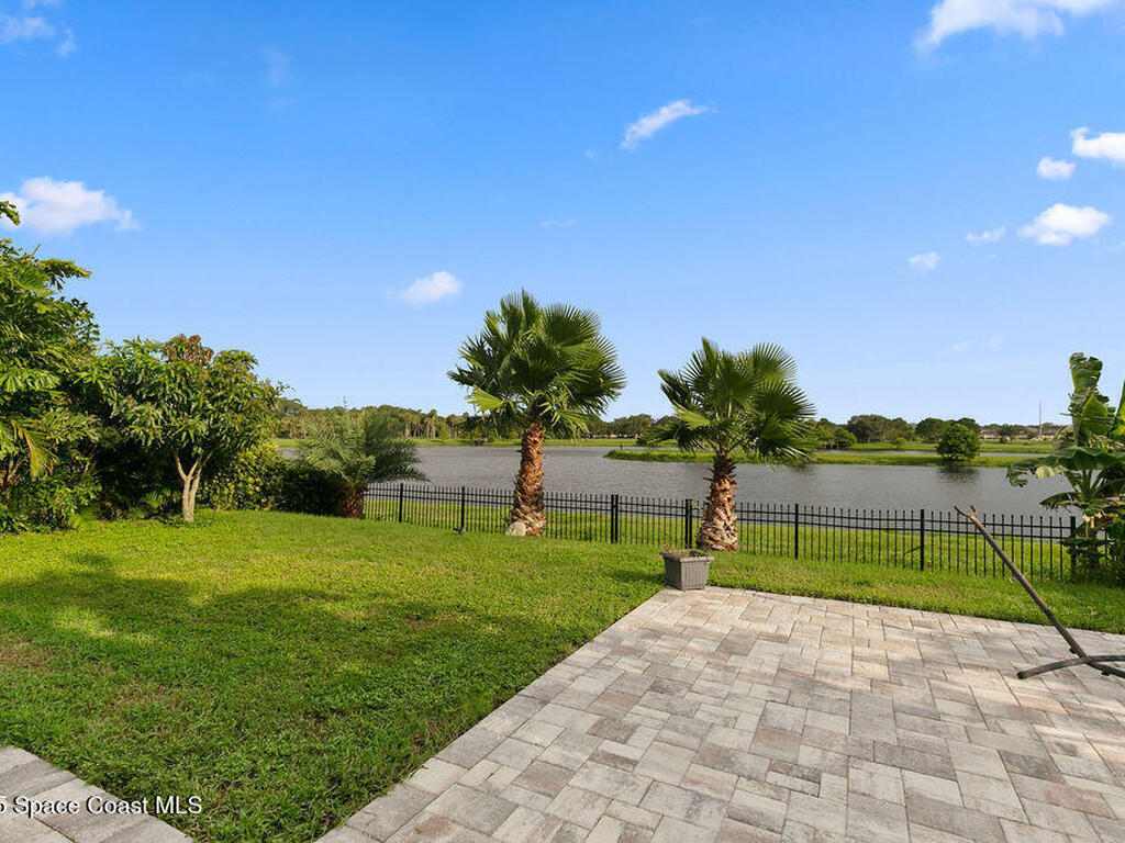 Welcome to this beautifully maintained 4-bedroom, 2-bath lakefront Smart Home offering comfort, style, and serene water views. This open-concept Cali model features ceramic tile flooring throughout, a spacious kitchen with a large island, 36'' cabinets with crown molding, and stainless-steel appliances. The living and dining area open to a Plexi glass screened-in lanai overlooking the lake. The primary suite includes a walk-in shower, double vanity, oversized closet, and extra linen storage. All the extra perks have been done for you! Storm shutters, light fixtures, window treatments, security system, ceiling fans and more. Enjoy the backyard, which has been fully fenced with wrought iron along with a paver patio. Just minutes away from Cocoa Village, Dr Anderson Park, Beaches, Orlando and Airport.