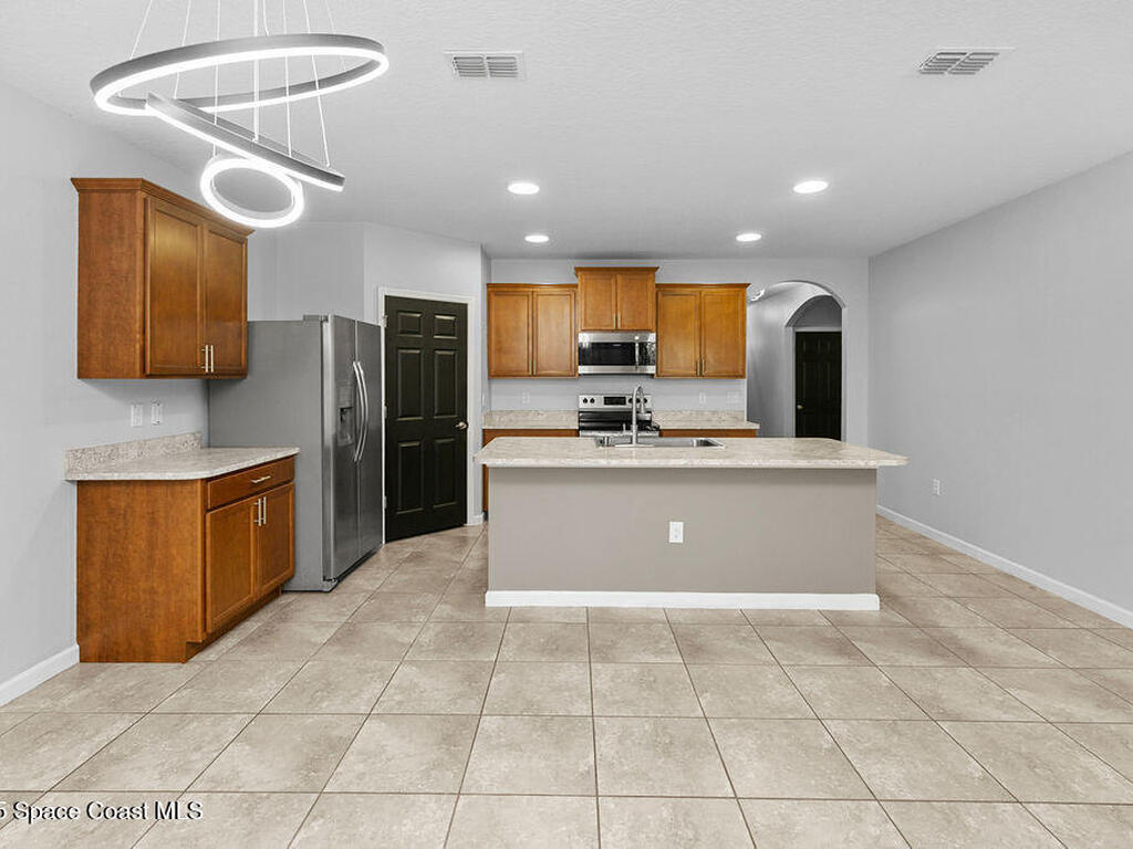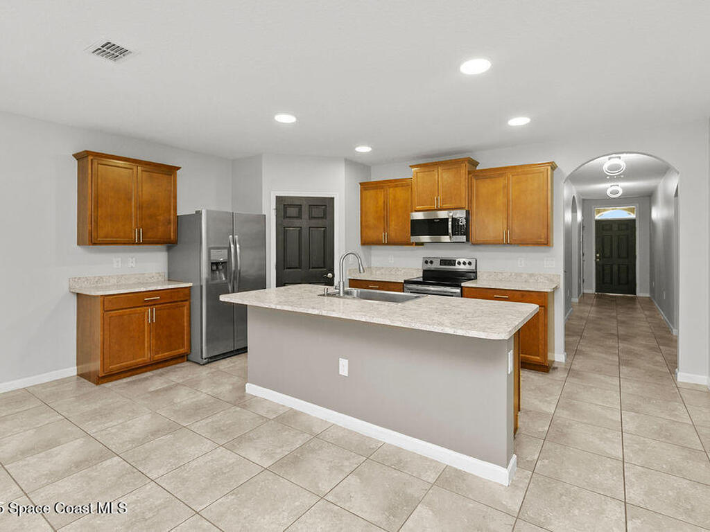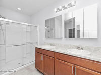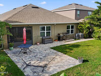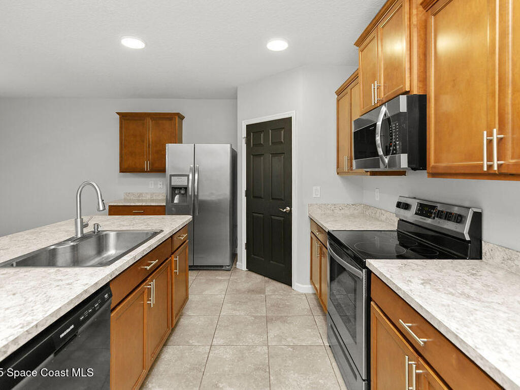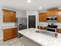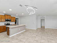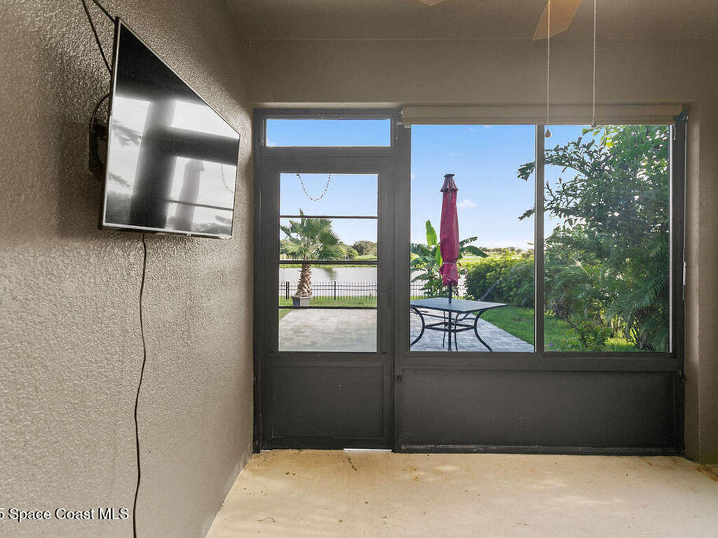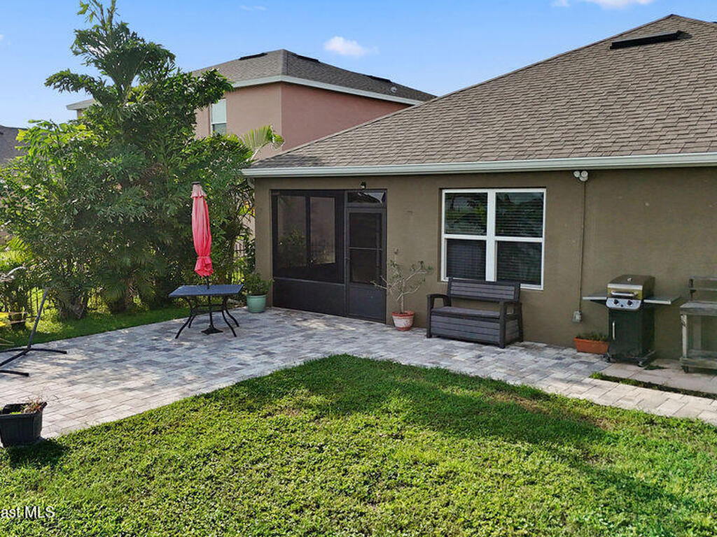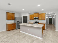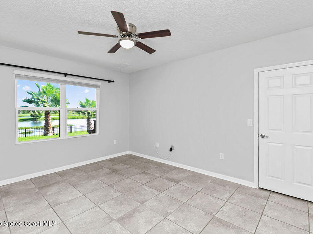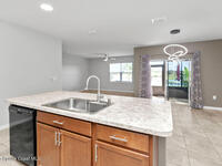 Welcome to this beautifully maintained 4-bedroom, 2-bath lakefront Smart Home offering comfort, style, and serene water views. This open-concept Cali model features ceramic tile flooring throughout, a spacious kitchen with a large island, 36'' cabinets with crown molding, and stainless-steel appliances. The living and dining area open to a Plexi glass screened-in lanai overlooking the lake. The primary suite includes a walk-in shower, double vanity, oversized closet, and extra linen storage. All the extra perks have been done for you! Storm shutters, light fixtures, window treatments, security system, ceiling fans and more. Enjoy the backyard, which has been fully fenced with wrought iron along with a paver patio. Just minutes away from Cocoa Village, Dr Anderson Park, Beaches, Orlando and Airport.