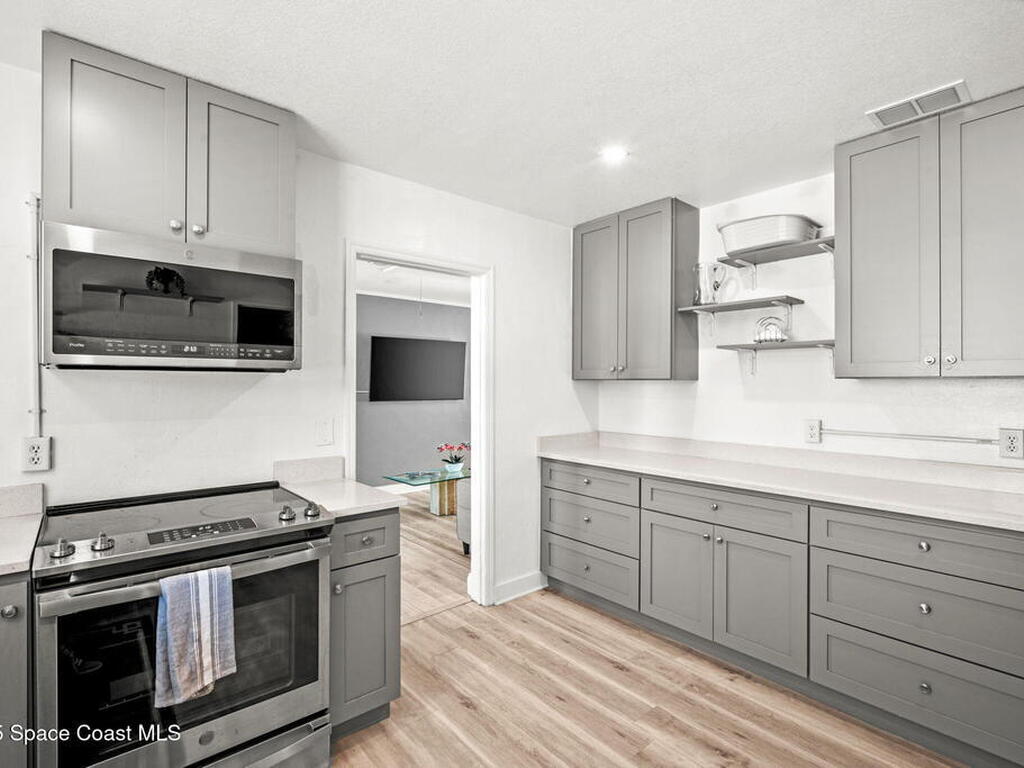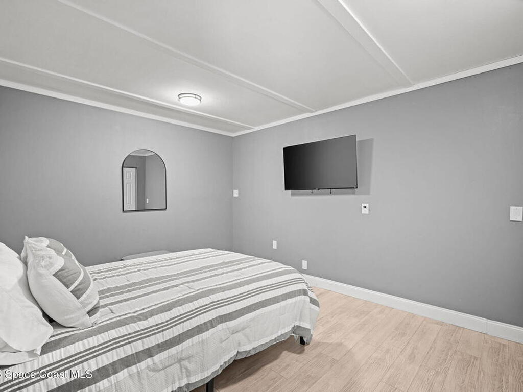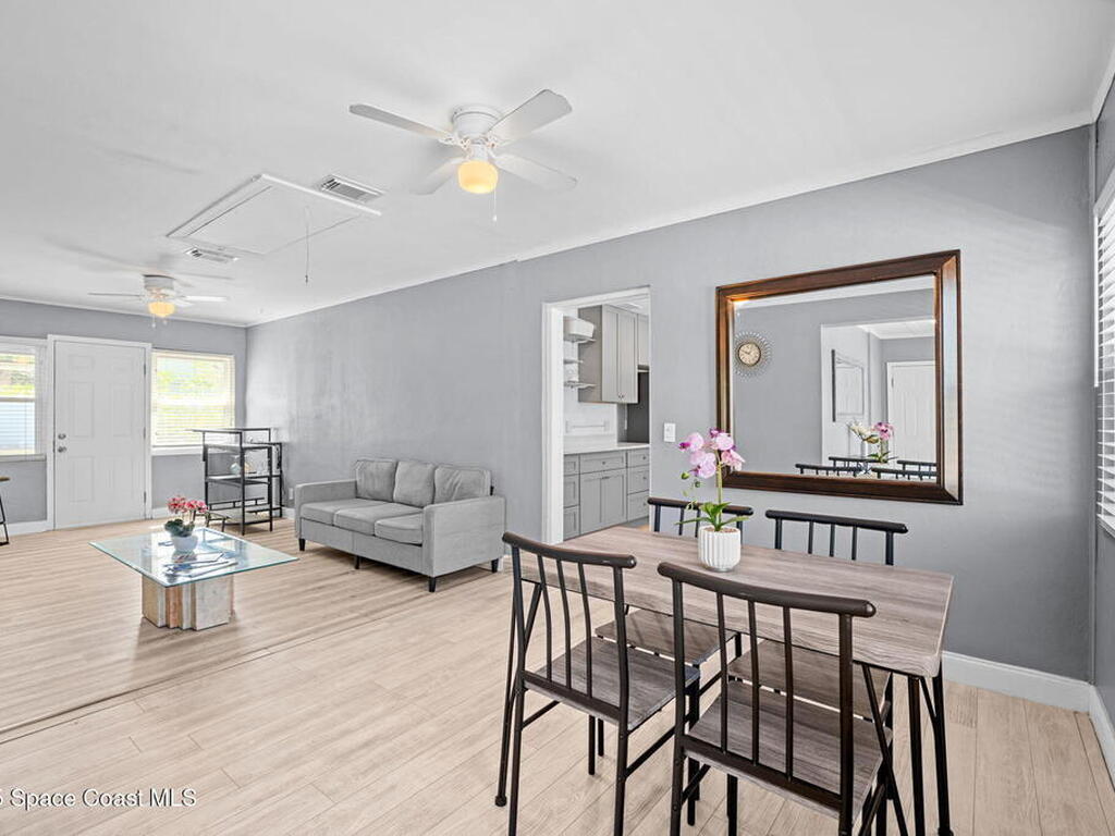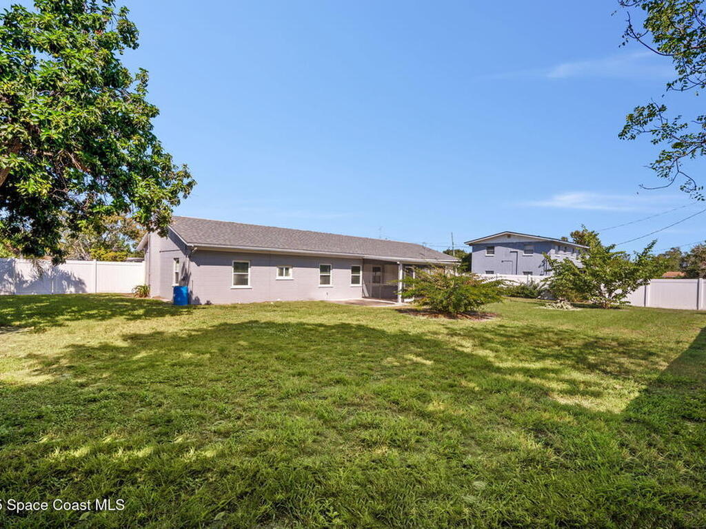 Charming and updated, this well-maintained home is located in one of South Merritt Island's most established neighborhoods. A new roof installed in 2022 adds to the property's appeal. The bathrooms have been tastefully renovated, and the kitchen features quartz countertops, a farmhouse sink, and stainless steel appliances. Throughout the home, modern tile and vinyl plank flooring offer a fresh, low-maintenance touch--no carpet anywhere. The spacious fenced backyard is a highlight, providing ample room for a pool, as well as boat or camper parking. Newer windows enhance safety and energy efficiency. With no HOA, this versatile property is ideal for a variety of uses--whether as a primary residence, seasonal retreat, long-term rental, or short-term investment opportunity. Minutes to SR 520, 528, and I-95, with easy access to Patrick Space Force Base, SpaceX, and Blue Origin.