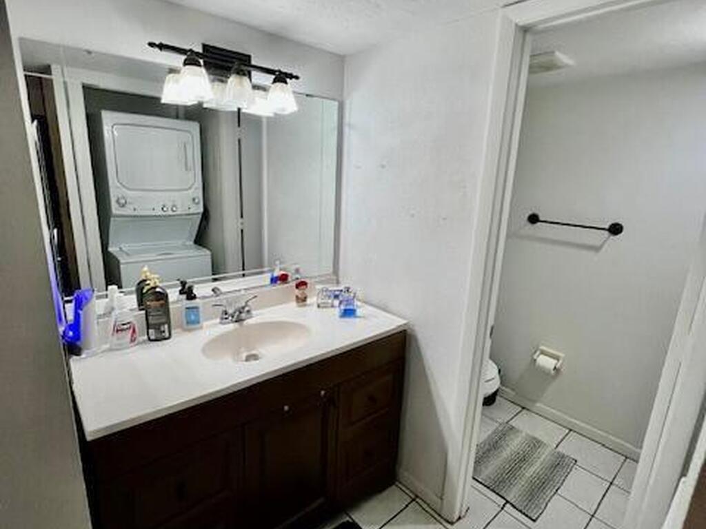 Check out this ground floor 2 Bedroom, 2 full bath condo. These units are perfect homes or investment properties. Centrally located community with two pools and plenty of parking! Carefree living HOA includes so much. Water, sewer, internet, cable, roof replacement, exterior paint and all grounds maintenance. No carpet in unit, all tile throughout, 2 spacious split plan bedrooms, large screened porch off living room, in unit stackable washer dryer. New HVAC 2024. This unit is located in back of building for lots of privacy and green space. Short drive to shopping, restaurants & quick commute to I-95**tenant occupied but moving out soon