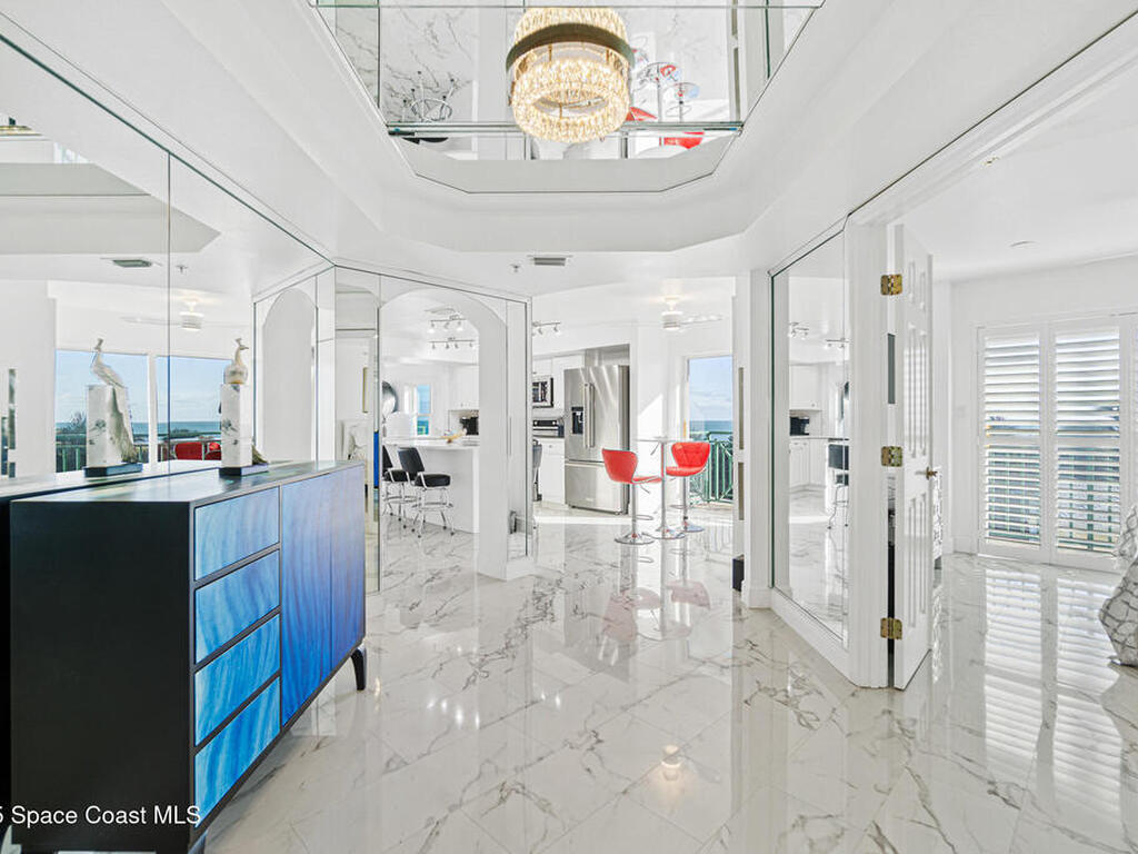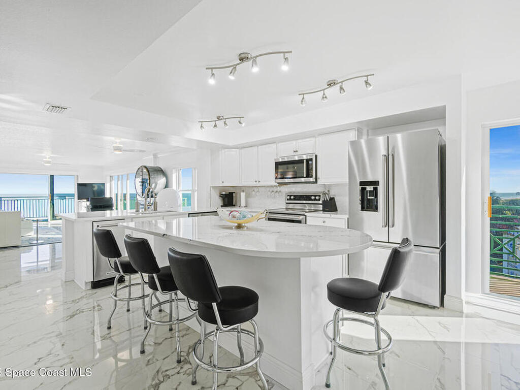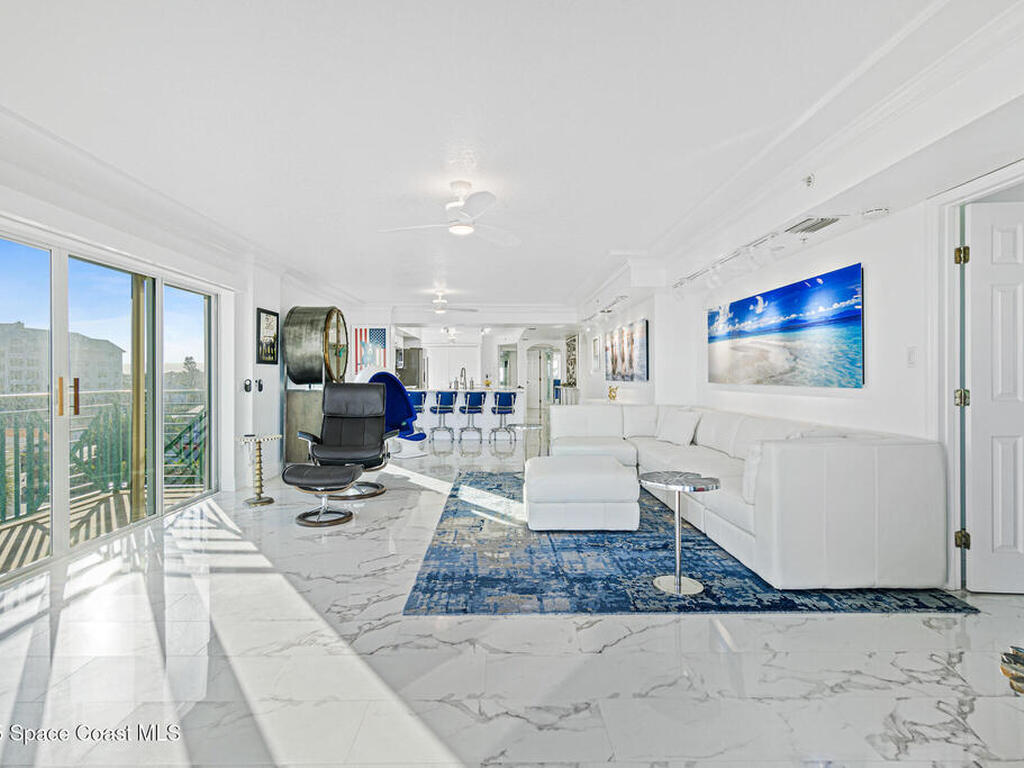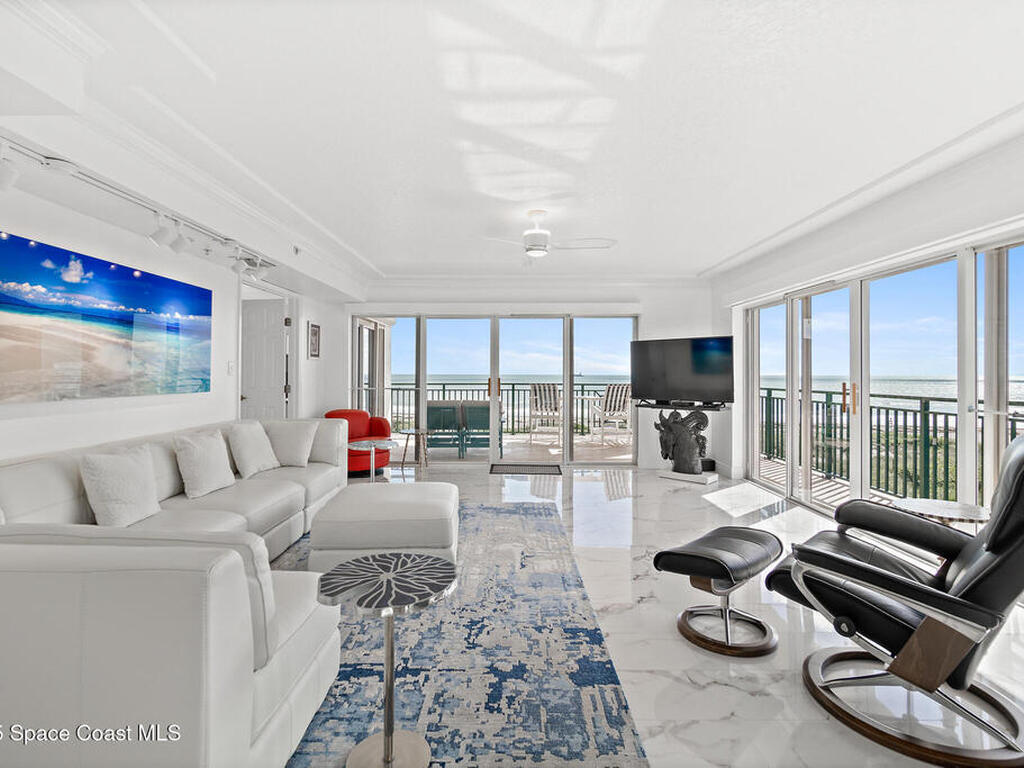 Step through the door and the rest of the world slips away. Inside every room feels intentional. The open living area flows effortlessly toward the ocean with walls of glass framing endless views. The kitchen was designed for both the cook and the conversationalist featuring stone countertops, a full pantry wall and stainless steel appliances. The primary suite is a pure retreat. Wake up to sunrise over the water, unwind in the double walk in shower and step into your private sauna to melt away the day. Two additional bedrooms each offer their own bath, privacy and comfort for guests and family. Every window is dressed in either plantation shutters or automated shades, giving you total control over the light and mood. Step outside and the balcony becomes your front row seat to the Space Coast's signature moments. The furnishings are negotiable, making this turn-key opportunity even more effortless. This is not just oceanfront living it's the Florida Lifestyle.