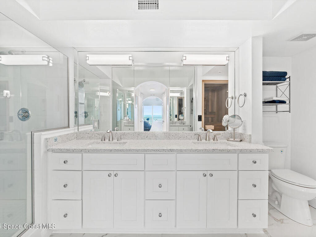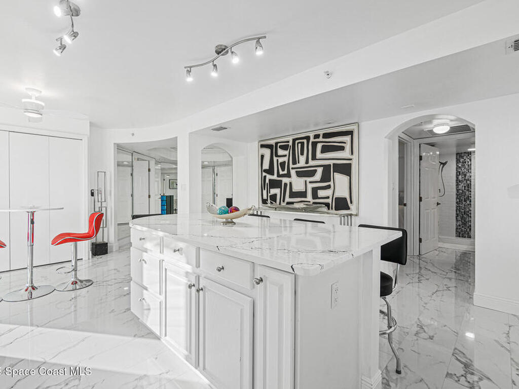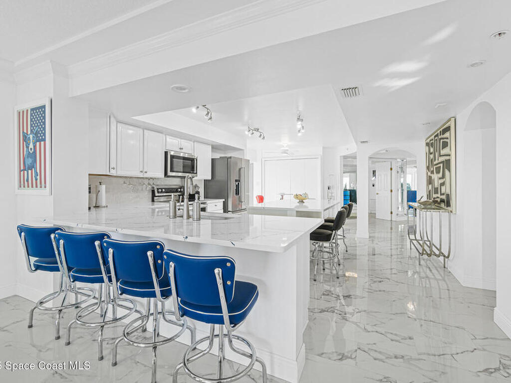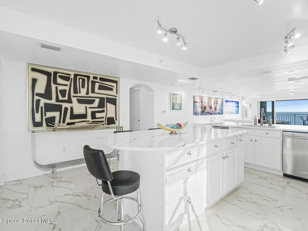 Step through the door and the rest of the world slips away. Inside every room feels intentional. The open living area flows effortlessly toward the ocean with walls of glass framing endless views. The kitchen was designed for both the cook and the conversationalist featuring stone countertops, a full pantry wall and stainless steel appliances. The primary suite is a pure retreat. Wake up to sunrise over the water, unwind in the double walk in shower and step into your private sauna to melt away the day. Two additional bedrooms each offer their own bath, privacy and comfort for guests and family. Every window is dressed in either plantation shutters or automated shades, giving you total control over the light and mood. Step outside and the balcony becomes your front row seat to the Space Coast's signature moments. The furnishings are negotiable, making this turn-key opportunity even more effortless. This is not just oceanfront living it's the Florida Lifestyle.