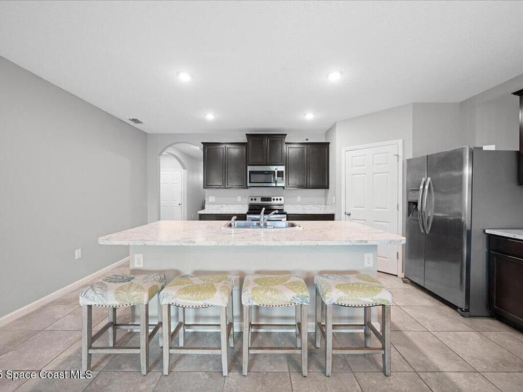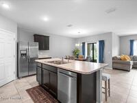 A meticulously maintained 2019 Built 4-bedroom, 2-bathroom residence offers the perfect blend of modern elegance and functional design. Filled with natural light, This spacious living area flows effortlessly into the gourmet kitchen, stainless steel appliances, a large island, and a convenient breakfast bar. A nearby dining nook provides the perfect setting for casual meals while overlooking your water view. Upgraded flooring 2021, A newly added concrete walkway along the side of the entire home and extended concrete back patio 2023, Screened Patio 2022, Smart Home Technology & security cameras. Playground & walking path in community. Conveniently located just minutes from I-95, this home provides easy access to shopping, dining, and top-rated schools, as well as Melbourne's vibrant downtown and pristine beaches.