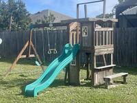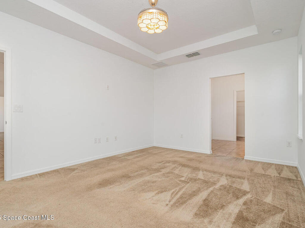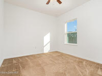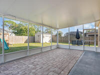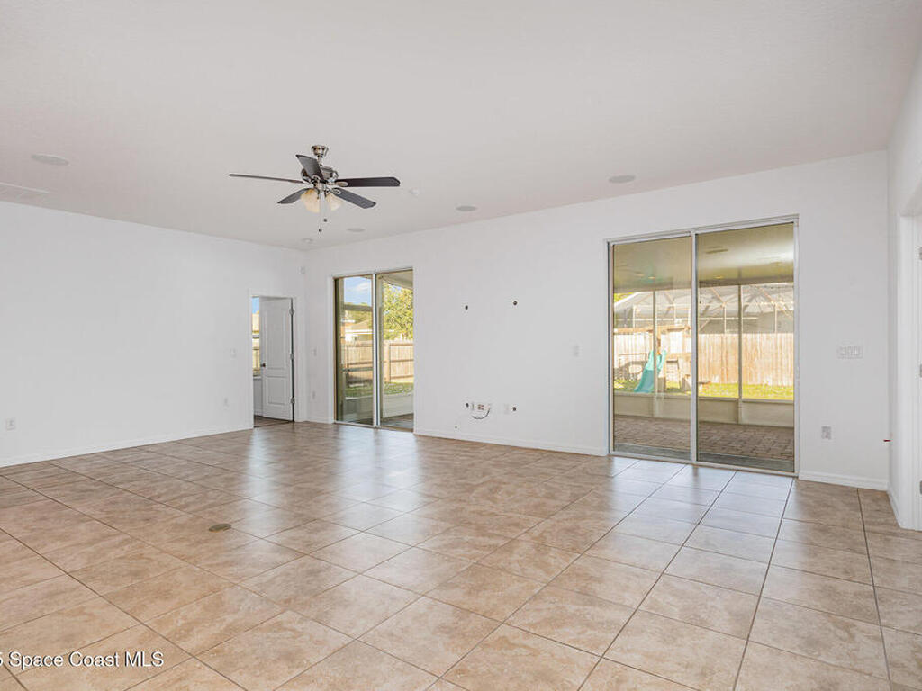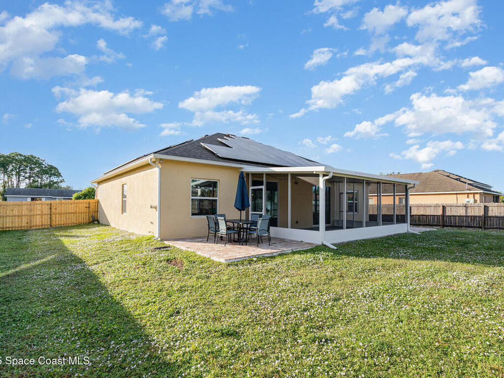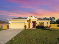Welcome home to this inviting 3-bed, 2-bath home with a versatile flex room perfect for an office or dining space. Built in 2018, this bright open-concept layout features tile in main areas, carpet in bedrooms, an island kitchen with upgraded appliances and pantry shelving, and 9-ft ceilings. Enjoy a screened patio, fully fenced yard with playground, and paid-off solar. The powered shed on concrete footers adds storage and workspace. Fresh paint, hurricane shutters, 2-car garage, and upgraded features. Close to schools, shopping, and I-95 -- ready for family living and entertaining!