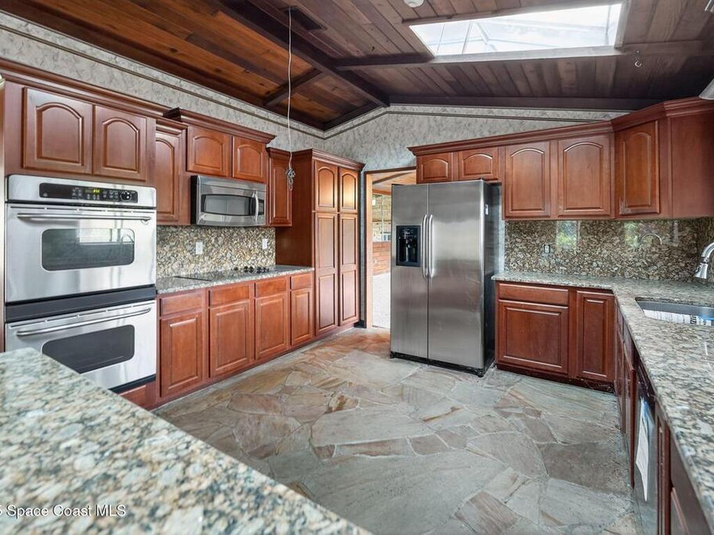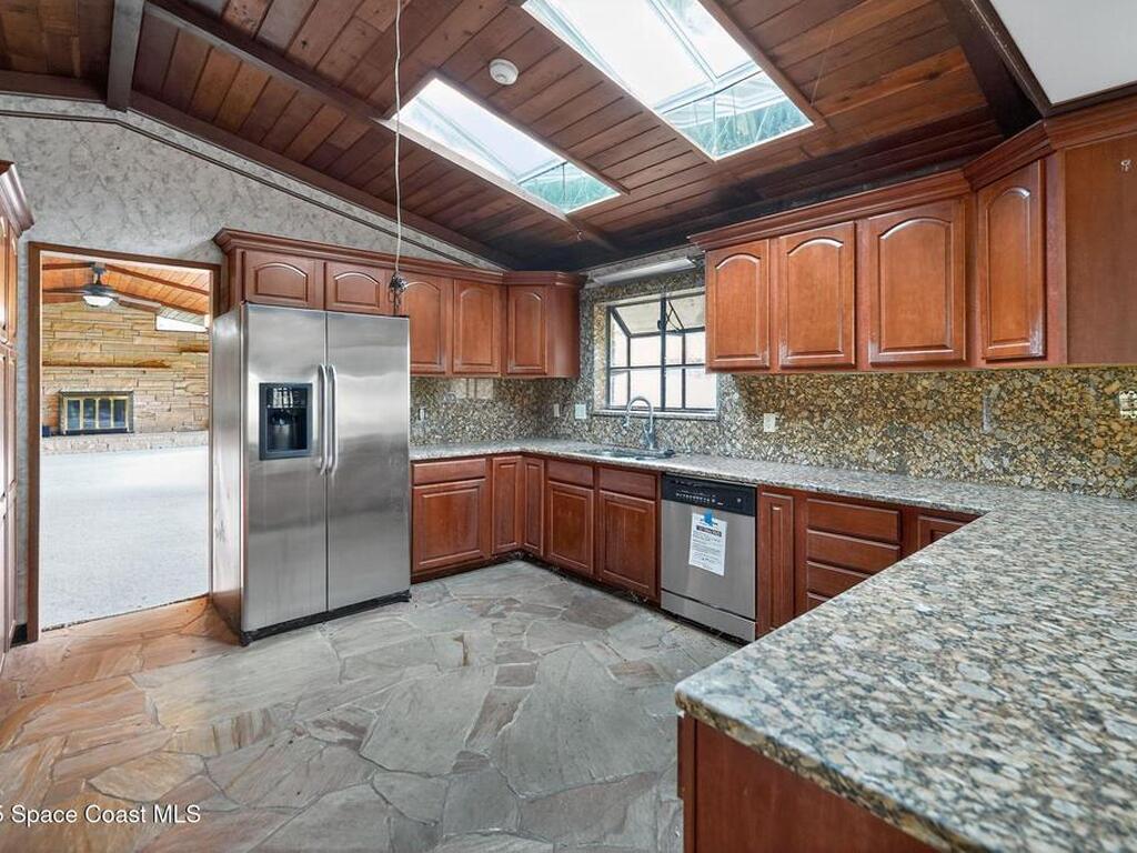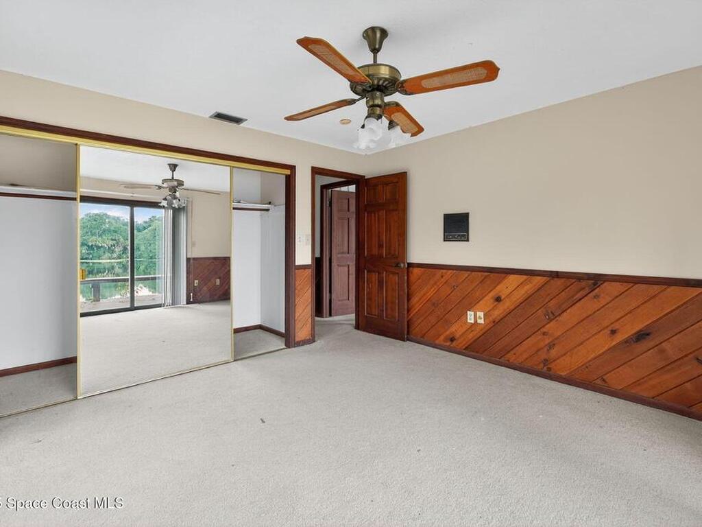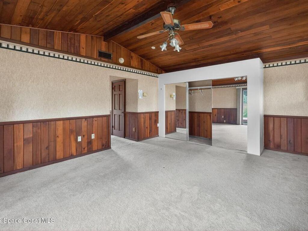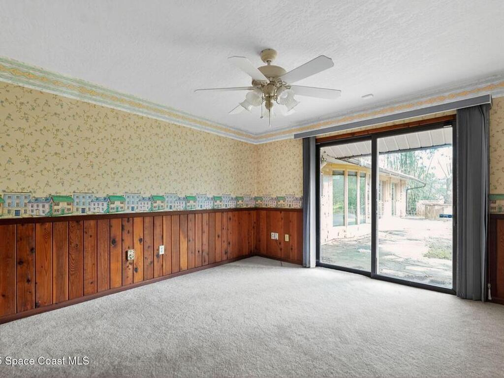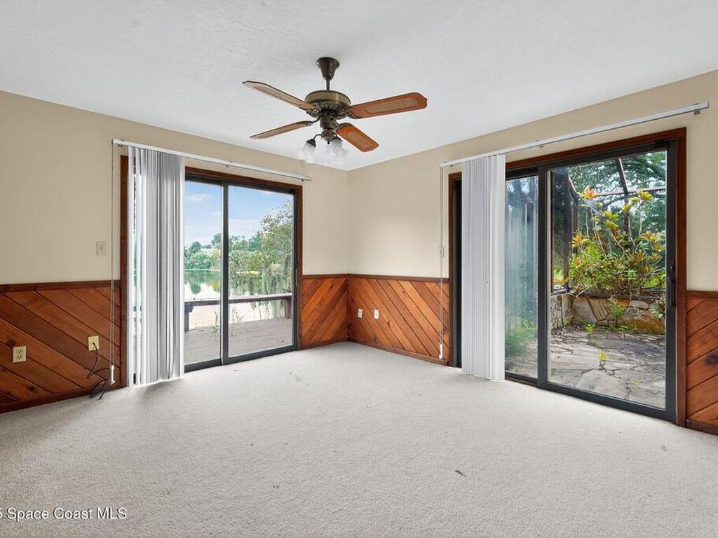 Where architecture meets nature, this rare mid-century modern retreat offers privacy, water views, and timeless design on 1.62 acres at the end of a secluded cul-de-sac. Floor-to-ceiling glass captures panoramic views of a peaceful non-motorized pond surrounded by mature trees, creating a private sanctuary perfect for paddleboarding, wildlife watching, and quiet reflection. The striking architecture features cedar tongue-and-groove ceilings, split-stone fireplaces, and a seamless indoor-outdoor flow. A dramatic family room with soaring ceilings anchors the home, while the private primary suite opens to nature with its own outdoor hot tub. Multiple decks and a screened atrium connect every space to the surrounding landscape. Located near downtown Titusville, waterfront dining, rocket launches, and nature preserves, this is more than a home--it is a lifestyle defined by serenity, design, and connection to nature.