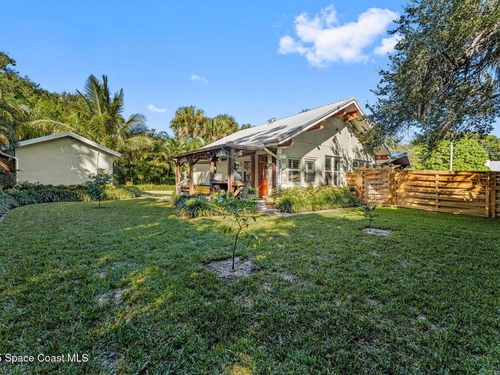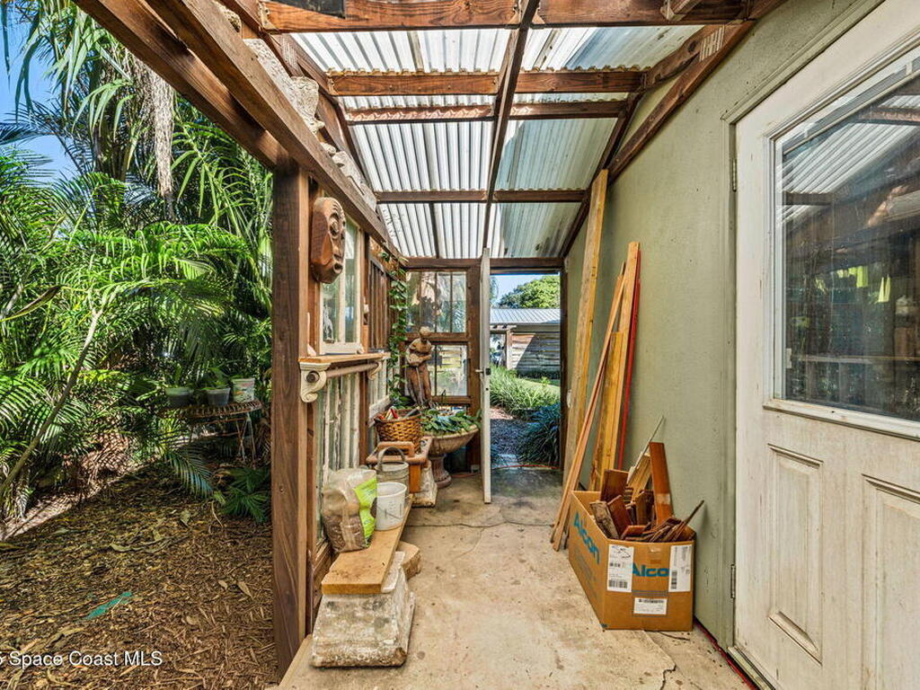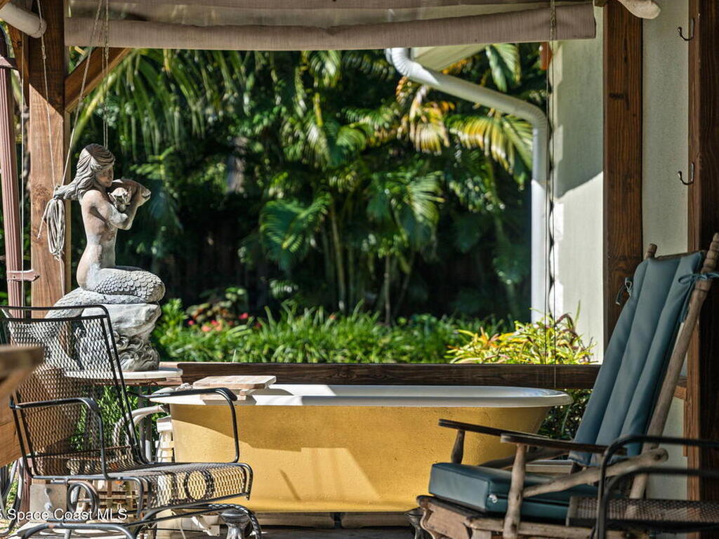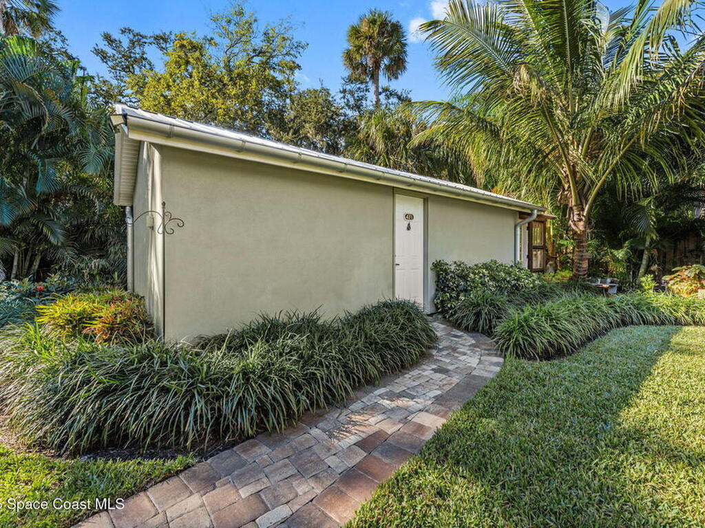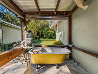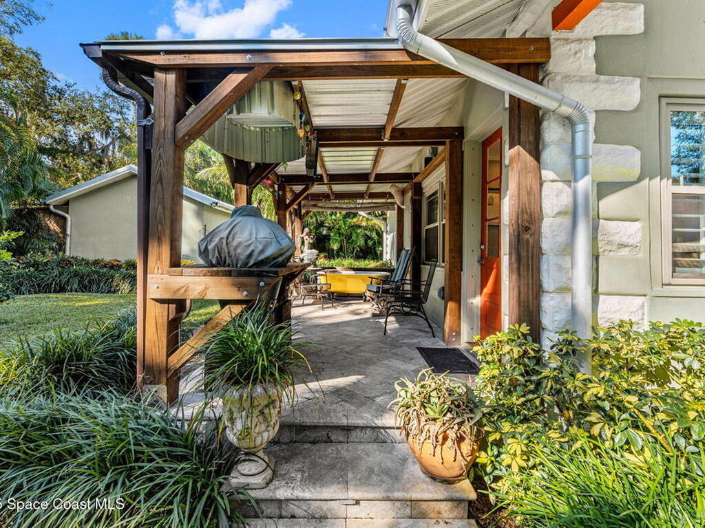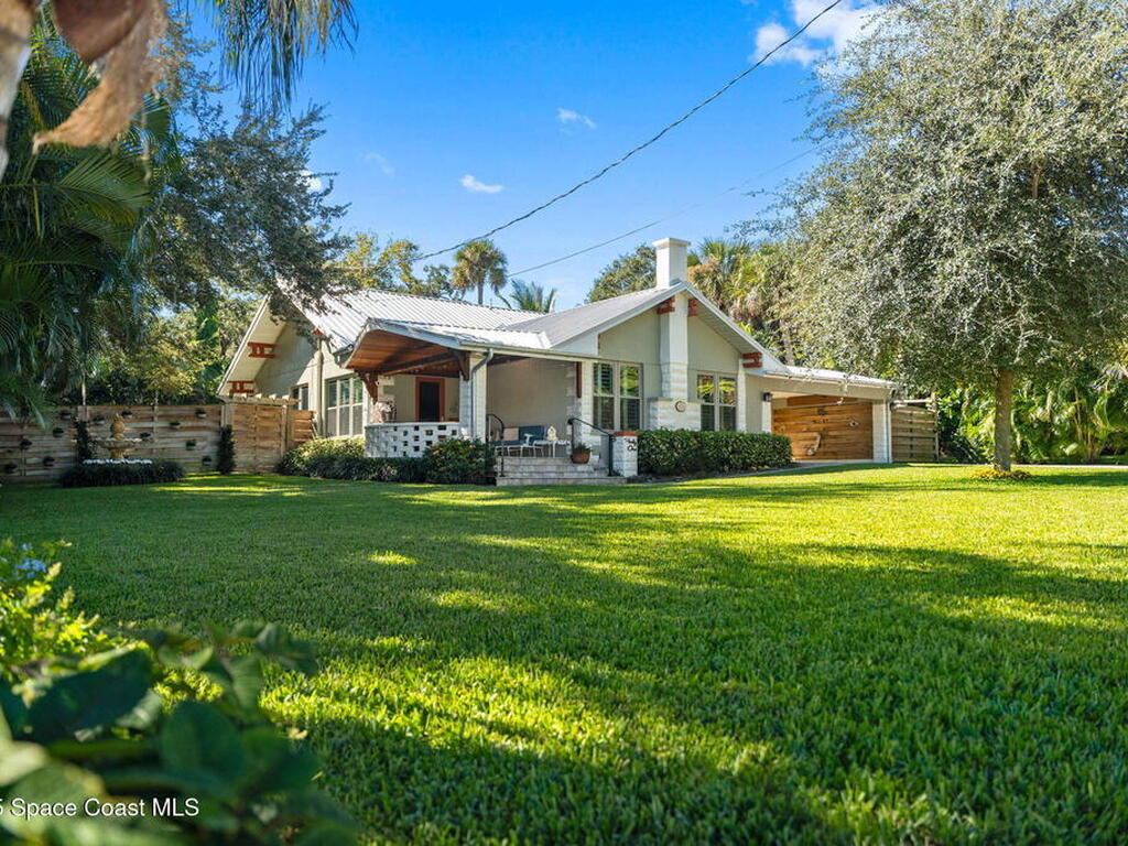 One of Cocoa Village's most distinctive homes, the ''Cement Bungalow'' was lovingly restored and reimagined with no detail overlooked. This complete frame-out renovation features all-new hurricane windows, electrical, plumbing, and insulation blending the character and nostalgia of a historic cottage with the comfort, efficiency, and peace of mind of modern construction. Every space showcases thoughtful craftsmanship and elegant design, from the expansive primary suite and inviting living areas to the gourmet kitchen and guest suite with private bath. The spacious double lot has meticulously maintained landscaping and includes a detached cottage with workshop, storage, greenhouse and an attached carport and spacious paver driveway. Enjoy the welcoming charm of the front porch or unwind on the private back porch complete with an outdoor soaking tub overlooking the garden. This home is just steps from Historic Cocoa Village, shopping, dining and the Indian River