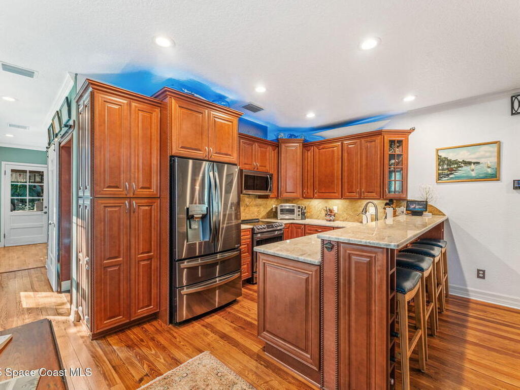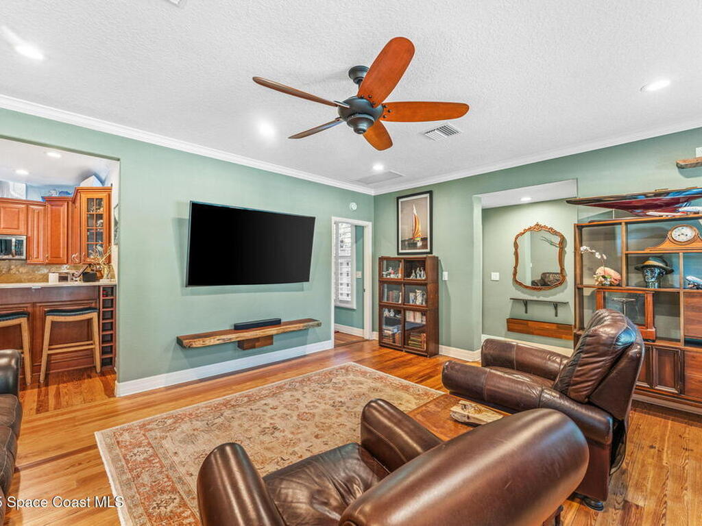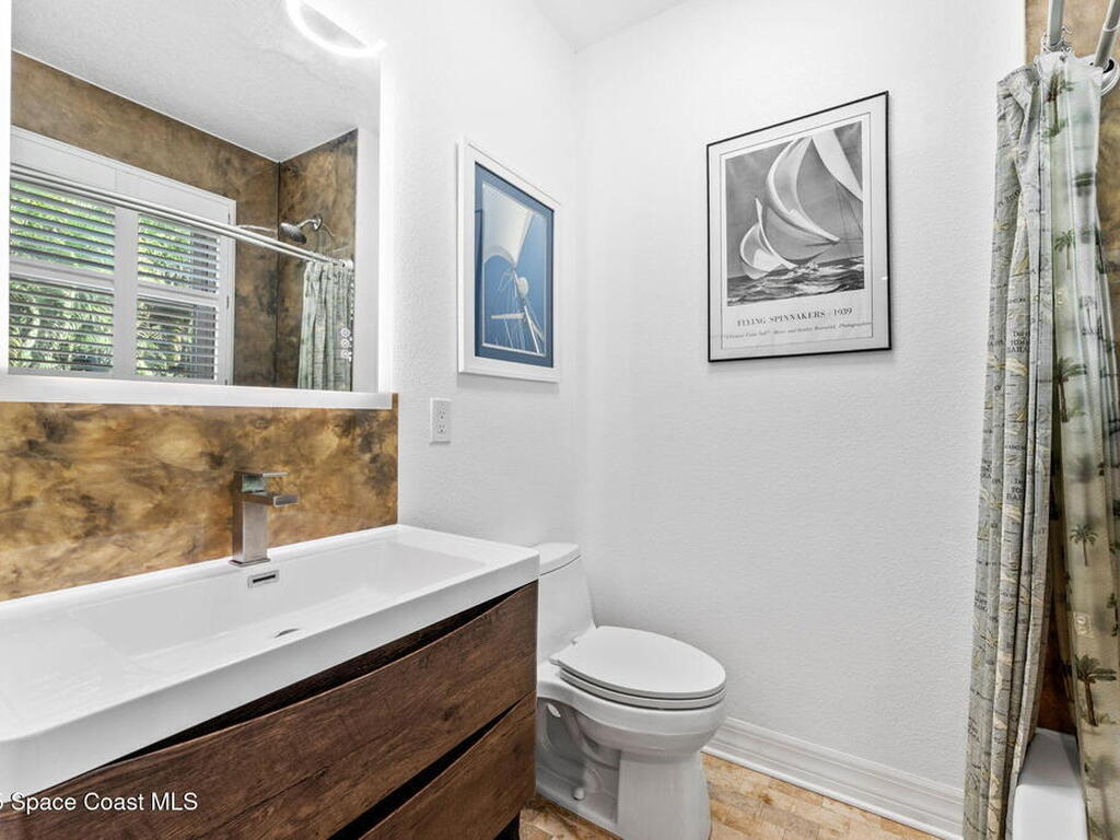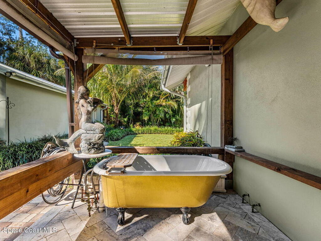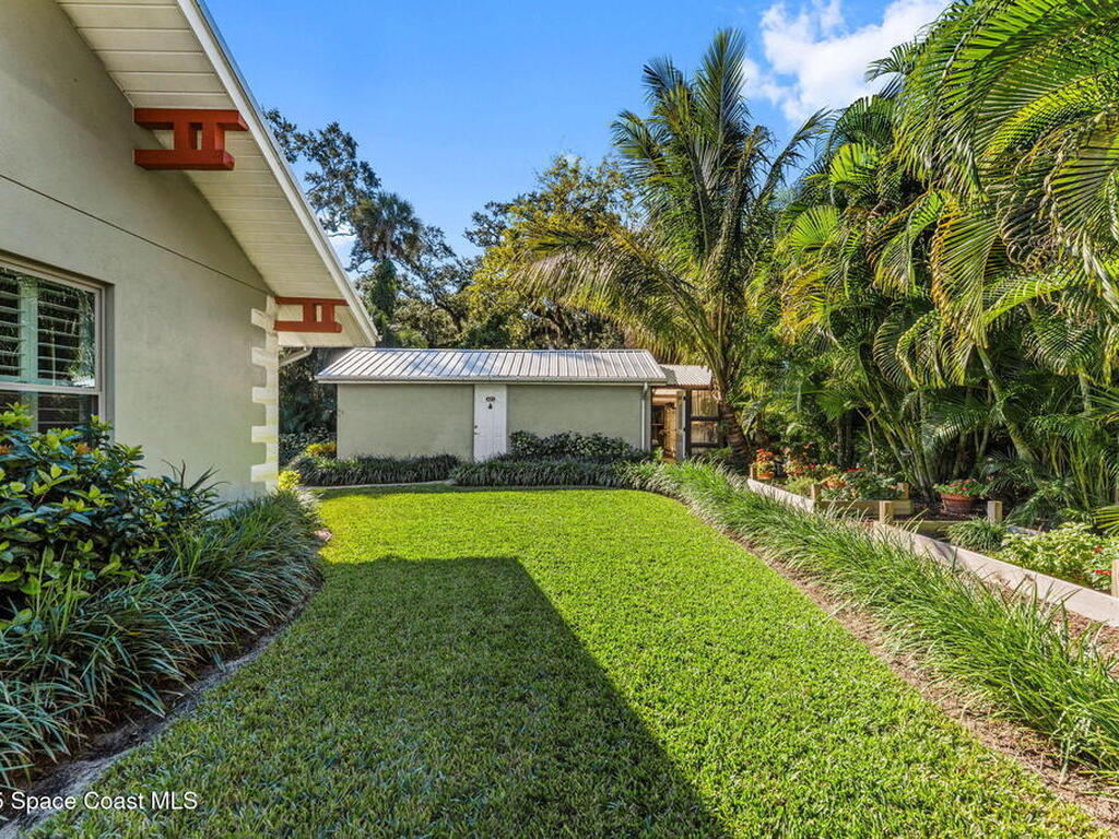 One of Cocoa Village's most distinctive homes, the ''Cement Bungalow'' was lovingly restored and reimagined with no detail overlooked. This complete frame-out renovation features all-new hurricane windows, electrical, plumbing, and insulation blending the character and nostalgia of a historic cottage with the comfort, efficiency, and peace of mind of modern construction. Every space showcases thoughtful craftsmanship and elegant design, from the expansive primary suite and inviting living areas to the gourmet kitchen and guest suite with private bath. The spacious double lot has meticulously maintained landscaping and includes a detached cottage with workshop, storage, greenhouse and an attached carport and spacious paver driveway. Enjoy the welcoming charm of the front porch or unwind on the private back porch complete with an outdoor soaking tub overlooking the garden. This home is just steps from Historic Cocoa Village, shopping, dining and the Indian River