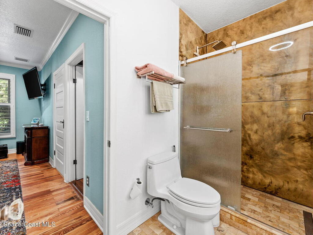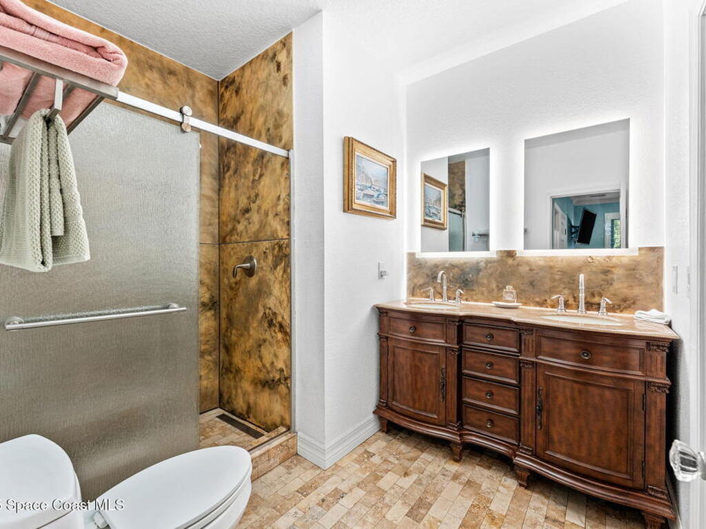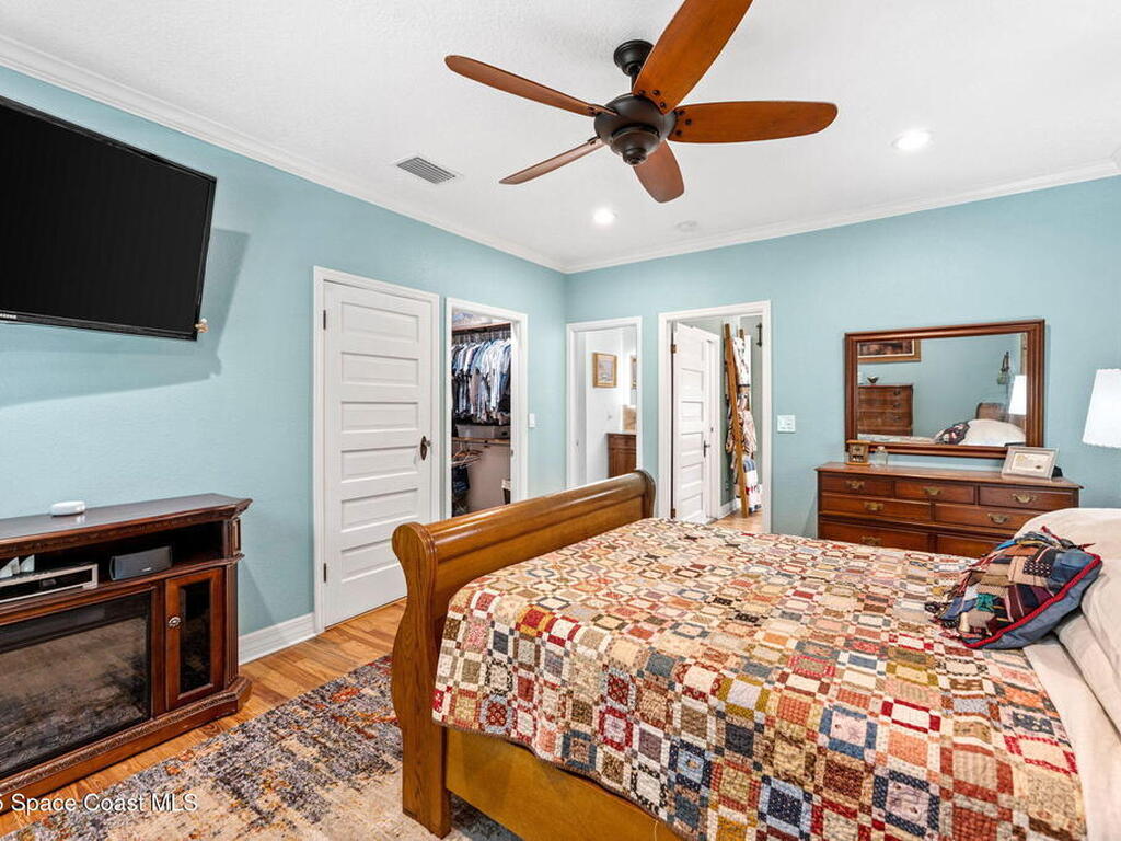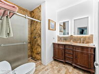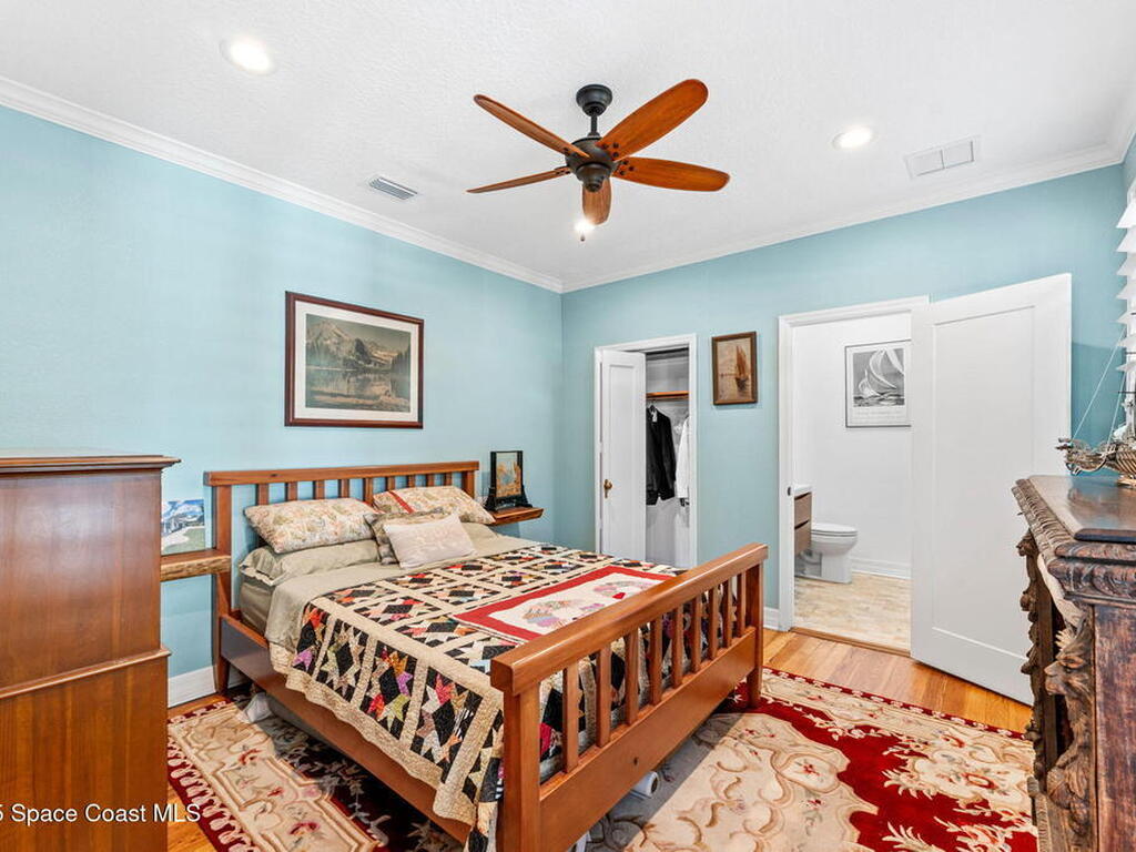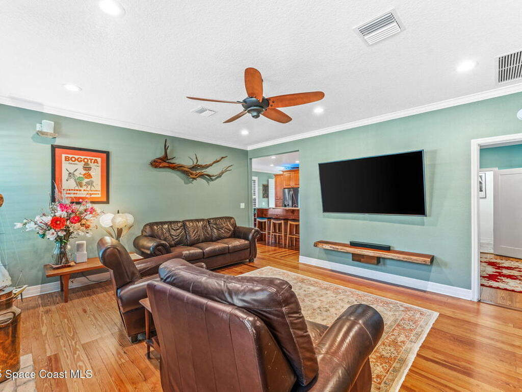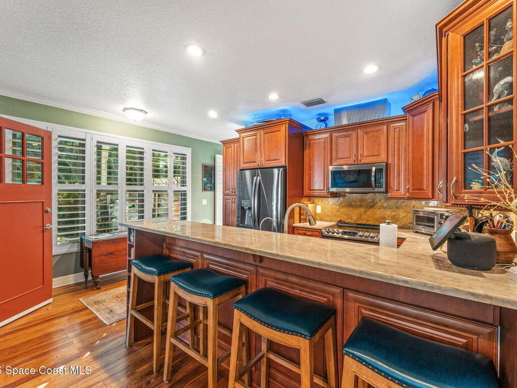 One of Cocoa Village's most distinctive homes, the ''Cement Bungalow'' was lovingly restored and reimagined with no detail overlooked. This complete frame-out renovation features all-new hurricane windows, electrical, plumbing, and insulation blending the character and nostalgia of a historic cottage with the comfort, efficiency, and peace of mind of modern construction. Every space showcases thoughtful craftsmanship and elegant design, from the expansive primary suite and inviting living areas to the gourmet kitchen and guest suite with private bath. The spacious double lot has meticulously maintained landscaping and includes a detached cottage with workshop, storage, greenhouse and an attached carport and spacious paver driveway. Enjoy the welcoming charm of the front porch or unwind on the private back porch complete with an outdoor soaking tub overlooking the garden. This home is just steps from Historic Cocoa Village, shopping, dining and the Indian River