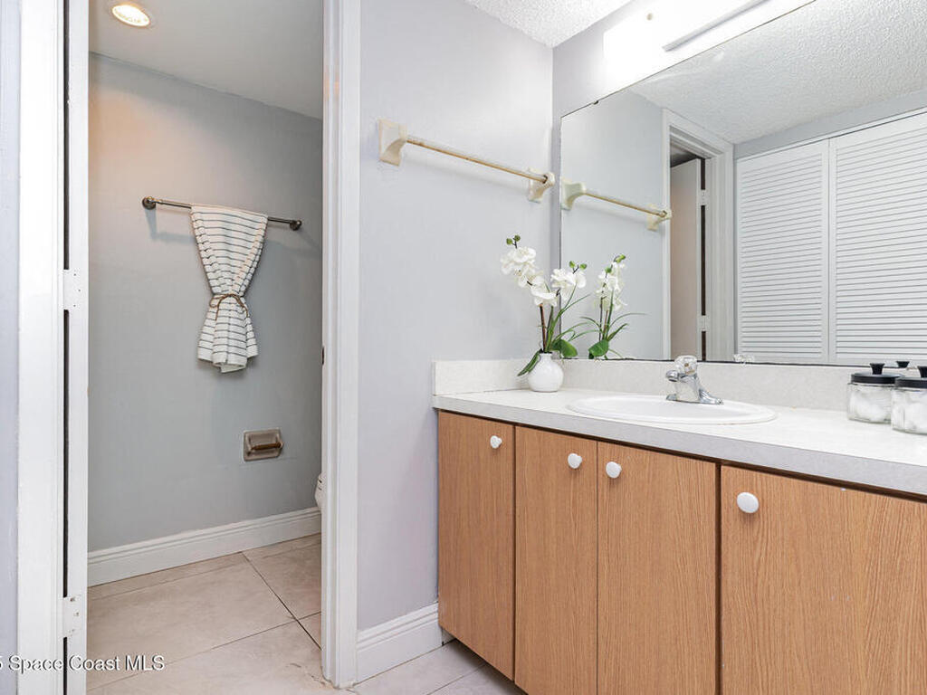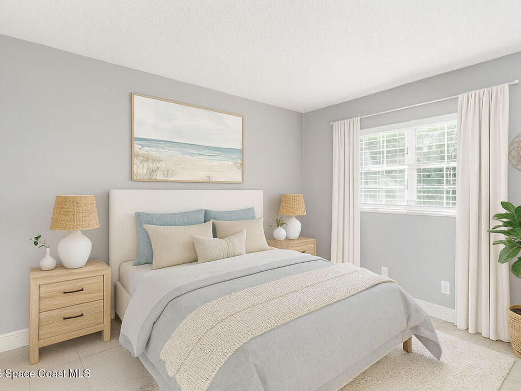 Located in the peaceful community of Country Gardens, this 2BD/2BA ground-floor condo offers a split floor plan & stylish tile flooring throughout--no carpet! The updated kitchen features crisp white cabinetry, white appliances & granite countertops. Enjoy an updated guest bathroom, as well as an updated tile walk-in shower in the primary bathroom. Two sets of sliding doors lead to a screened-in porch, while in-unit laundry adds convenience. The community offers a tranquil setting with mature landscaping & a refreshing pool. Low HOA of $312/month includes cable, internet, water, sewer, trash, pest control, exterior maintenance, insurance & roof replacement. 6-month rental minimum, 1 pet up to 15lbs allowed. Just minutes to shopping, dining, FIT, L3 Harris & the Space Coast's beautiful beaches! Schedule your showing today!