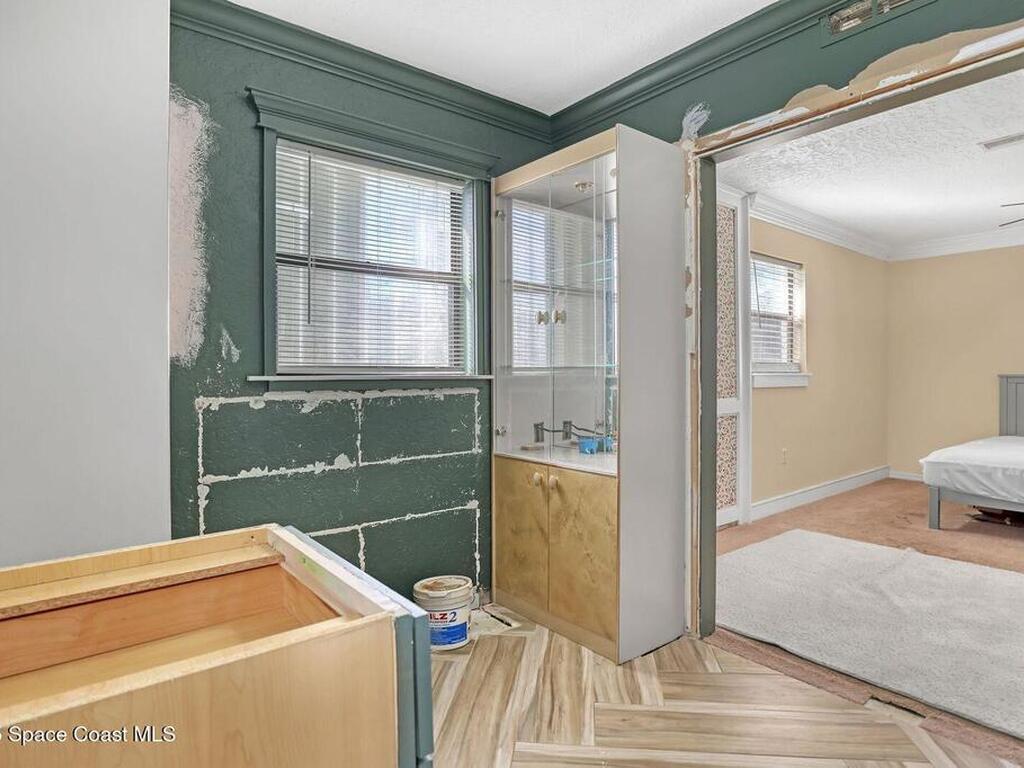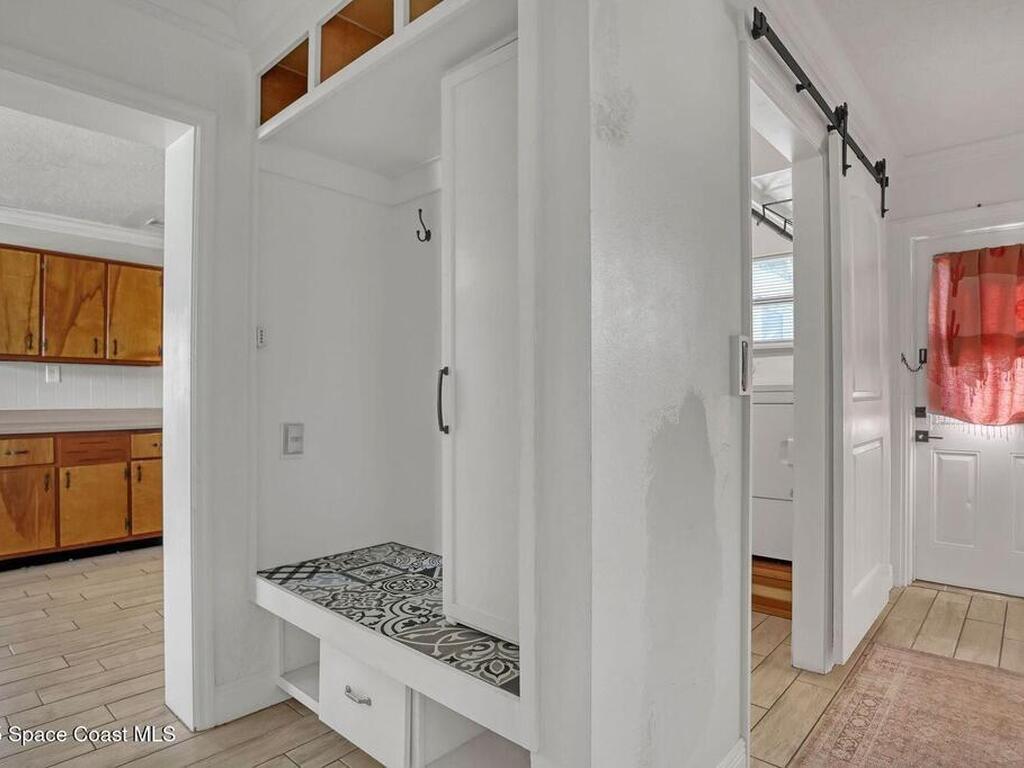 Adorable, concrete block home in the heart of Merritt Island! This charming 3 bedroom/ 2 bath/ 1 car garage home is full of character with some really cool projects started ready for your finishing touch! Amazing opportunity to live on Merritt Island for 1st time home buyers, a vacation home or an investment purchase! This budget pleaser has an outside storage shed, inside laundry & a spacious eat-in kitchen. The living/dining/kitchen are open and bright and the primary bedroom has a large walkin closet! Peace of mind with new electrical panel & surge protector, 2018 roof & gutters, 2017 hvac & new air ducts, double pane windows, hurricane shutters, hurricane rated garage door, rain soft water system, sprinkler system, and located on a dead-end quiet street! Only minutes to boating ramps, fishing, great schools and many restaurants & shopping malls. Cocoa beach is only a 5 min. drive, 10 min. to Port Canaveral, 25 min. to KSC and less than an hour to Orlando Airport and Theme Parks