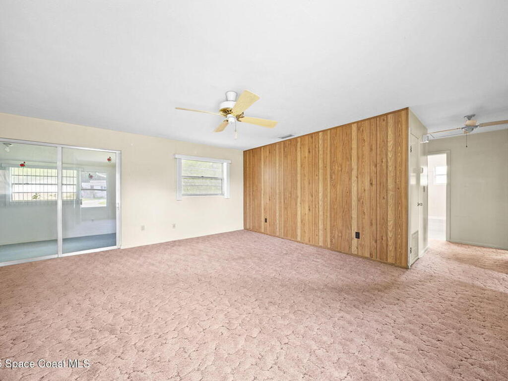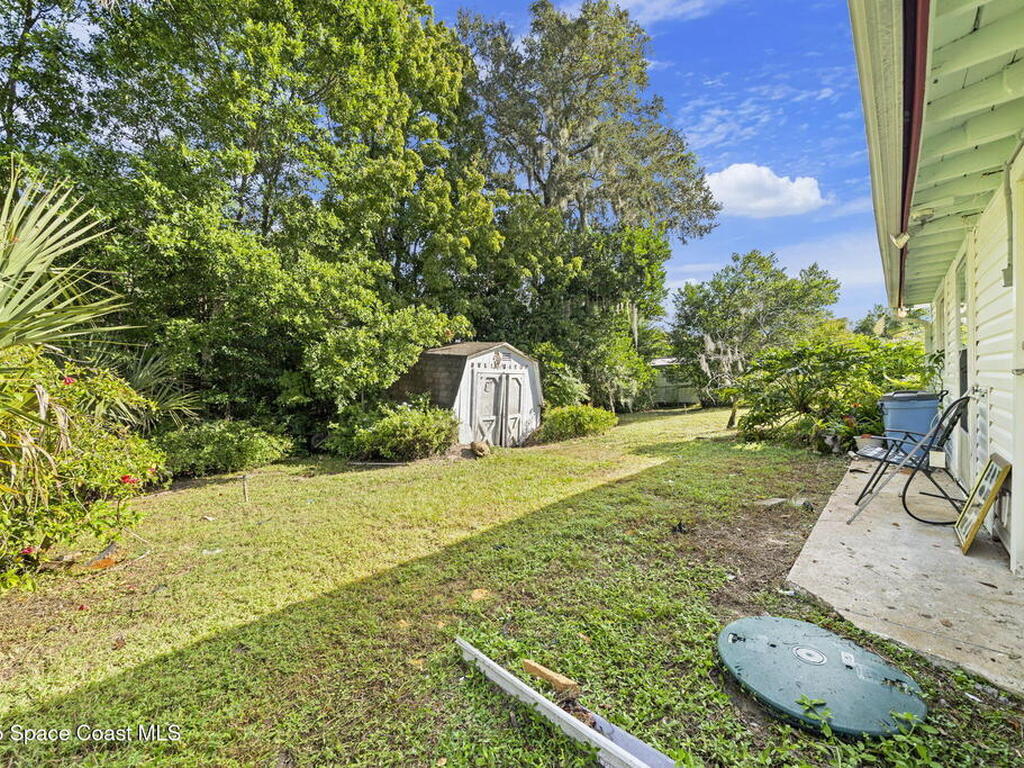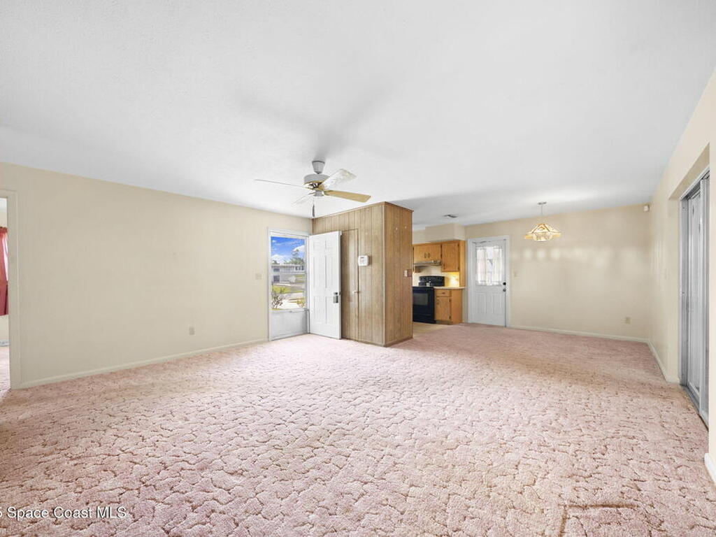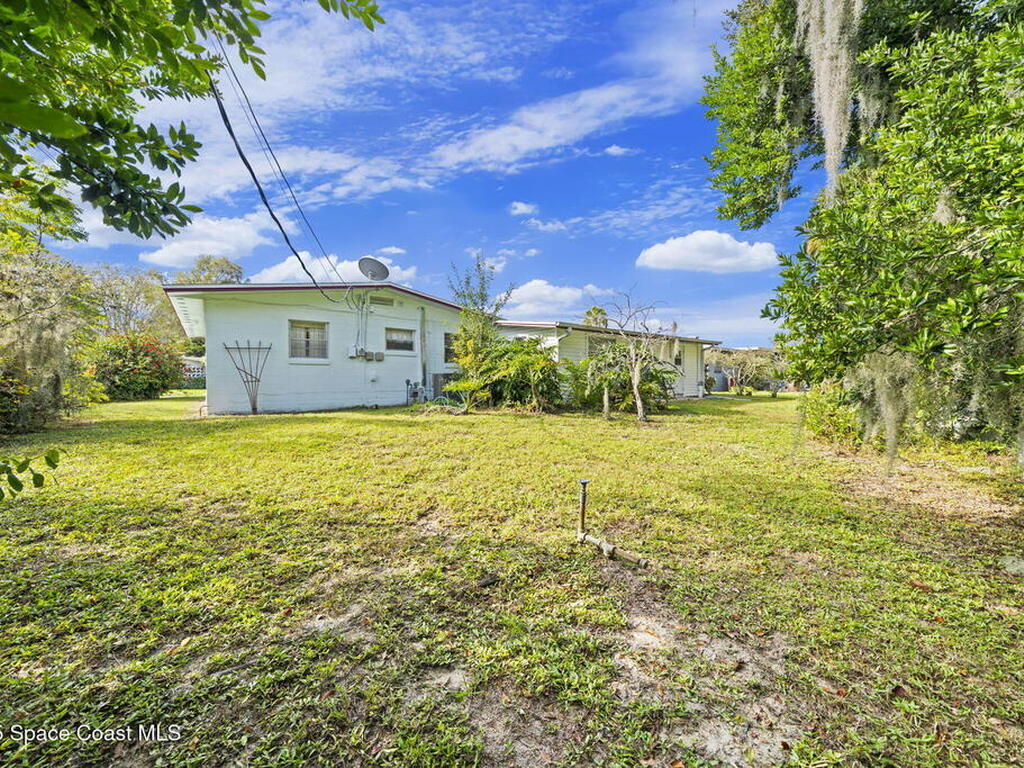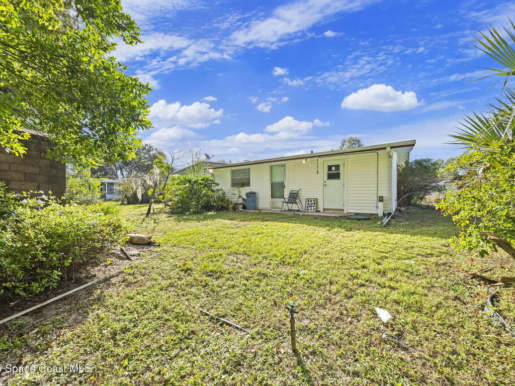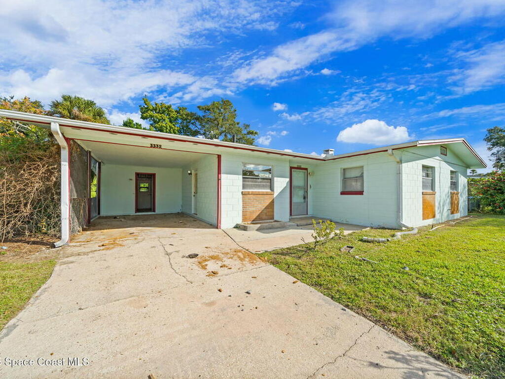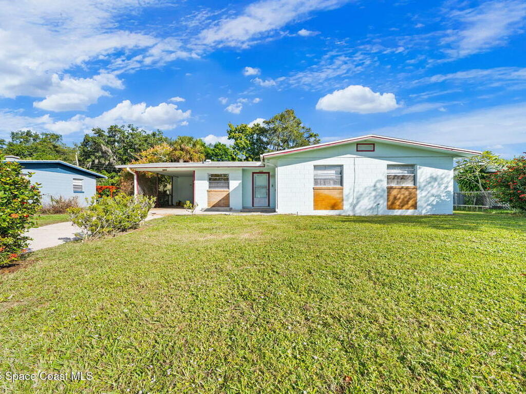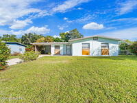 This property features a three-bedroom, two-bathroom layout with durable block construction a shingle roof & new 2025 AC. The residence also includes an extra living room and carport with a laundry room & locked storage space. Its convenient location offers easy access to shopping, dining, and a straightforward commute to Kennedy Space Center, nearby beaches, and I-95.