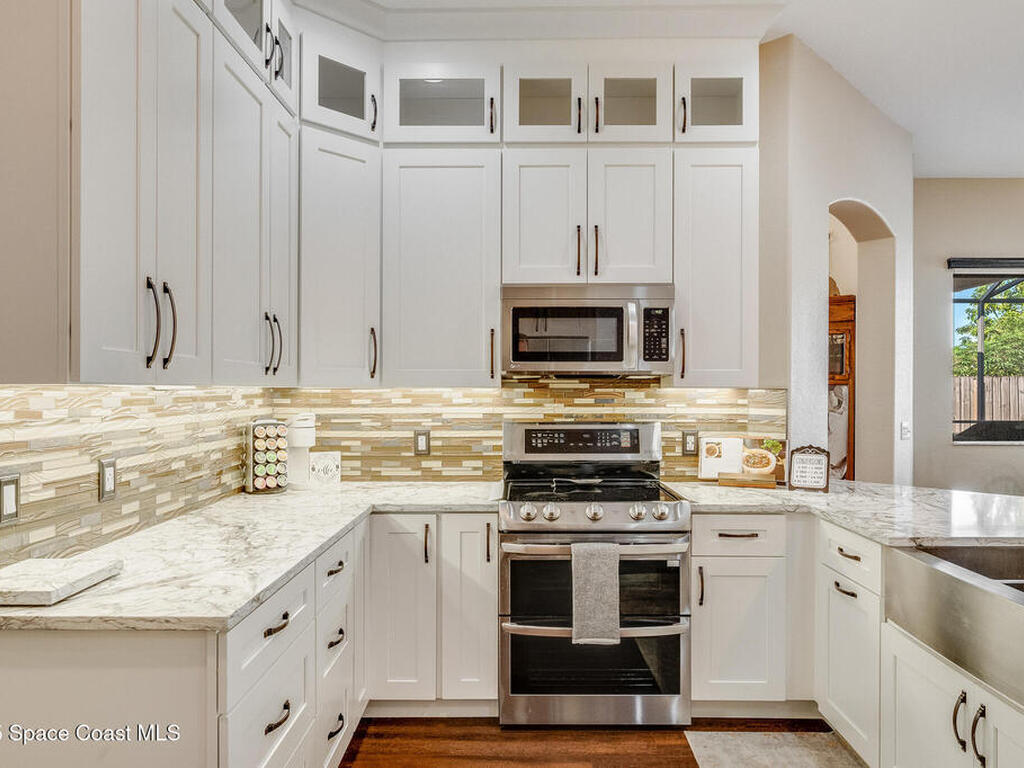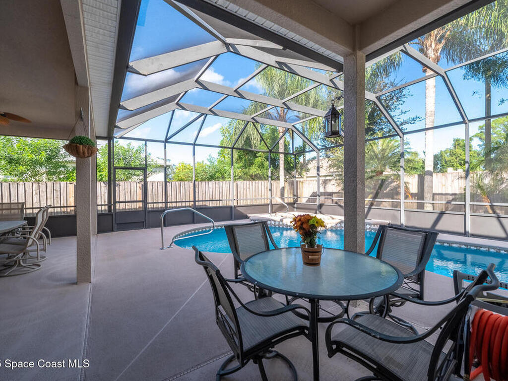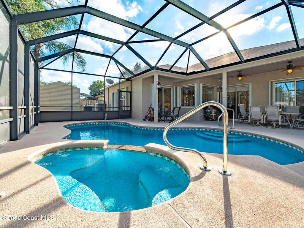 Built by LIFESTYLE Homes, this beautiful ABACO model offers the perfect blend of comfort, convenience, and style. Designed for gatherings, the remodeled kitchen seamlessly opens to the family and dining rooms, creating an inviting space for everyday living and entertaining. With four bedrooms plus a den/office and three full baths, there's room for everyone to spread out. The formal living room, master suite, and family room each open to the screened, trussed porch where you can relax beside the heated pool and spa. The master bath features a separate tub and shower, dual vanities, and his-and-her closets. The fenced backyard is ideal for pets and includes a 10x16 storage shed, while the oversized three-car garage provides ample space for vehicles and hobbies. Additional highlights include city water and sewer, hurricane shutters, newer HVAC, water heater, and pool heater, plus fresh interior and exterior paint. Garage screen is retractable slide horizontally for greater garage