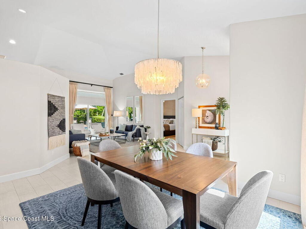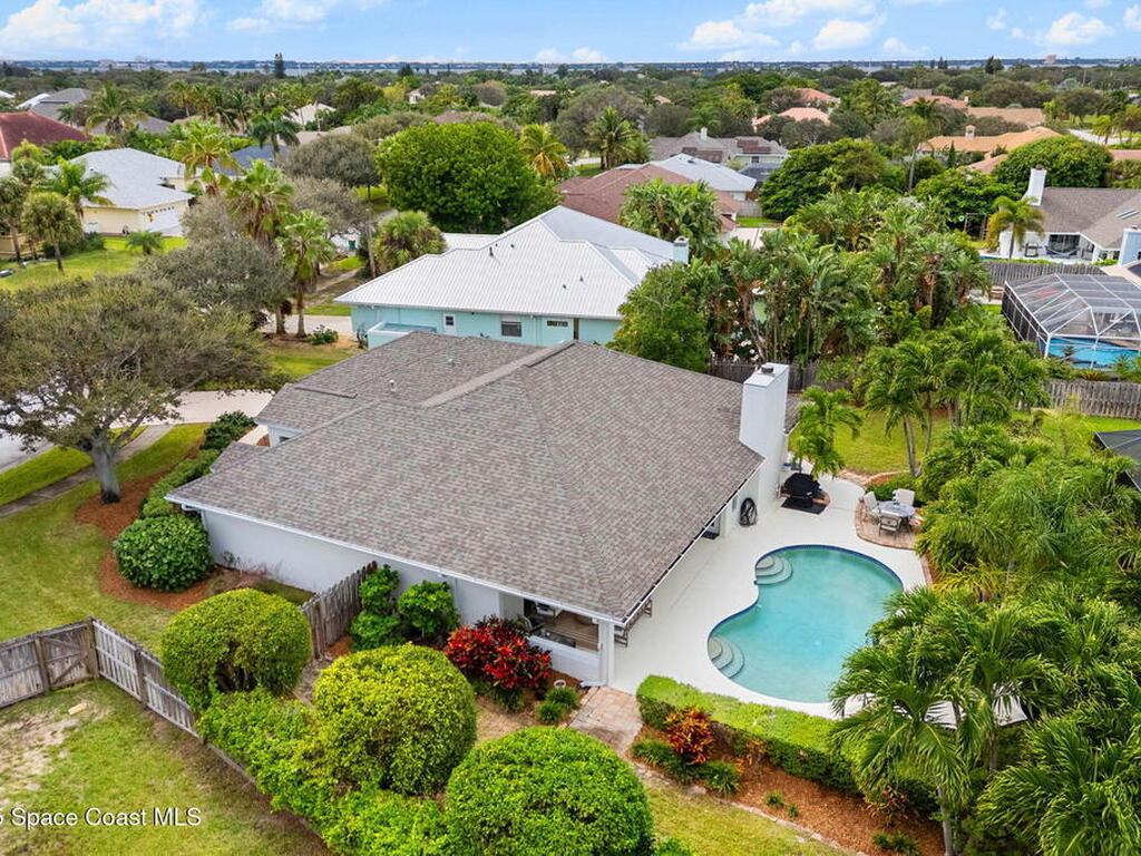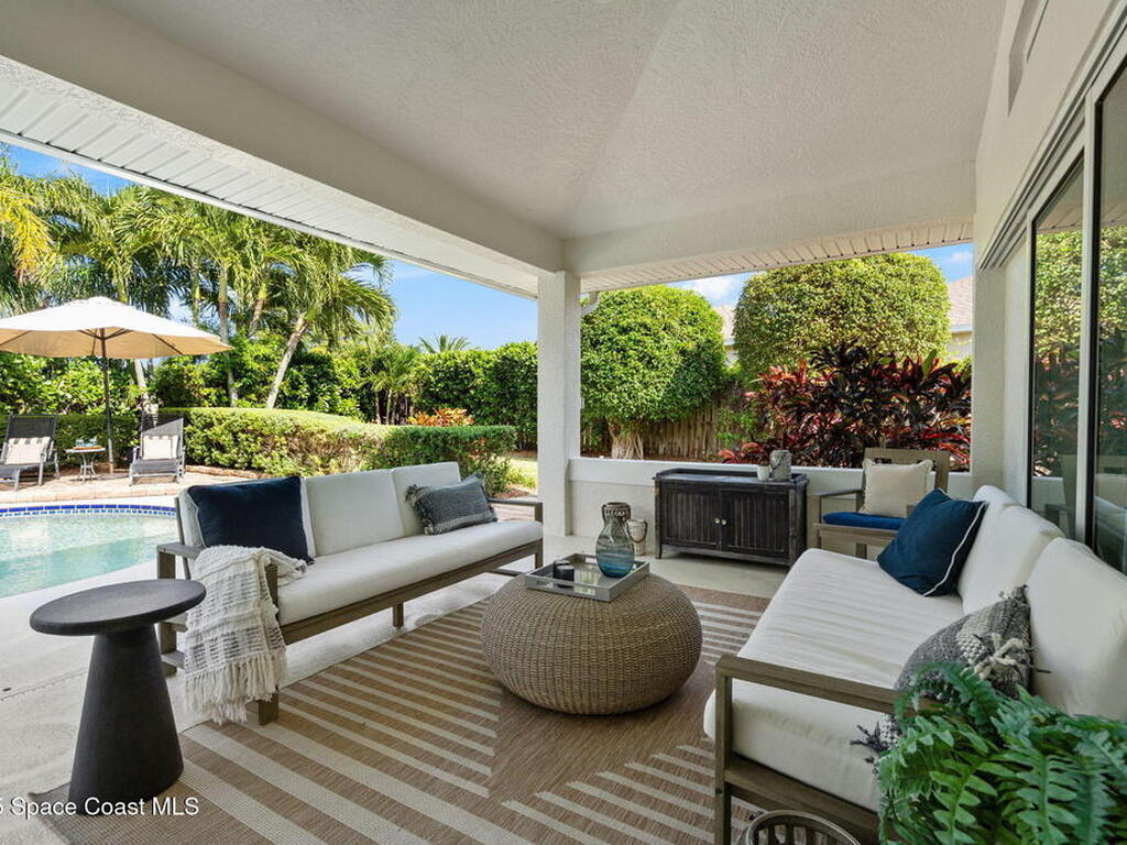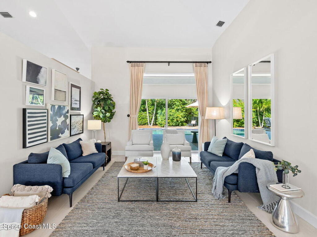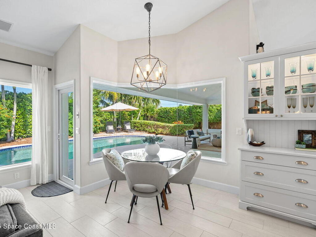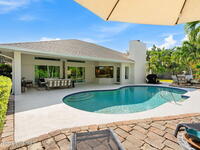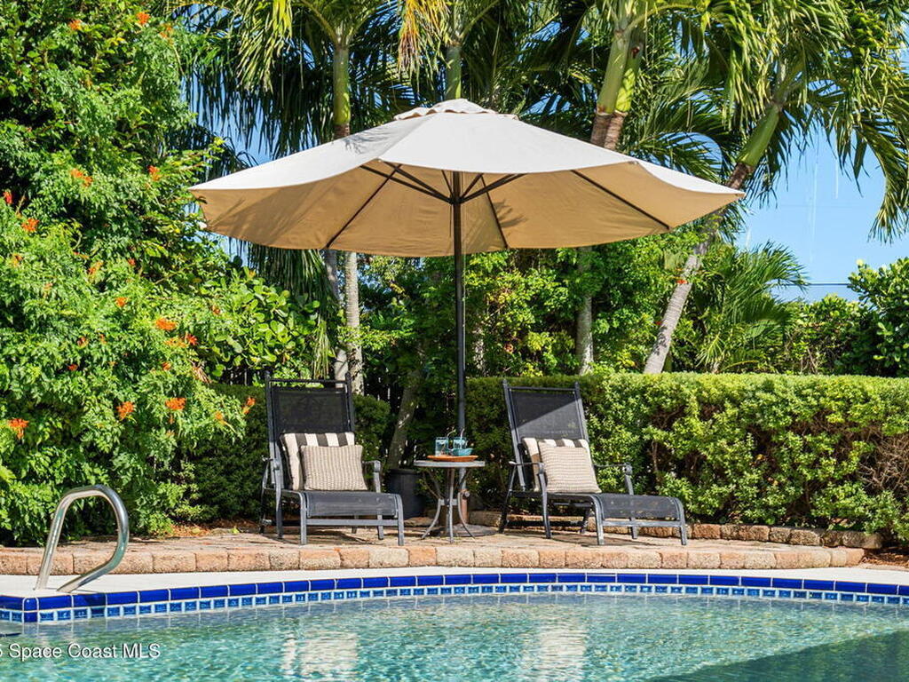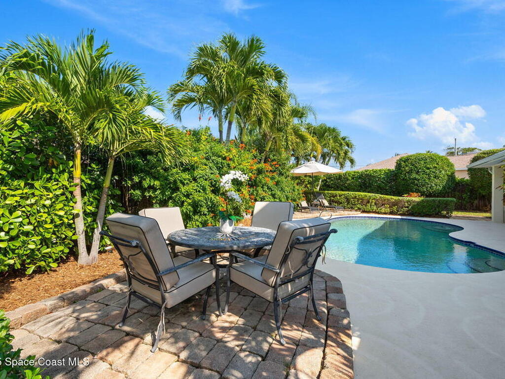 Discover this exquisite one-owner home nestled on a rare, oversized lot in a quiet cul-de-sac. Impeccably maintained and tastefully renovated with vaulted ceilings and tons of natural light residence offers the perfect blend of modern comfort and peace of mind. Step into the welcoming foyer, flanked by a spacious formal dining room and elegant living room. The open-concept kitchen flows seamlessly into a bright breakfast nook and inviting family room, creating the perfect setting for everyday living and entertaining.Enjoy the split floor plan featuring a luxurious primary suite with a spa-inspired bath. Step outside to your oversized, trussed porch overlooking a heated pool, ideal for year-round relaxation and outdoor gatherings. Additional highlights include New Roof (2023) Fresh Exterior Paint (2025) Impact Windows & DoorsA/C Mini Split in Oversized GarageJust a short bike ride or walk to the beach and river, this home truly offers the best of coastal living.