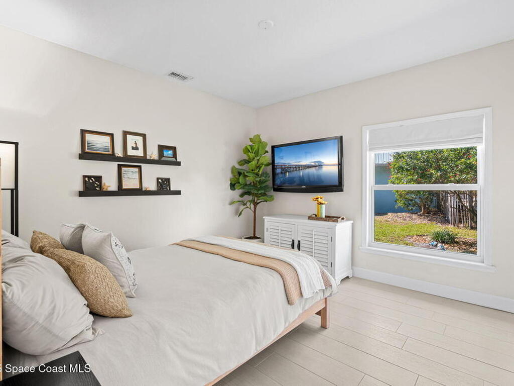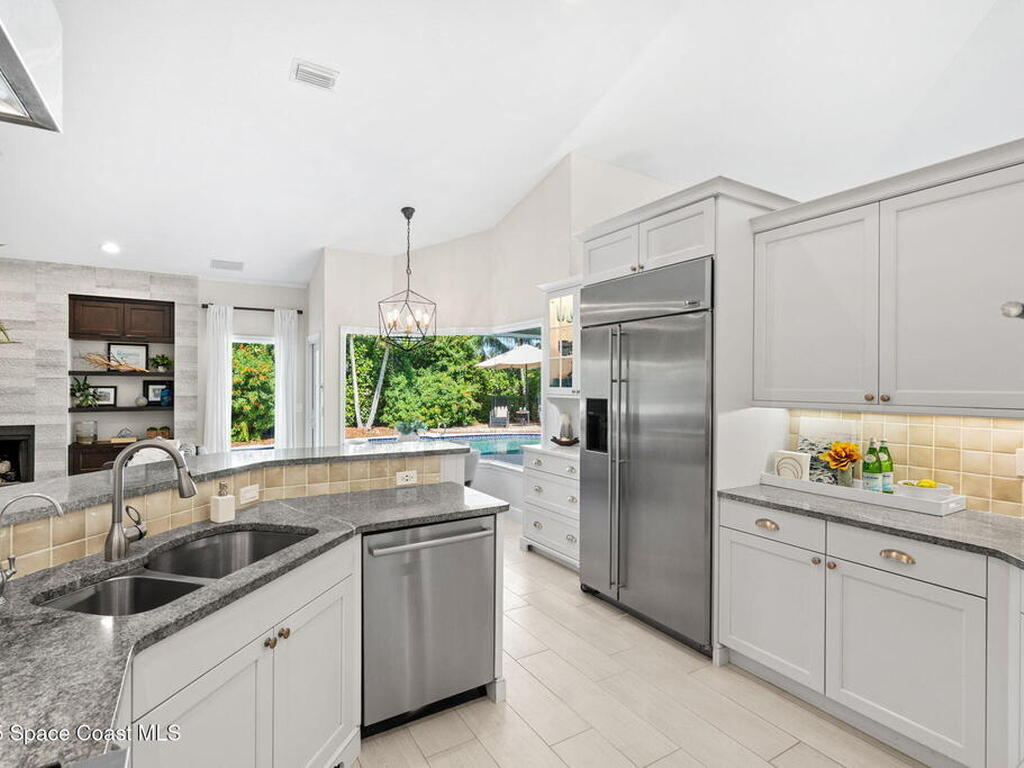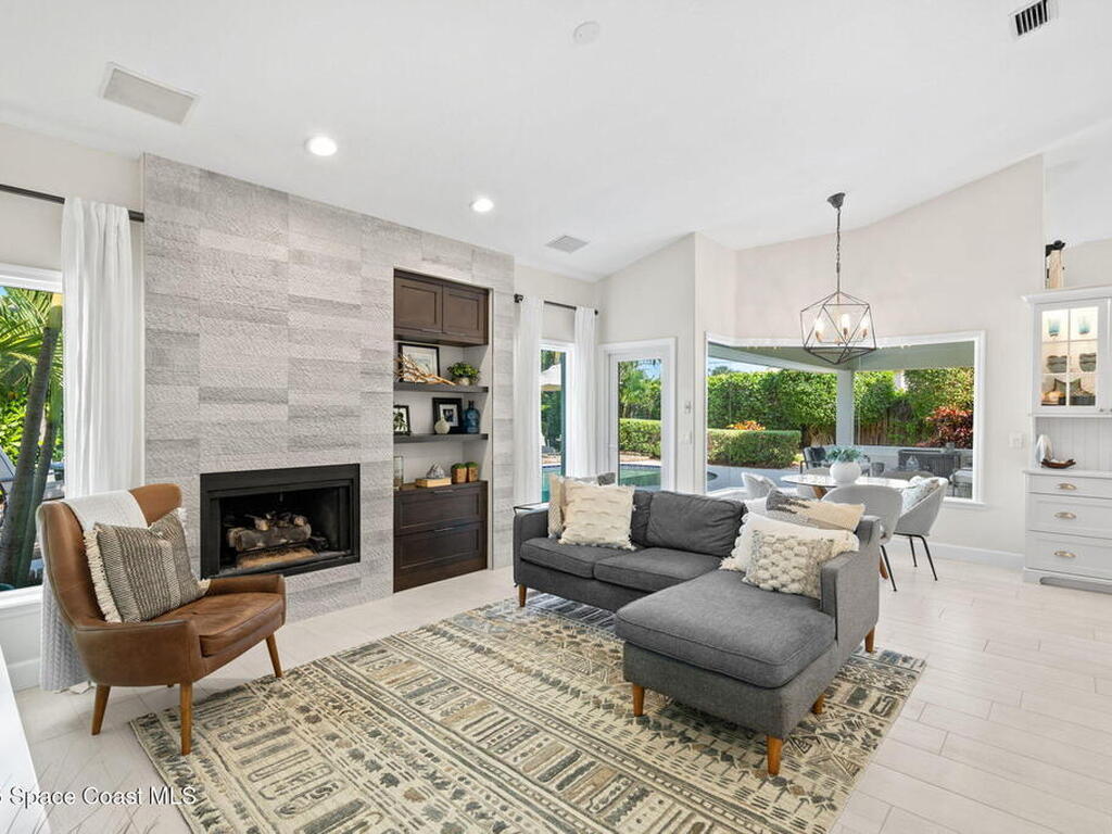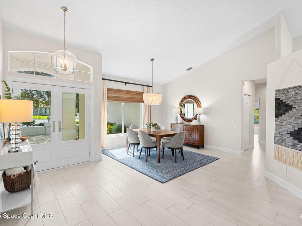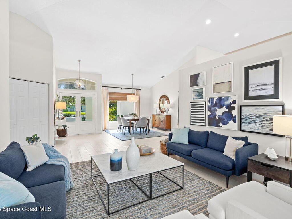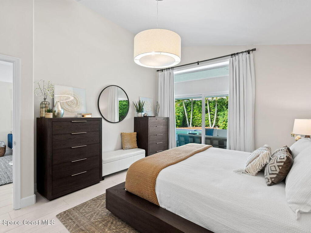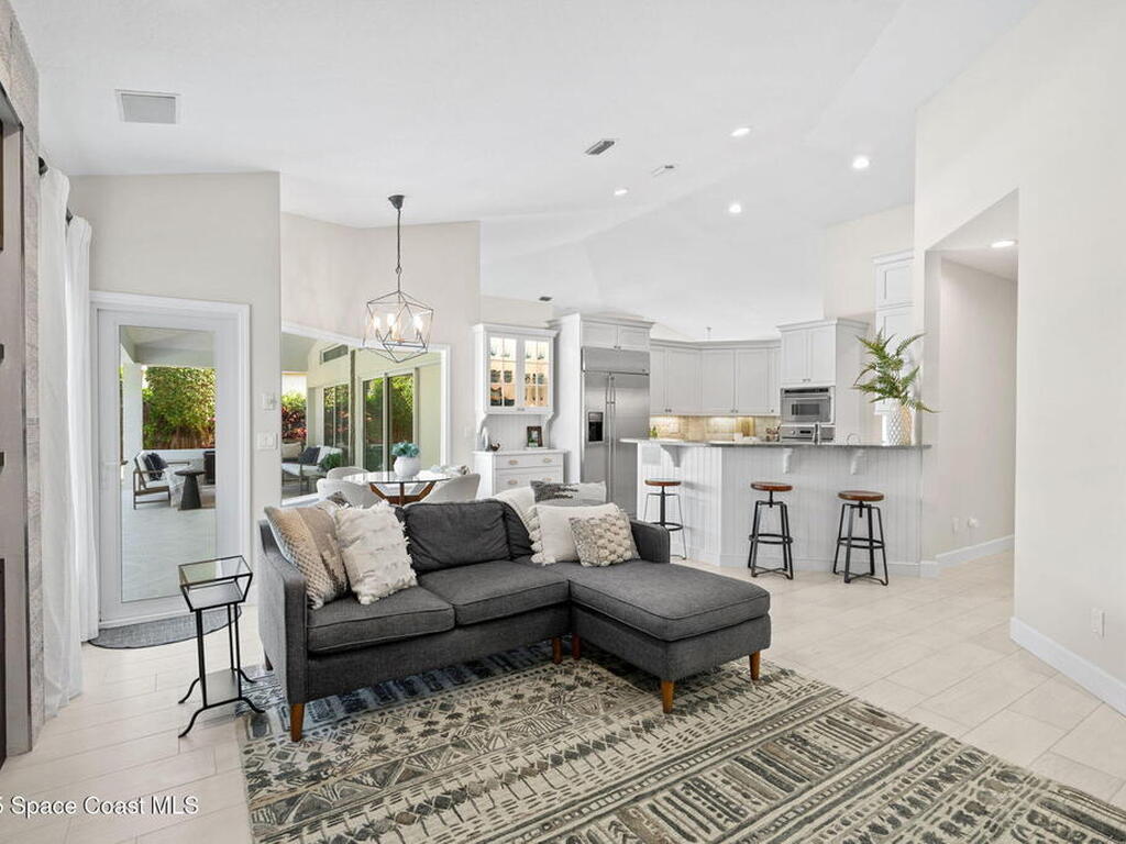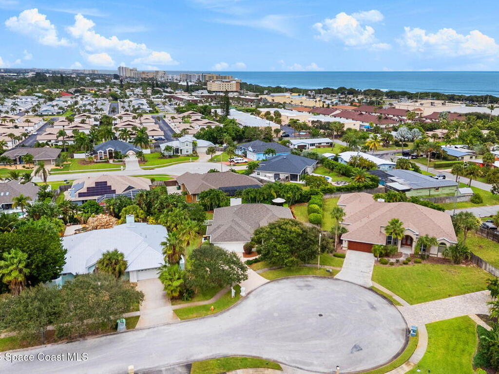 Discover this exquisite one-owner home nestled on a rare, oversized lot in a quiet cul-de-sac. Impeccably maintained and tastefully renovated with vaulted ceilings and tons of natural light residence offers the perfect blend of modern comfort and peace of mind. Step into the welcoming foyer, flanked by a spacious formal dining room and elegant living room. The open-concept kitchen flows seamlessly into a bright breakfast nook and inviting family room, creating the perfect setting for everyday living and entertaining.Enjoy the split floor plan featuring a luxurious primary suite with a spa-inspired bath. Step outside to your oversized, trussed porch overlooking a heated pool, ideal for year-round relaxation and outdoor gatherings. Additional highlights include New Roof (2023) Fresh Exterior Paint (2025) Impact Windows & DoorsA/C Mini Split in Oversized GarageJust a short bike ride or walk to the beach and river, this home truly offers the best of coastal living.