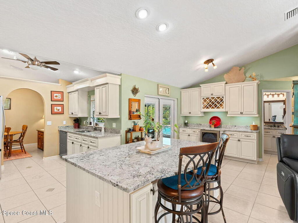 Set on a high, dry 0.85-acre lot, this 4-bedroom, 2-bathroom concrete block home offers solid construction and a long list of quality updates. The roof was replaced in 2020, the AC in 2017, and the impact-rated windows were installed in 2022, including a new impact garage door added in 2024. The pool, spa, back pavers, and covered porch were all added in 2017 and feature both electric and gas heating powered by a leased above-ground propane tank.Inside, the home offers an open split floor plan with high ceilings, an updated kitchen with new appliances, a wine fridge, and a built-in coffee bar. The outdoor space is fully fenced with new pavers surrounding the pool, creating a great setting for relaxing or entertaining. Additional features include a two-car garage and a well system for water.