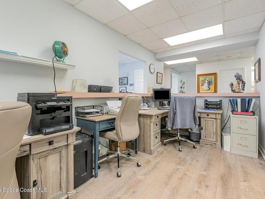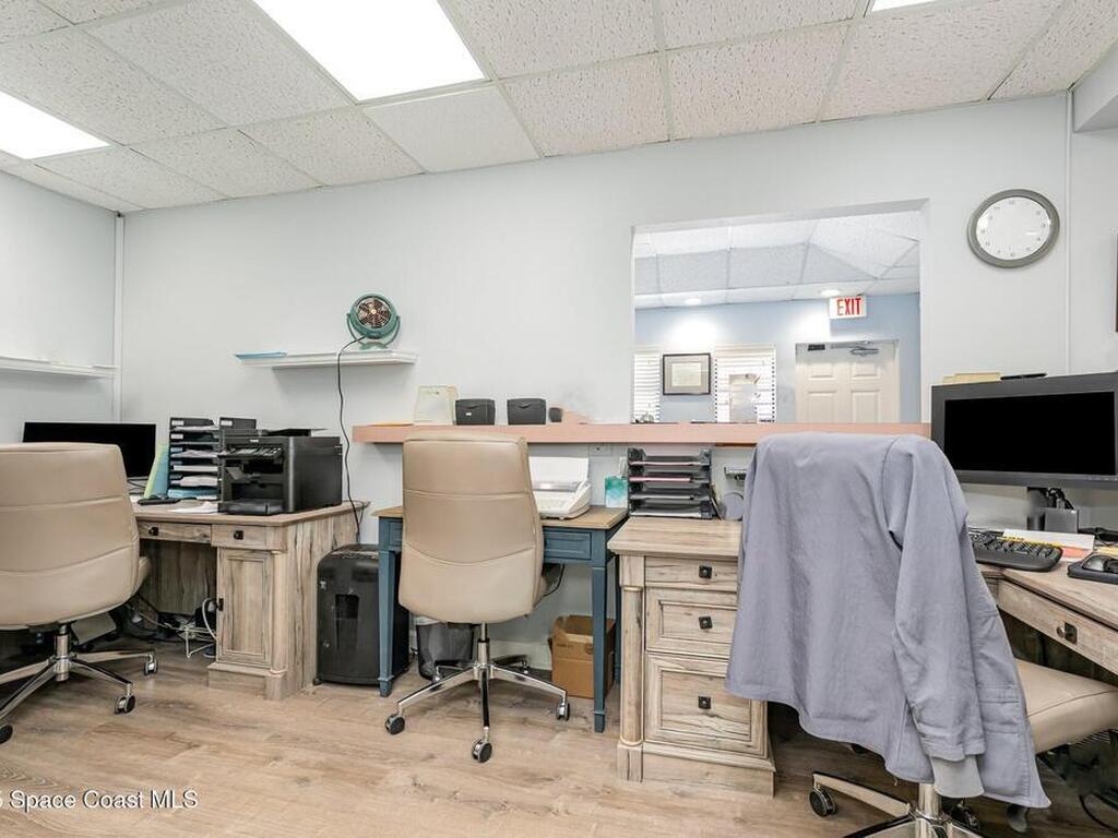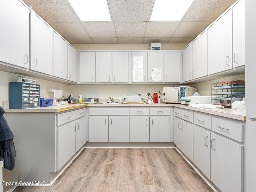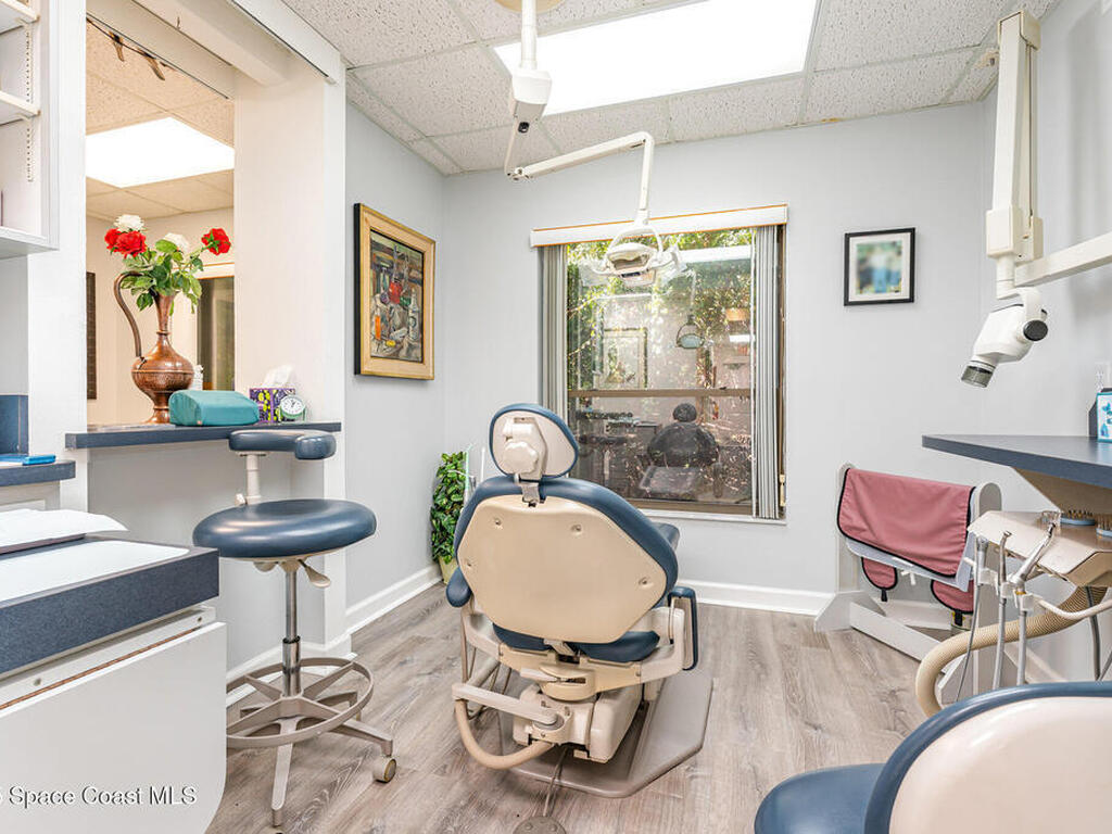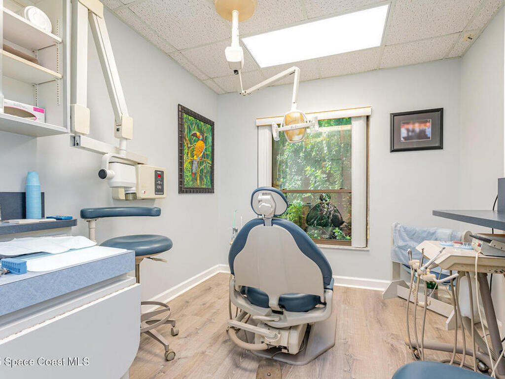 Endless possibilities in excellent location! Solid built Concrete Construction, Hurricane Shutters, New Roof 2020. Ideally zoned Community Commercial allowing for wide range of activities to support the surrounding community. Pristine condition, renovated with soft modern paint colors, laminate floors and carpet throughout. New HWH 2024, New Trane AC 2021. Currently used as endodontist office with a welcoming waiting room and spacious receptionist area. Ample storage, staff lounge, lab room, prep room, file room, and 2 bathrooms. Four active patient rooms with up to 7 available. Private office & separate staff entrance. 1 block from new Palm Bay Fire Station #7. Surrounded by diverse mix of residential neighborhoods, medical, child care, small business and major companies like L3 Harris Technologies. 3 miles to Florida Tech. Business not for sale. May sell some equipment/furnishings (consolidating locations). Easy set up for medical or dental clinic, spa, or professional office space.