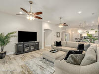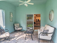 Experience the perfect blend of modern design and relaxed coastal charm in this custom-built 4-bedroom, 2-bath home, completed in 2017. Located just half a mile from the sandy shores, this 1, 941-square-foot retreat welcomes you with bright, open spaces and 10-foot ceilings that create an airy, inviting feel throughout. The stone-accented exterior and beautifully landscaped yard set the tone with exceptional curb appeal. Built for peace of mind, the home includes impact glass at the front, hurricane shutters, a whole-house generator, and a water softener system. Inside, the stylish kitchen--featuring stainless steel appliances--flows effortlessly into the dining and living areas, ideal for entertaining or quiet evenings at home. The spacious primary suite offers a walk-in shower and a serene retreat, while the fourth bedroom provides flexible space for a home office, guest room, or creative studio. Step outside to your private backyard oasis, complete with a covered porch and
