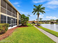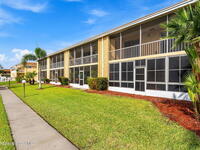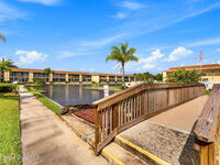 Beautifully Maintained 55+ Community! Highly sought-after first-floor unit with private parking right outside your door. This move-in-ready condo features wood flooring in the main living area and an open living/dining layout overlooking a peaceful pond. The spacious kitchen offers wood cabinetry, ample counter space, newer appliances, and a convenient breakfast bar. The primary suite includes sliders to the screened porch with tranquil pond views and a walk-in closet. Enjoy plenty of storage with large closets inside and double closets on the porch. Community amenities include a pool, clubhouse, tennis, shuffleboard, walking paths, and RV/boat storage. HOA covers grounds, water, trash, pest control, cable, internet, and recently replaced roof. Centrally located near shopping, dining, Target, grocery stores, pharmacies, and SR-528 for easy beach and Orlando access.