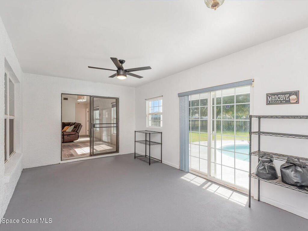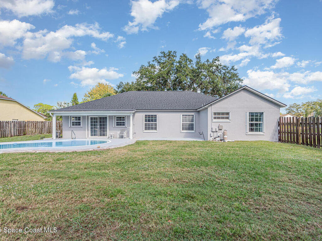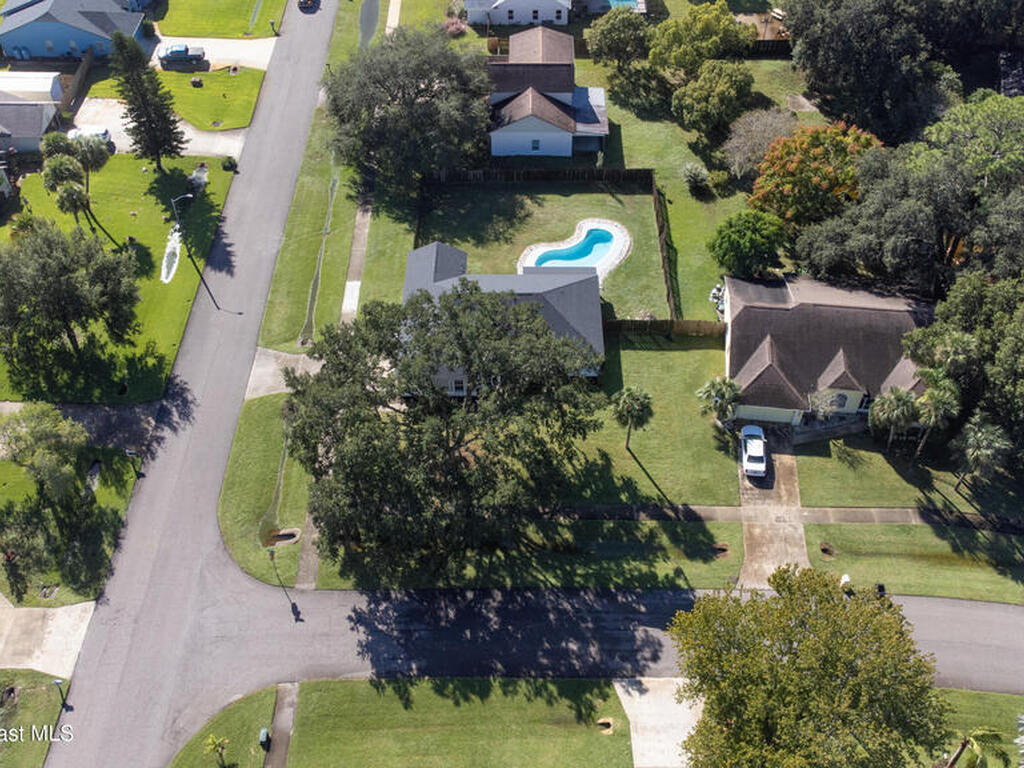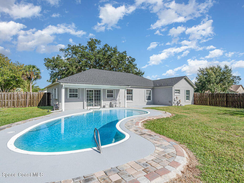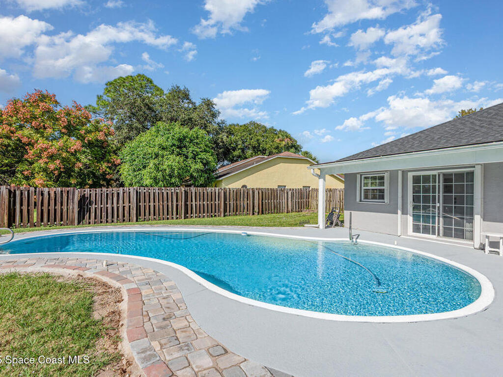 Located in the sought after Cathedral Pines subdivision on a large 0.37 acre corner lot sits this 3/2/2 block pool home with just shy of 2, 000 SQFT of living space PLUS a large enclosed porch. An open split floorplan with a formal living room, and a centered eat in kitchen overlooking the family room. The primary features a large tiled shower, dual vanity, WIC, and exterior pool access. Watch the rocket launches from your very own private pool with paver surround, south facing for maximum sunlight. Fully fenced backyard with an overall high and dry property. Large expense items have been recently taken care of for peace of mind. 2024 roof, 2019 AC, 2023 W/H, Pella windows with accordion hurricane shutters, recent LVP flooring. Low HOA, only $100yr. SUPER CONVENIENT LOCATION with a plethora of major retailers and dining locations in very close proximity, yet maintaining a very private feel to the neighborhood. Only 30 min to SpaceX, Playalinda beach and Orlando.
