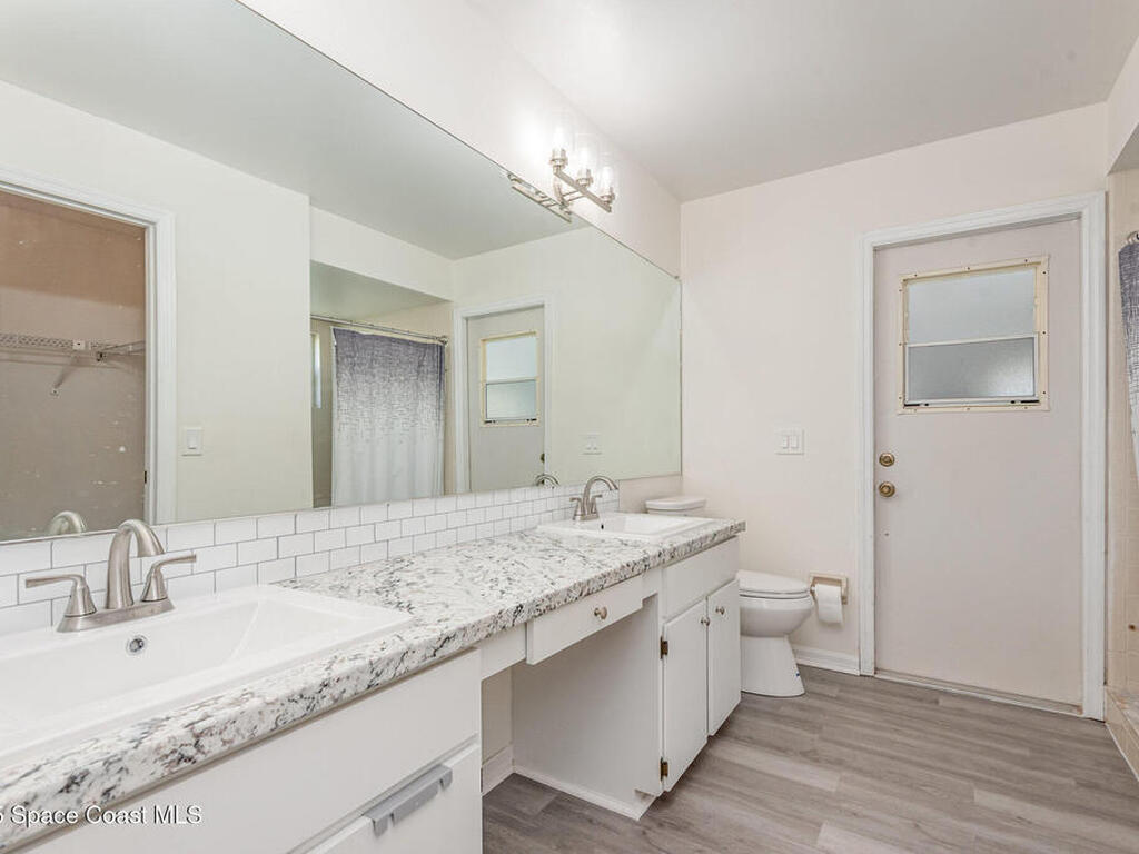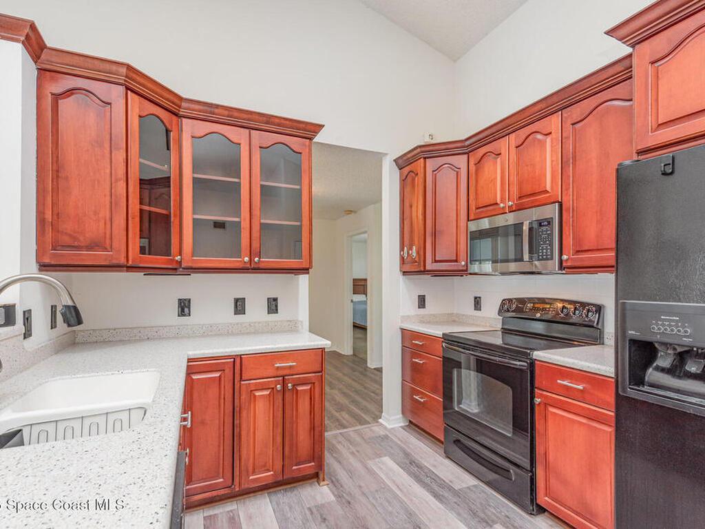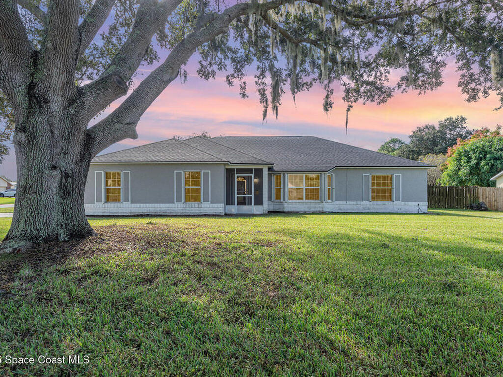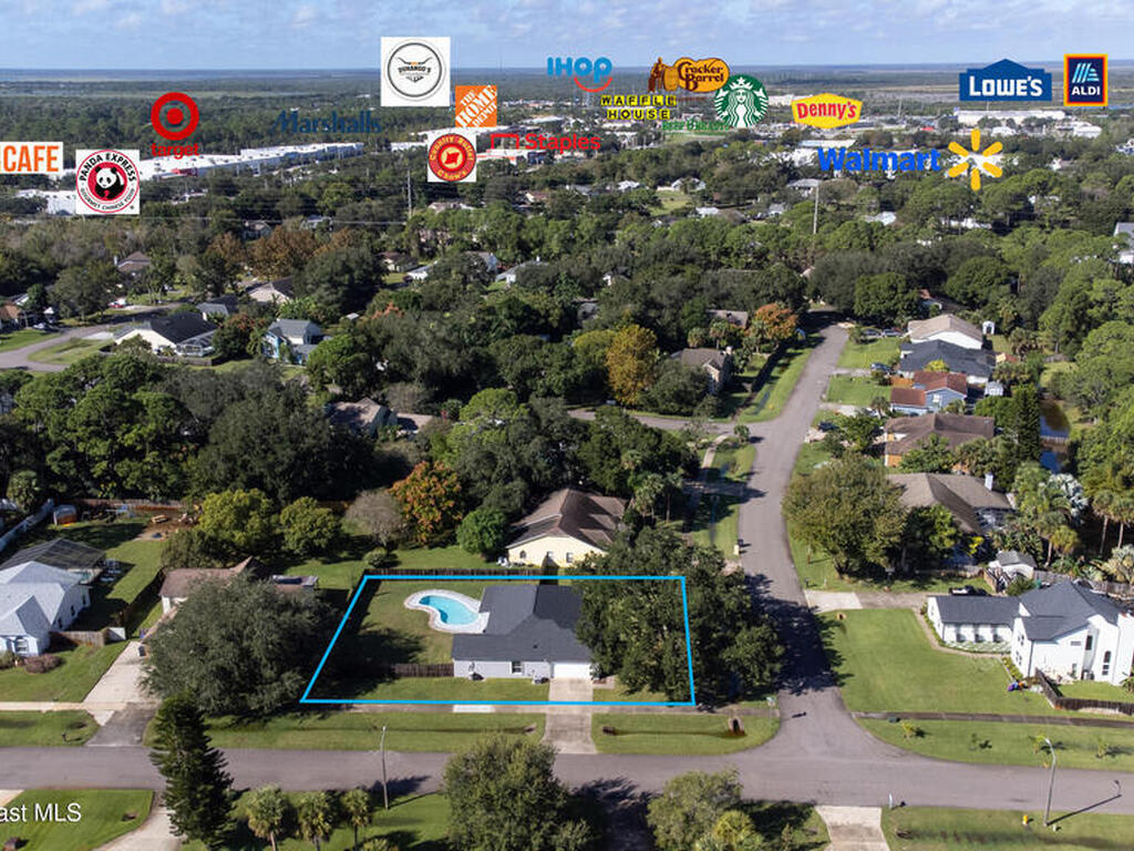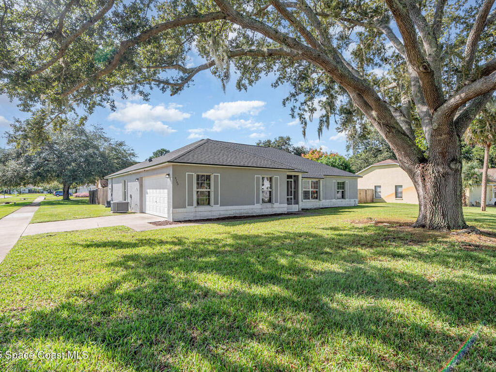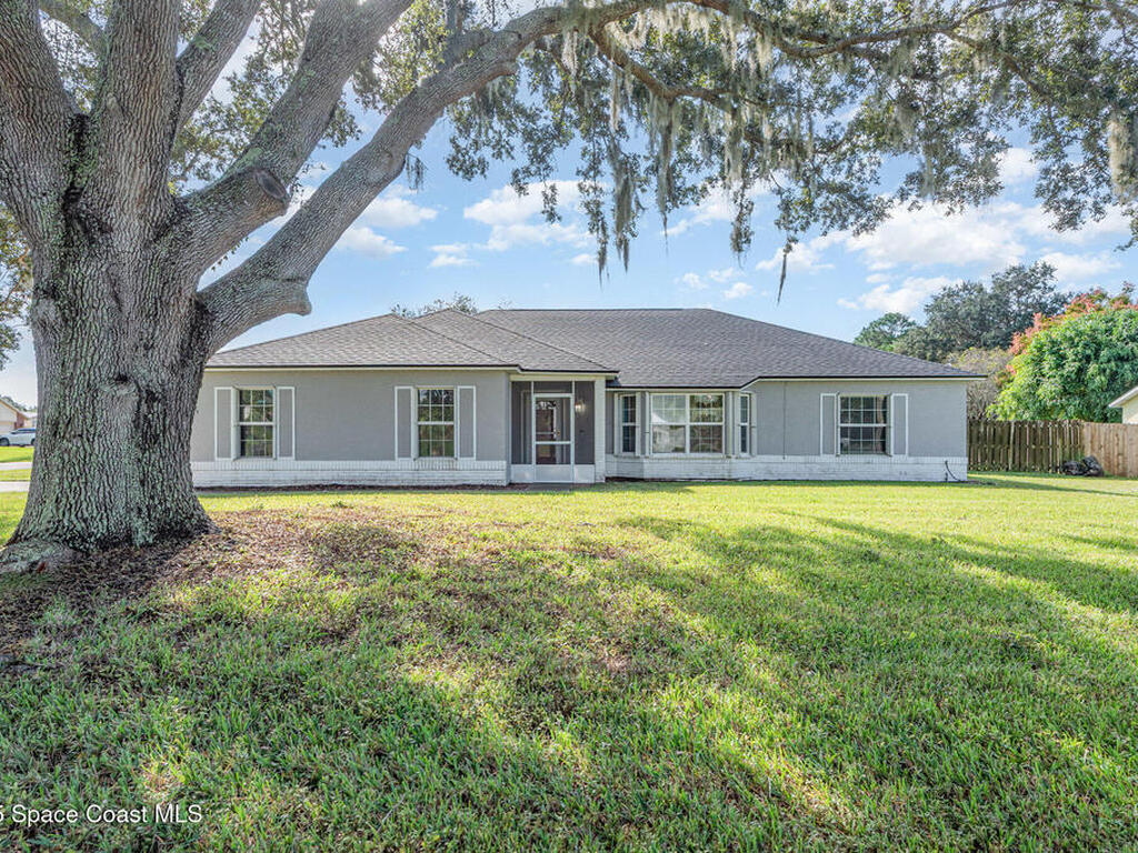 Located in the sought after Cathedral Pines subdivision on a large 0.37 acre corner lot sits this 3/2/2 block pool home with just shy of 2, 000 SQFT of living space PLUS a large enclosed porch. An open split floorplan with a formal living room, and a centered eat in kitchen overlooking the family room. The primary features a large tiled shower, dual vanity, WIC, and exterior pool access. Watch the rocket launches from your very own private pool with paver surround, south facing for maximum sunlight. Fully fenced backyard with an overall high and dry property. Large expense items have been recently taken care of for peace of mind. 2024 roof, 2019 AC, 2023 W/H, Pella windows with accordion hurricane shutters, recent LVP flooring. Low HOA, only $100yr. SUPER CONVENIENT LOCATION with a plethora of major retailers and dining locations in very close proximity, yet maintaining a very private feel to the neighborhood. Only 30 min to SpaceX, Playalinda beach and Orlando.