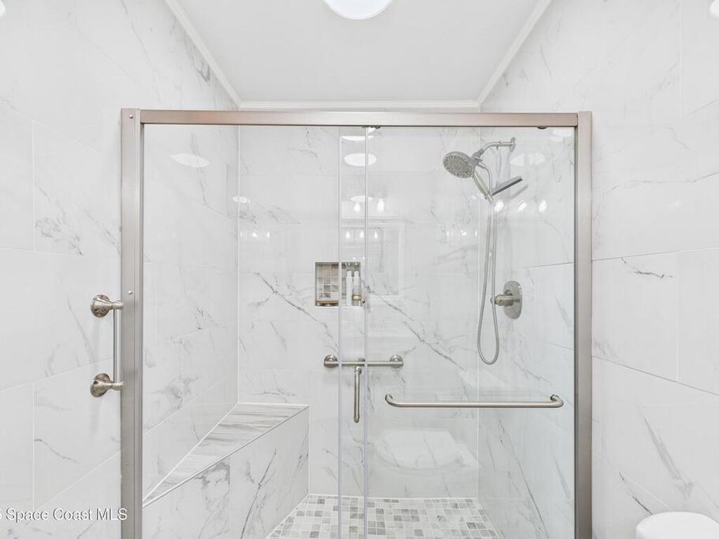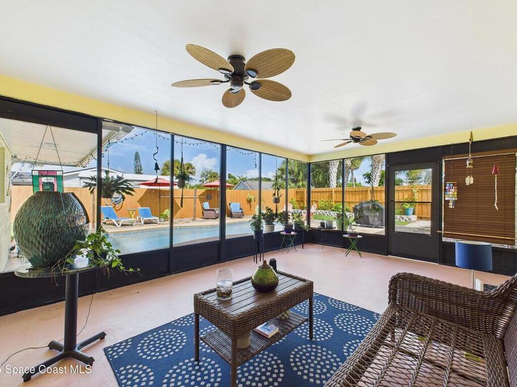 Welcome to this Indialantic coastal beauty just one block from beach access! This tropical oasis offers 4 bedrooms, 3 baths, and a versatile layout perfect for multi-generational living or income-producing potential with a private guest suite featuring a full updated kitchen and bath. Enjoy the heated saltwater pool (4 years new), full privacy fencing, and space for boat or RV parking with an additional driveway and double-wide gate. Recent updates include a 2019 roof, newer windows with aluminum shutters, hurricane-rated garage door, new A/C (2023), mini split in guest suite (2024), new marble 3rd bath (2023), fresh interior and exterior paint, and refinished terrazzo bedroom floors. Outdoor highlights include beautiful pavers, evergreen turf, an outdoor shower with privacy enclosure, and a large screened patio ideal for entertaining. No HOA--walk to the beach, enjoy total privacy, and live the coastal lifestyle you've been dreaming of! Indialantic Elementary & Hoover Middle 2 Blocks